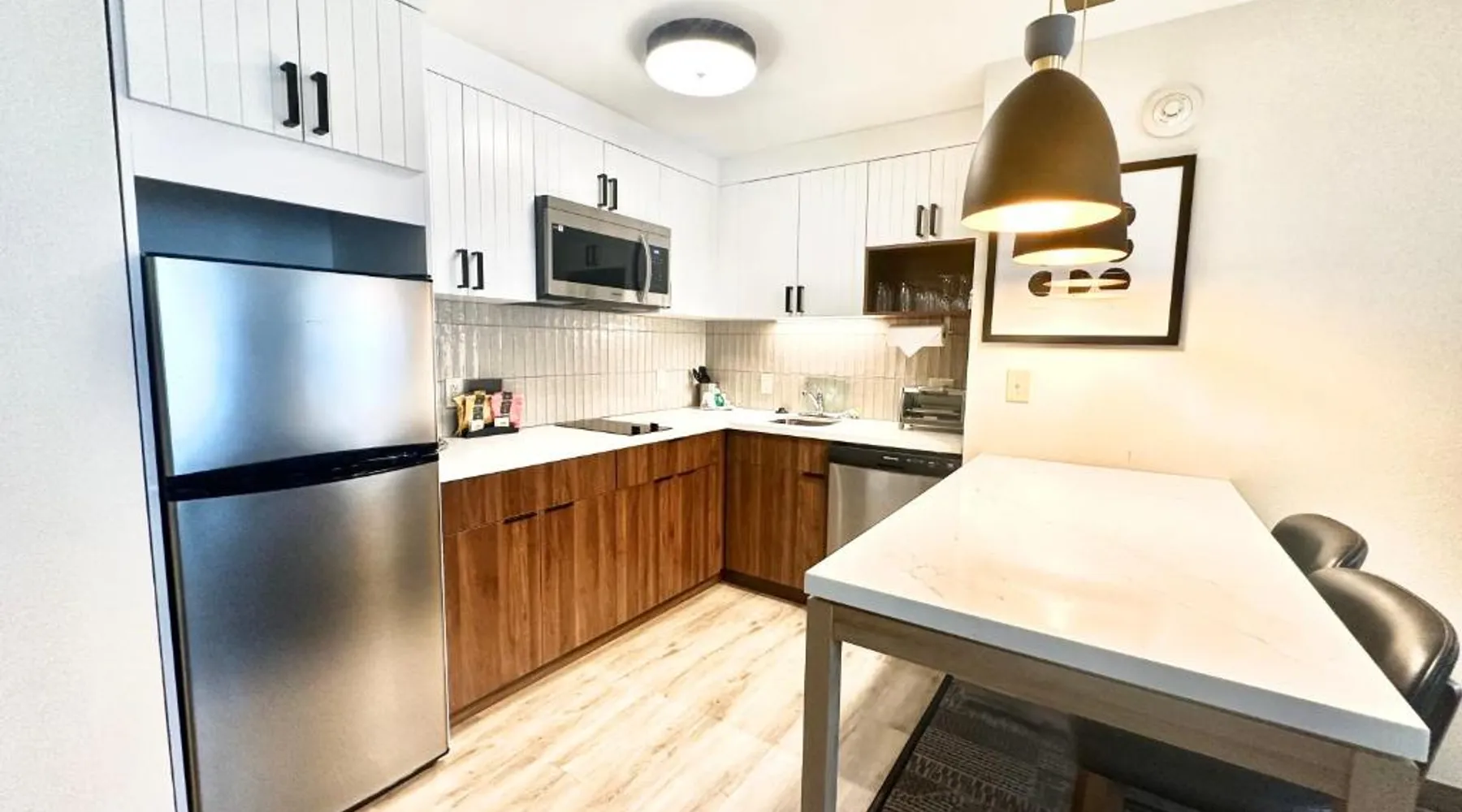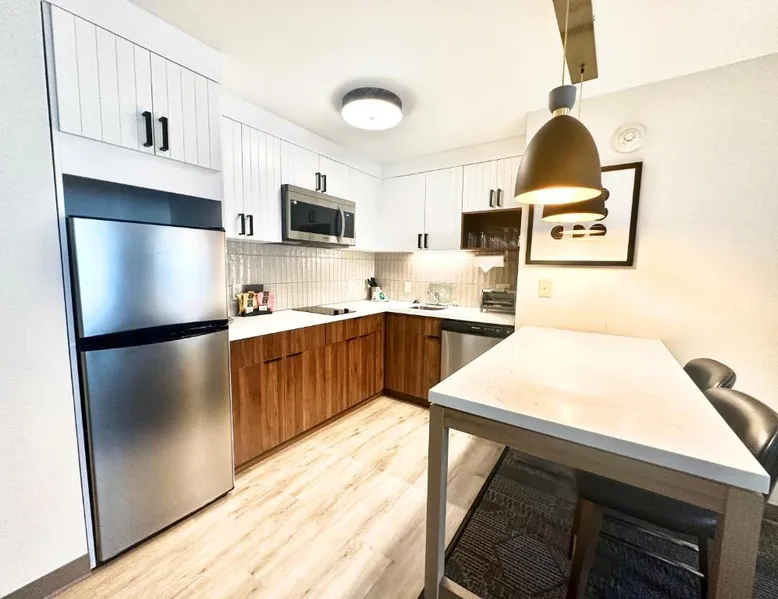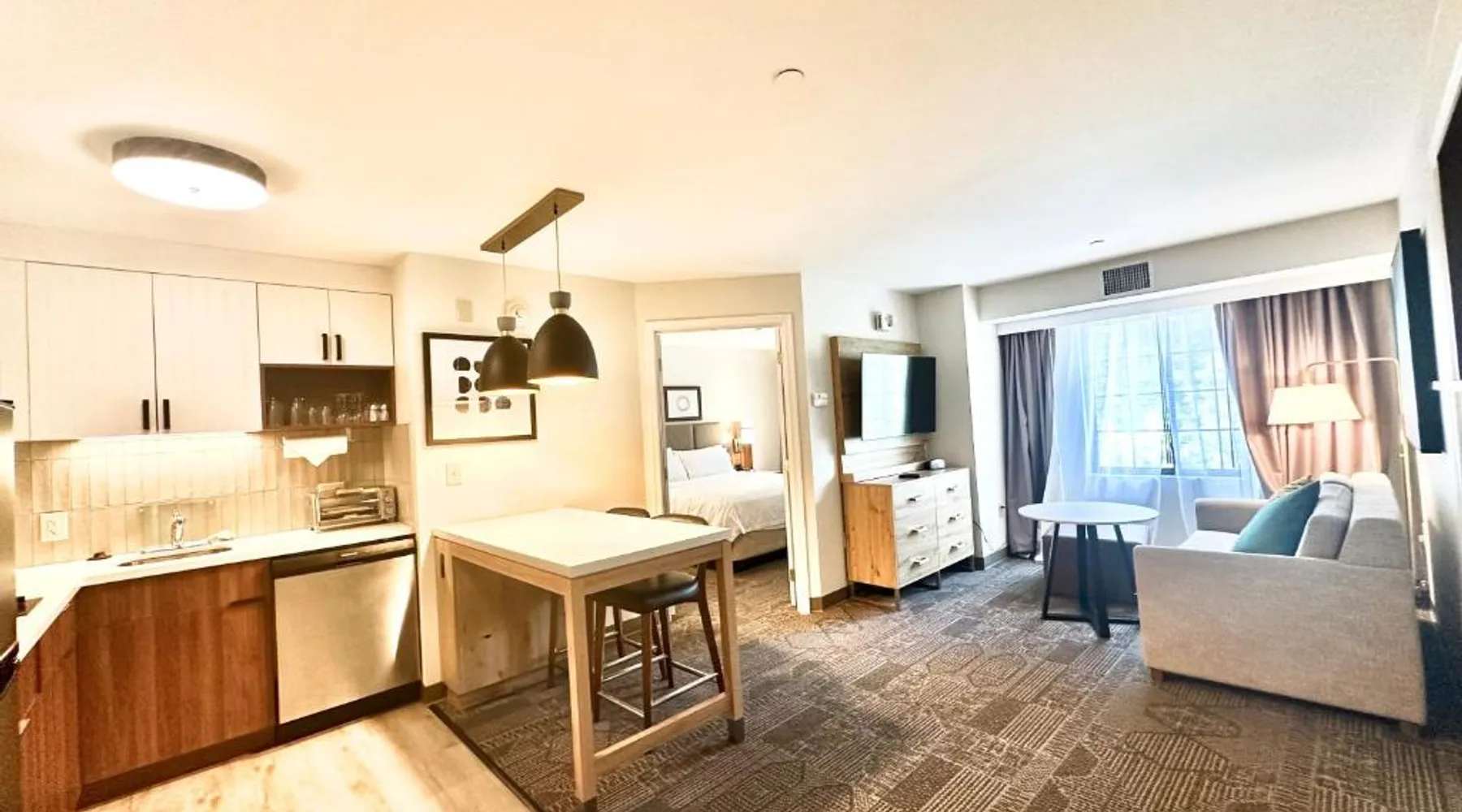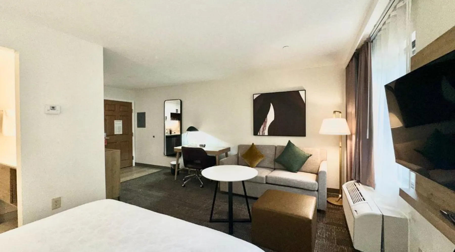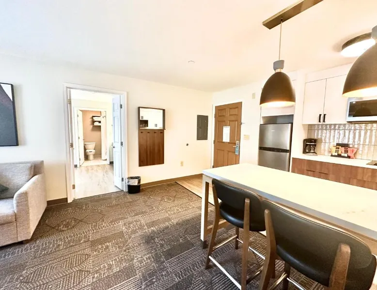 Located off Interstate 80, this East Stroudsburg hotel is just 15 minutes’ drive from Shawnee Mountain skiing. The hotel features an indoor pool and rooms with a kitchenette. Staybridge Suites East Stroudsburg offers suites and studios with a stove, microwave, and refrigerator. They feature satellite TV and a work desk. Select rooms have a sofa bed. Guests can work out in the on-site fitness center at the East Stroudsburg Staybridge. Barbecue facilities and laundry facilities are also available. The business center provides copy and fax services. A daily continental breakfast is served in the lobby. Evening reception is available Monday-Wednesday.. East Stroudsburg University of Pennsylvania is 10 minutes’ drive from the hotel. Camelback Mountain is 10 miles away. This suite features a separate seating area with sofa bed, a kitchenette, and a flat-screen TV.
