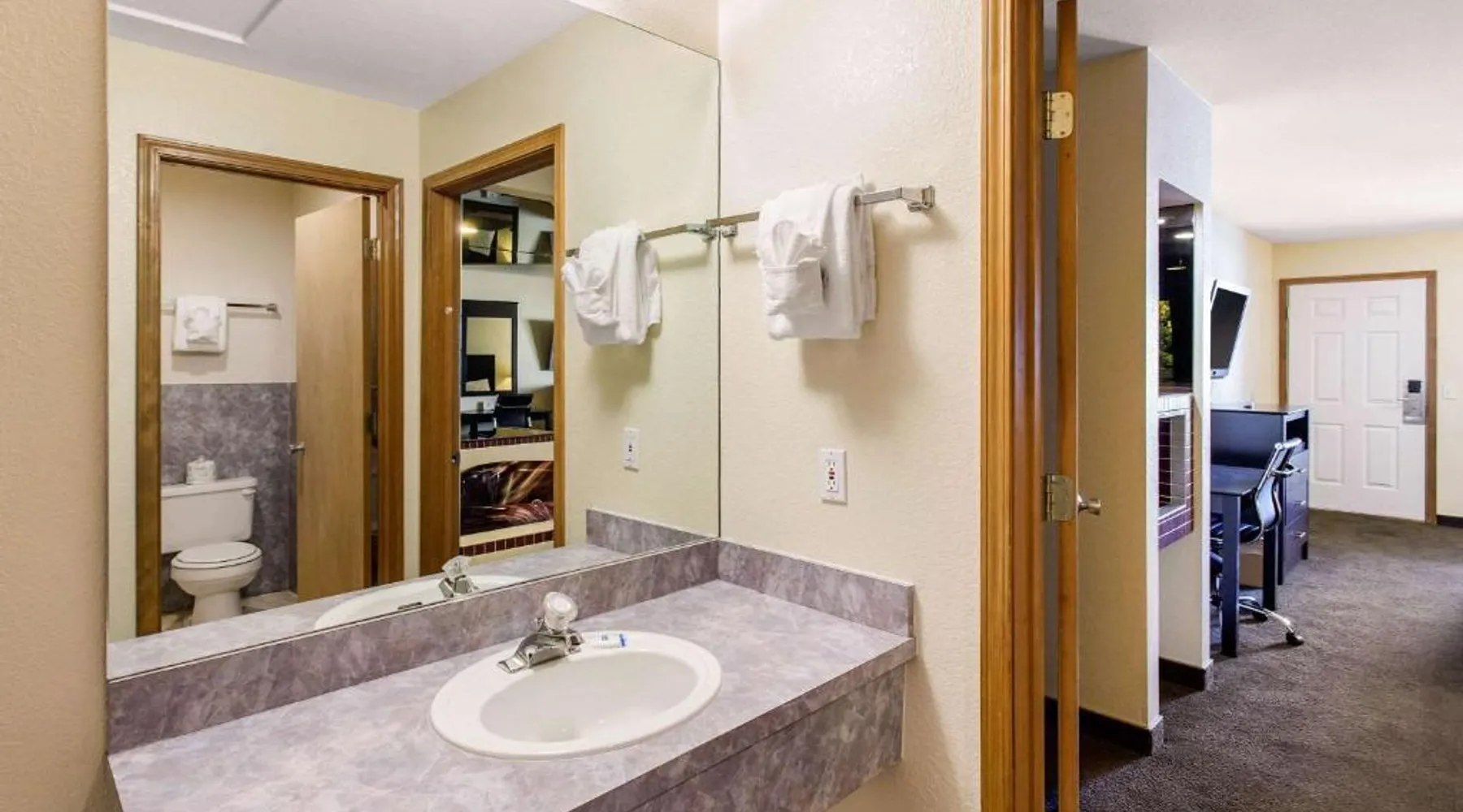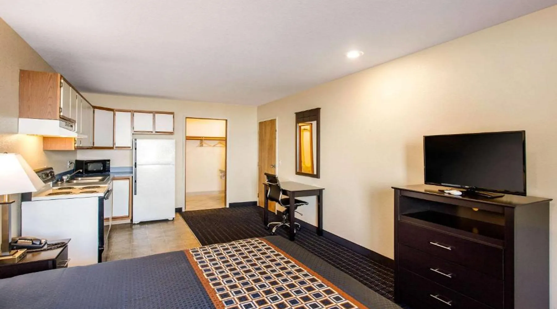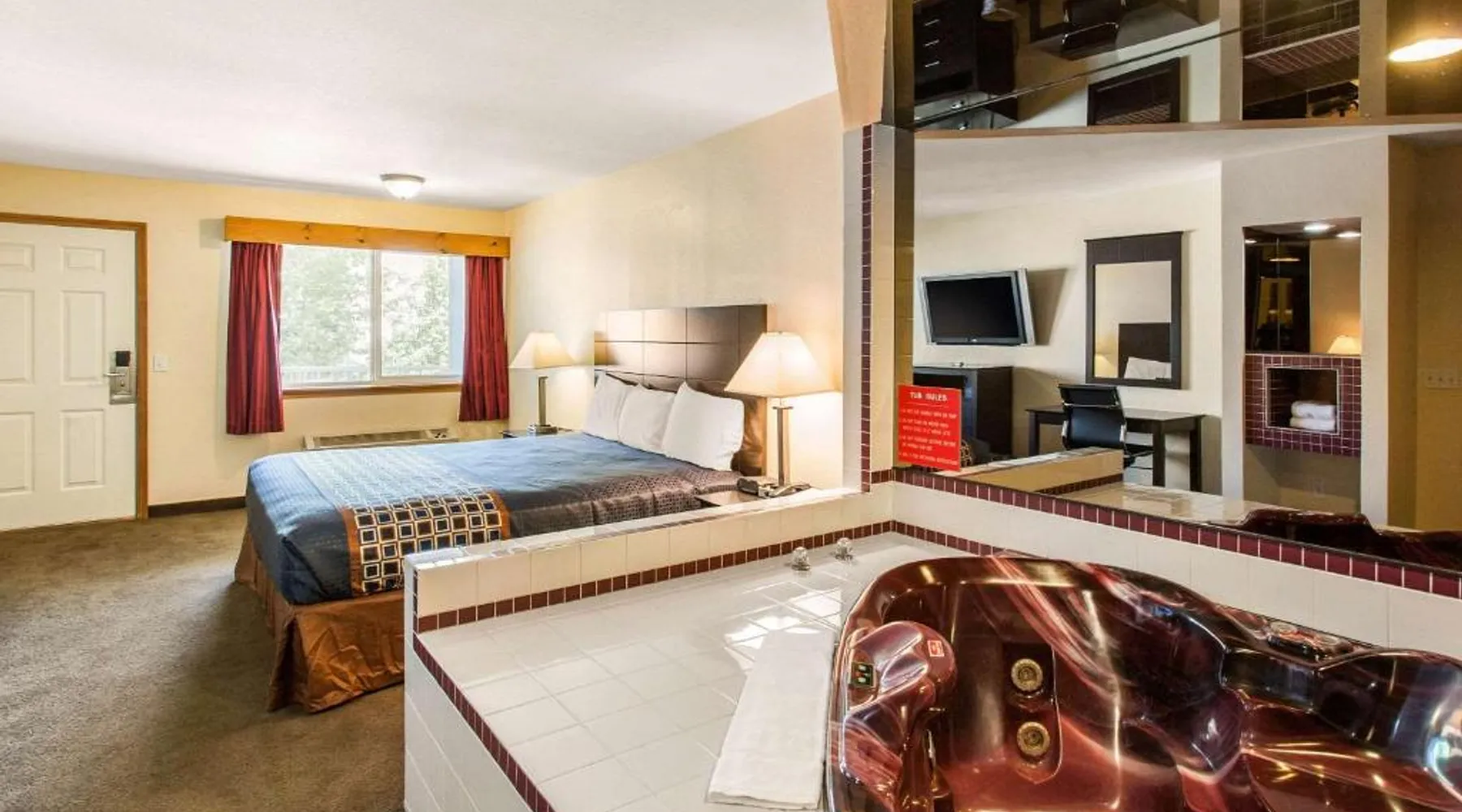 This Coeur d'Alene, Idaho motel features a heated outdoor pool. Located a 17-minute drive from Silverwood Theme Park, it offers a flat-screen satellite TV with HBO in every room. Free Wi-Fi is provided in the spacious, traditionally decorated rooms at Rodeway Inn Coeur d'Alene. There is also a desk. Coffee makers, microwaves, refrigerators, and hairdryers are available upon request. Wild Waters Waterslide Park is a 5-minute drive from Rodeway Inn Coeur d'Alene. Hayden Lake is 3 miles away and Silver Lake Mall is within walking distance. This family room features heating and a TV. The unit has 2 beds.
