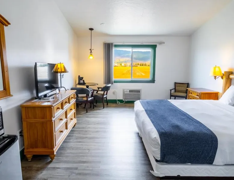 Comfortable Accommodations: Teton Valley Motel in Victor offers air-conditioned rooms with private bathrooms, mountain views, and free WiFi. Each room includes a tea and coffee maker, refrigerator, and work desk. Convenient Facilities: Guests enjoy free on-site parking, private and express check-in and check-out services, an outdoor seating area, picnic area, and bicycle parking. Additional amenities include a kitchenette, ground-floor unit, and walk-in shower. Local Attractions: Located 35 mi from Jackson Hole Airport, the motel is near the Center For The Arts (25 mi) and Shooting Star Jackson Hole Golf Club (25 mi). An ice-skating rink is also in the vicinity. Providing free toiletries, this double room includes a private bathroom with a bath, a shower and a hairdryer. The spacious air-conditioned double room provides a flat-screen TV with satellite channels, a private entrance, soundproof walls, a tea and coffee maker as well as mountain views. The unit offers 2 beds.