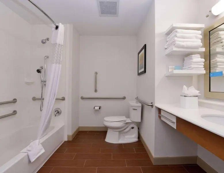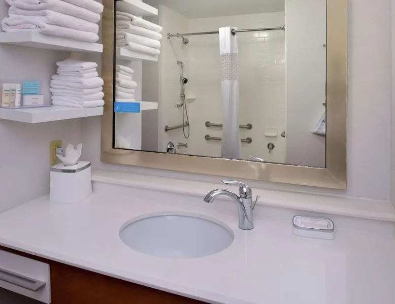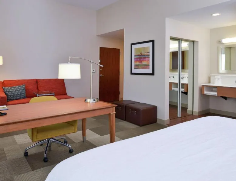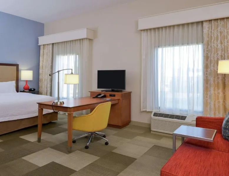 Comfortable Accommodations: Hampton Inn & Suites by Hilton Lonoke in Lonoke offers family rooms with free WiFi, a fitness room, and a elevator. Guests enjoy free on-site parking, a 24-hour front desk, and a range of amenities including a tea and coffee maker, hairdryer, refrigerator, microwave, shower, and TV. Outstanding Facilities: The hotel features an outdoor swimming pool and a relaxing seating area. Additional amenities include a sofa bed, seating area, and a TV, ensuring a pleasant stay for all guests. Delicious Breakfast: A complimentary American buffet breakfast is served daily, offering warm dishes, juice, fresh pastries, cheese, fruits, and more. Guests appreciate the variety and quality of the breakfast provided by the property. Convenient Location: Located 24 mi from Clinton National Airport, the hotel is close to attractions such as Simmons Bank Arena (23 mi), Historic Arkansas Museum (24 mi), and River Market District (24 mi). Highly rated for its attentive staff and excellent service support. A flat-screen TV, sofa bed and dining area are available in this room.