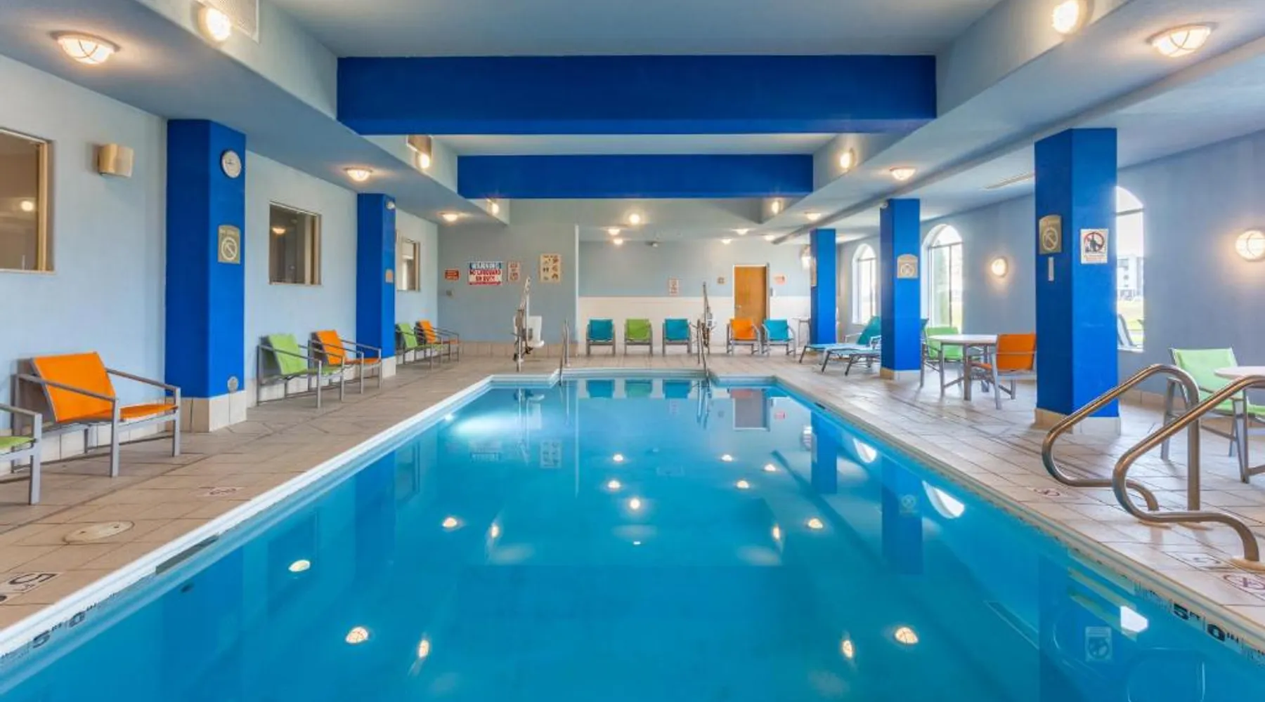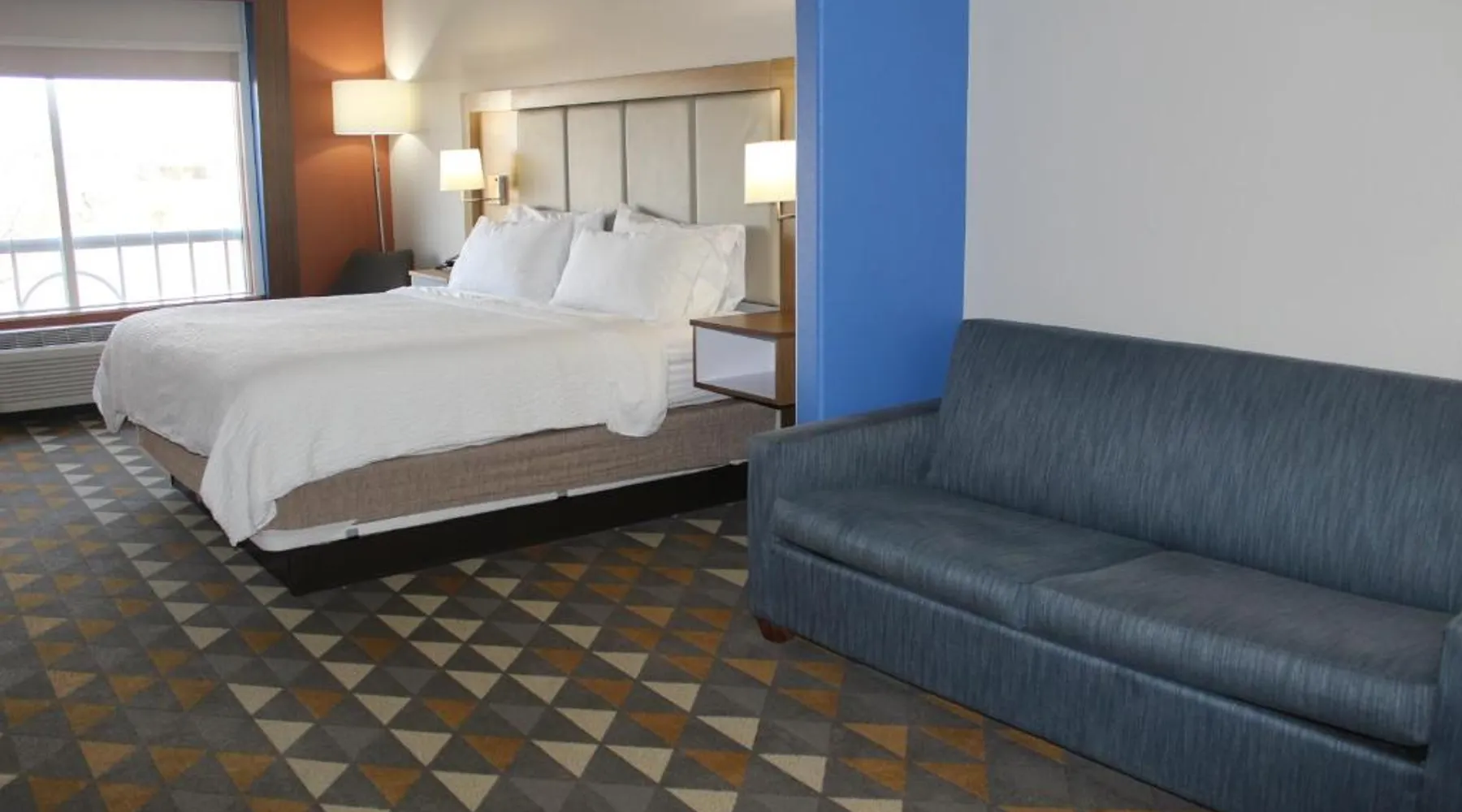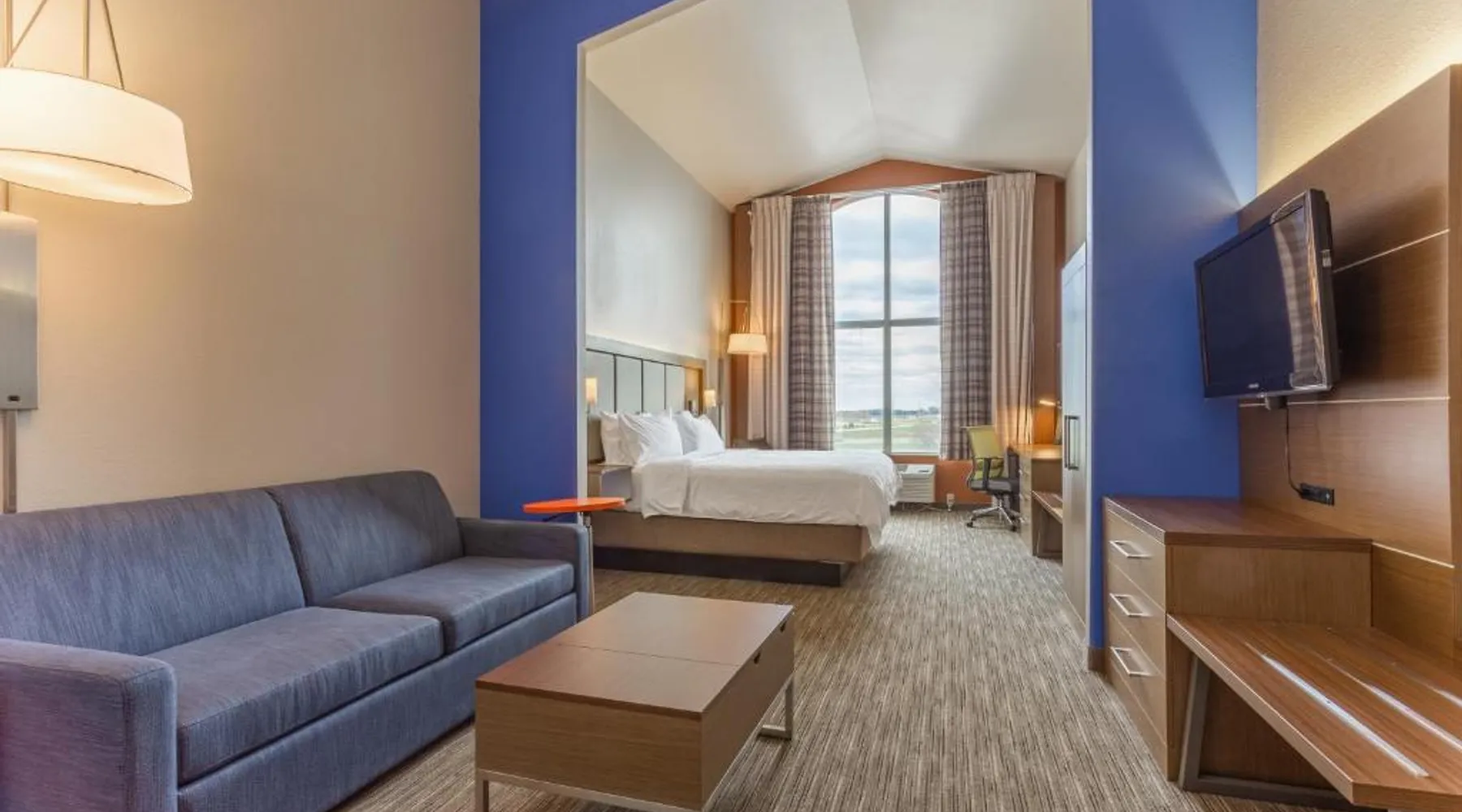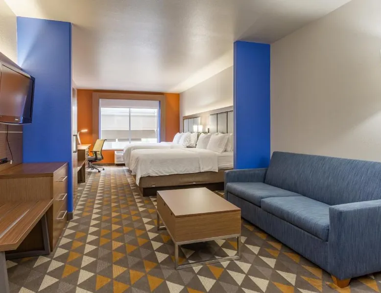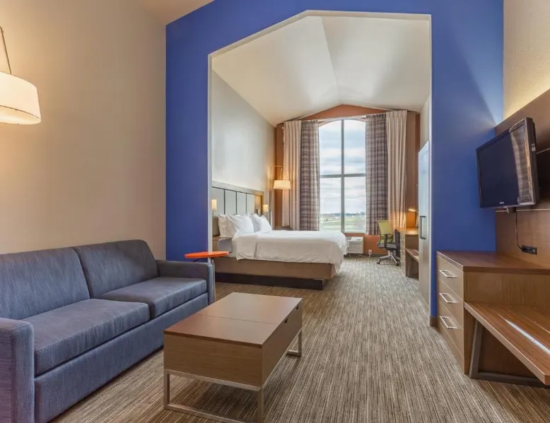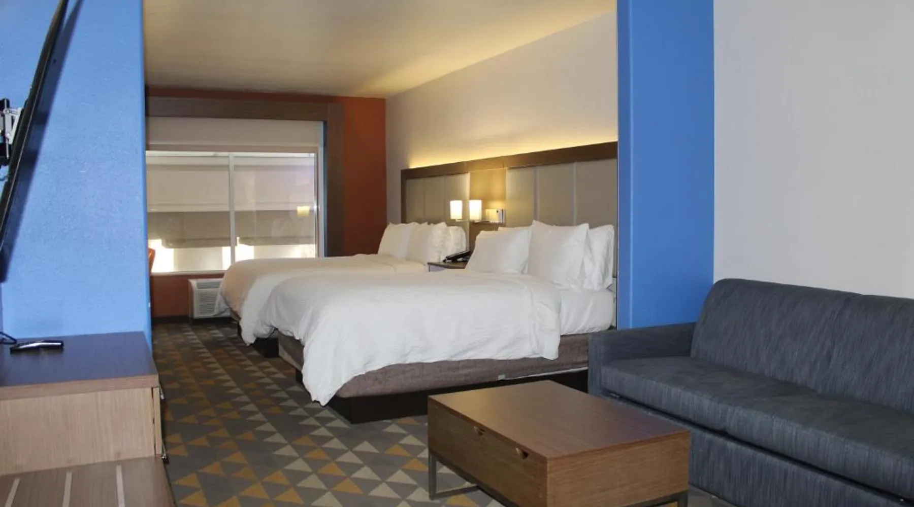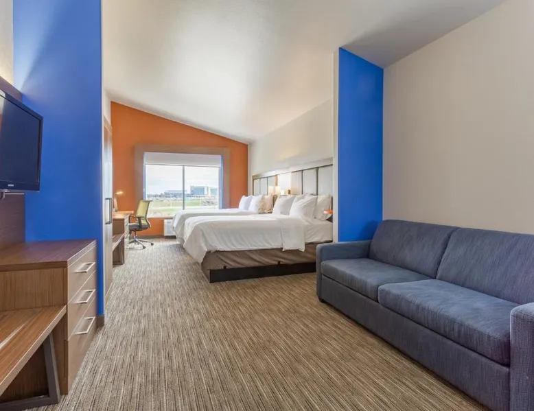 Comfortable Accommodations: Holiday Inn Express Rockford-Loves Park by IHG in Loves Park offers rooms with air-conditioning, private bathrooms, and free WiFi. Each room includes a work desk, seating area, and TV. Facilities and Services: Guests can enjoy a fitness center, indoor swimming pool, and free on-site parking. The hotel provides a elevator and a 24-hour front desk for added convenience. Dining Options: A complimentary American buffet breakfast is served daily, featuring fresh pastries and fruits. Nearby Attractions: Located 14 mi from Chicago Rockford International Airport, the hotel is close to Logan Museum of Anthropology (16 mi) and Magic Waters Waterpark (8.1 mi). This suite is air-conditioned and features a TV with cable channels, a tea and coffee maker, a seating area and a wardrobe. The unit offers 2 beds.