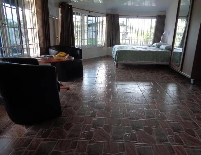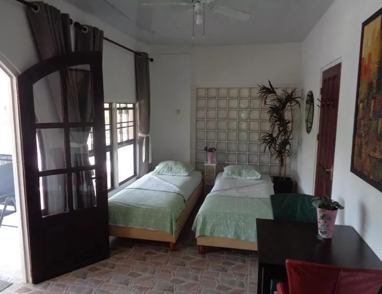Elegant Accommodations: Guest house La Ressource in Domburg offers a sun terrace, garden, outdoor swimming pool, and free WiFi. Private check-in and check-out services ensure a seamless arrival and departure. Comfortable Amenities: The apartment features air-conditioning, a kitchenette, and a private pool. Additional amenities include a lounge, outdoor fireplace, beauty services, and a 24-hour front desk. Prime Location: Located 9.3 mi from Zorg en Hoop Airport, the property is near Paramaribo Central Market and Surinaams Museum, each 9.9 mi away. Guests can enjoy film nights and hiking activities. This apartment features a private pool and a fireplace. Boasting a private entrance, this air-conditioned apartment features 1 living room, 2 separate bedrooms and 1 bathroom with a walk-in shower. Guests will find a stovetop, a refrigerator, kitchenware and an oven in the fully equipped kitchen. The apartment also comes with a barbecue. The apartment has a washing machine, a tea and coffee maker, a seating area as well as a terrace with garden views. The unit has 4 beds and 1 futon.