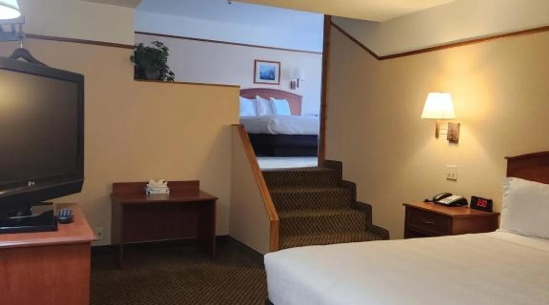 This Colorado hotel is located in Silverthorne, Summit County, a year-round holiday paradise and resort destination nestled in the Rockies. In addition, the Luxury Inn & Suites is just 70 mi from Denver. A free continental breakfast is served daily. Each air-conditioned room at Luxury Inn & Suites features a cable TV, a microwave and a small refrigerator. A private bathroom is also offered. Free WiFi is provided. Summit County is a home to world-class skiing at Breckenridge, Keystone, Arapahoe Basin, Loveland, and Copper Mountain. The Luxury Inn & Suites is placed within walking distance of Prime Factory Outlet Stores, bars and restaurants and is minutes from five outstanding golf courses, mountain biking trails, fishing and hiking areas, as well as sailing and horseback riding. Luxury Inn & Suites offers guests a unique lodging experience complete with many recreational activities and picturesque mountain views. The spacious suite features 1 bedroom and 1 bathroom with a bath and free toiletries. The suite provides air conditioning, a seating area, a carpeted floor, heating, as well as a flat-screen TV with cable channels. The unit offers 3 beds.