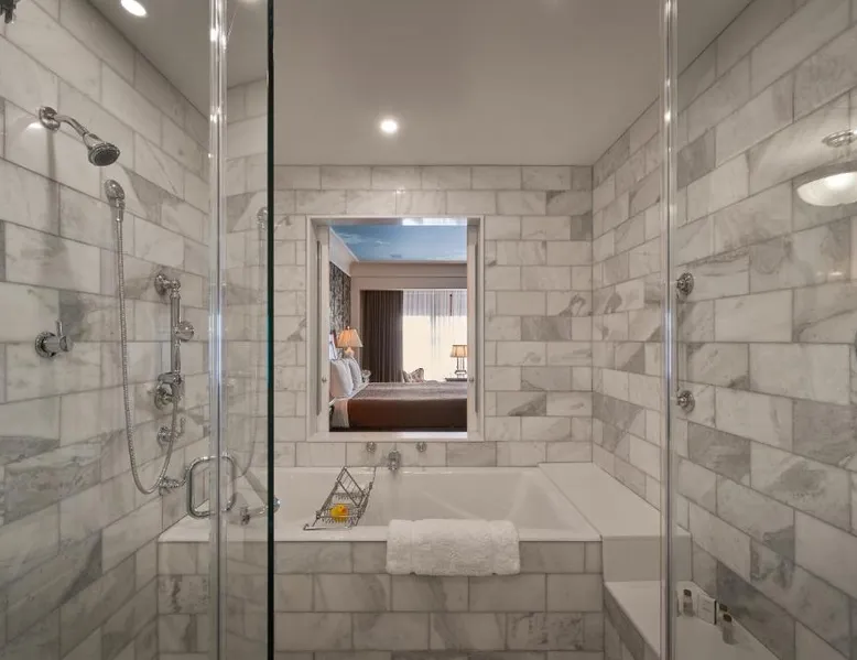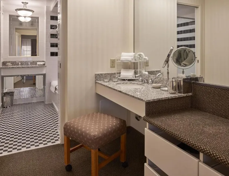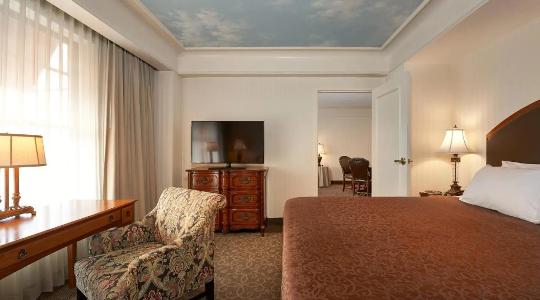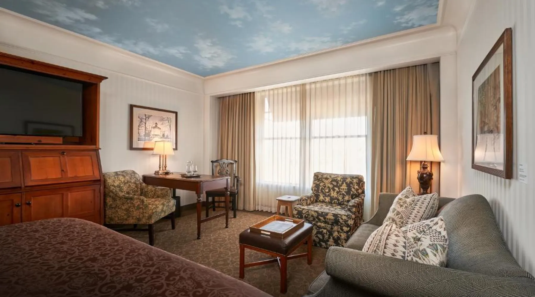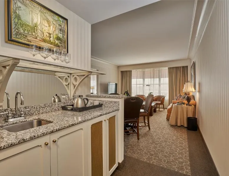 This Greensboro hotel offers free WiFi. A flat-screen cable TV, microwave, and small refrigerator are provided in every room at this North Carolina O.Henry Hotel. Extras include a sofa bed and CD player. A 24-hour fitness center on site for added convenience. O. Henry Hotel offers a dry cleaning service for a fee. Green Valley Grill serves Mediterranean cuisine in a Main Dining Room with 9-yard high ceilings, adjacent Copper Dining Room, and outdoor courtyard. Afternoon tea and lobby cocktails are offered as well. The hotel is 3.8 mi from Guilford Courthouse National Military Park and 2.9 mi from Greensboro Coliseum Complex. Carolina Theater is 2.9 mi away. This room offers 2.7-yard ceilings, cove moldings, and large window. Extras include a sofa bed flat-screen cable TV, and microwave as well as a small refrigerator. The bathroom has a glass-enclosed Terrazzo shower and separate soaking tub.
