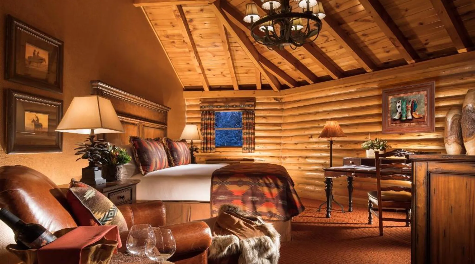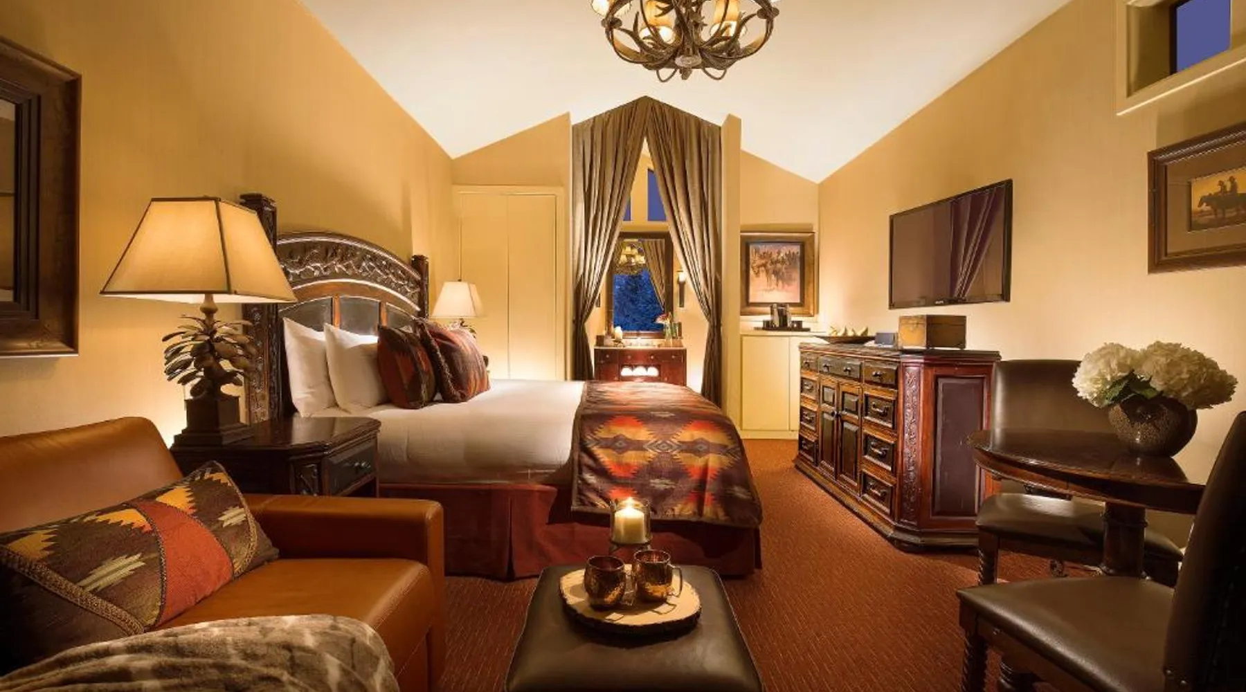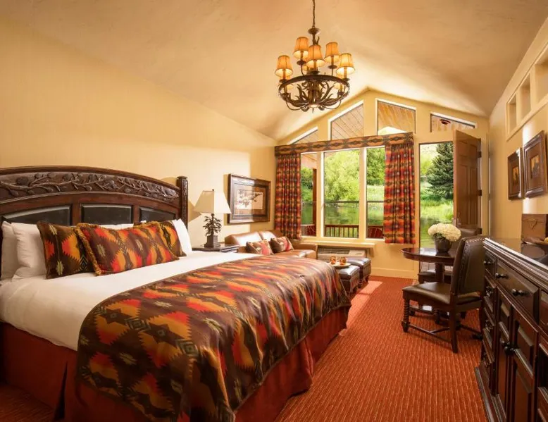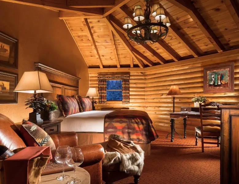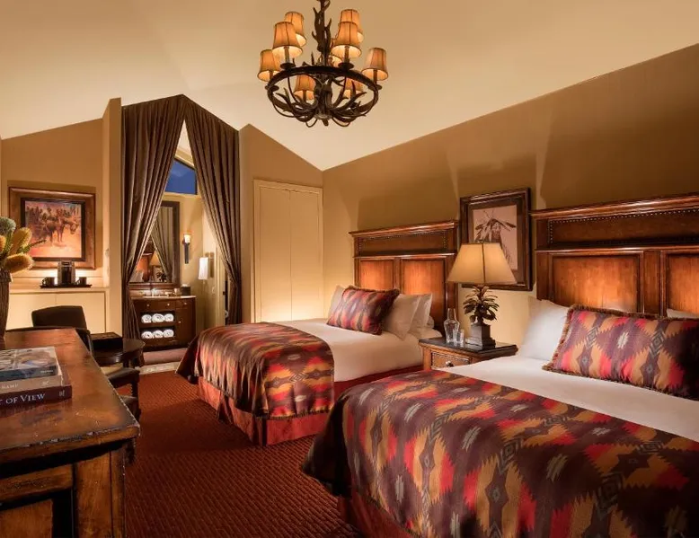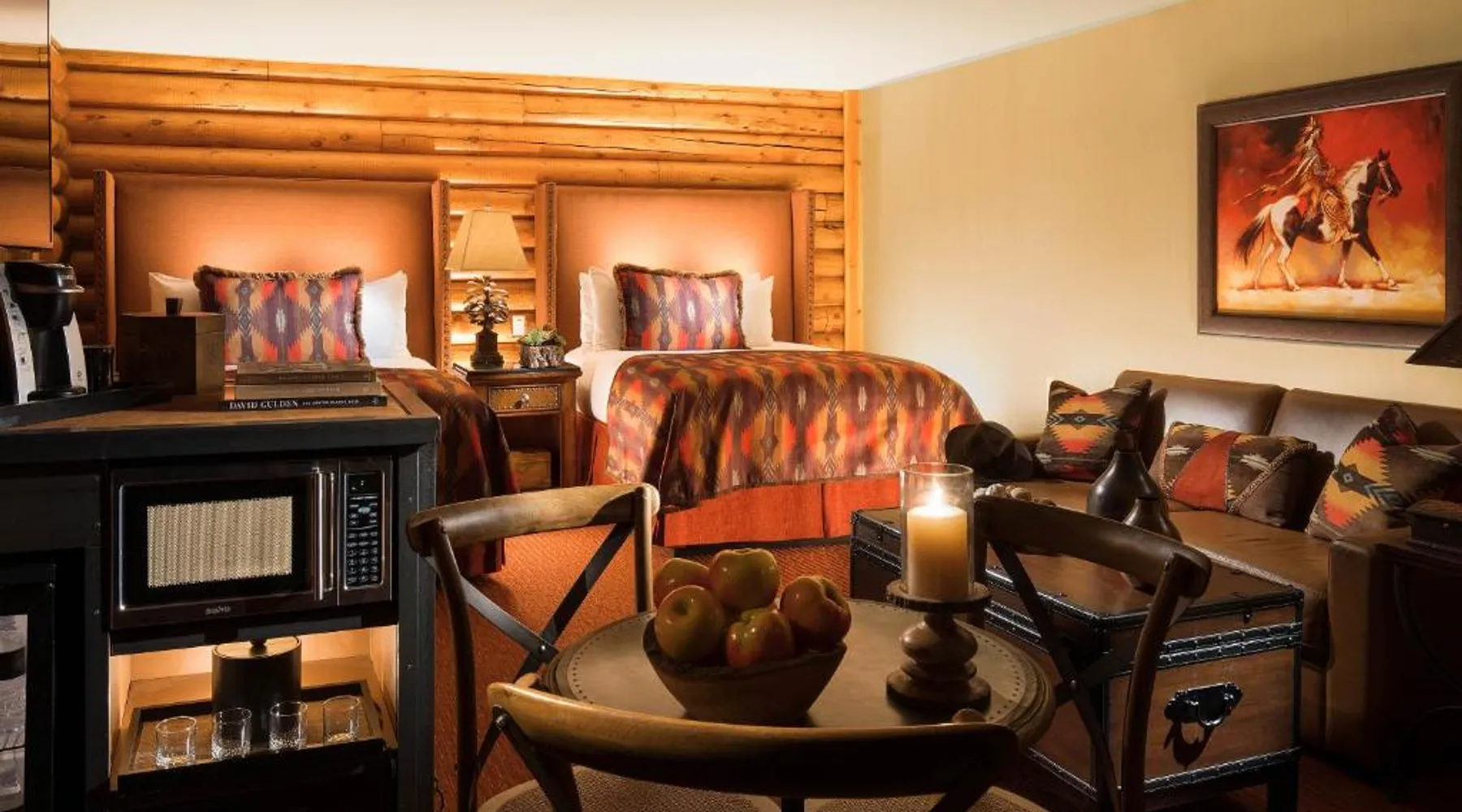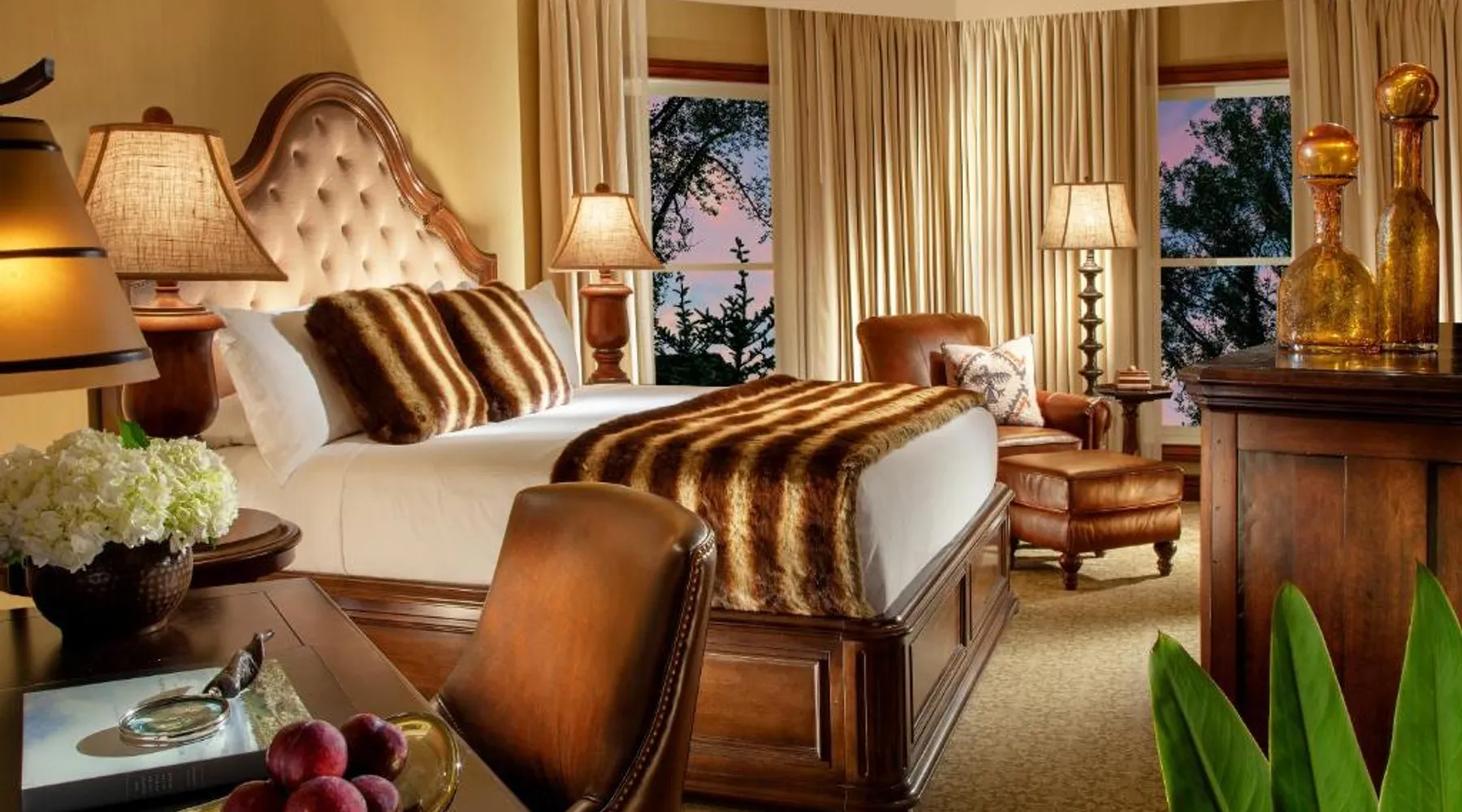 Live in the lap of luxury at the Rustic Inn Creekside Resort and Spa at Jackson Hole. This palatial resort features exclusive amenities, outdoor pool and Jacuzzi, daily breakfast buffet, fitness center, and a 2,300 square foot spa. Accommodations choices include spacious guest rooms, private cabins and luxury spa suites. The onsite restaurant offers locally-sourced, seasonal menus, and an extensive wine list. For adventure seekers, the resort is just a short drive from the south entrance of the nation's first National Park, and guests can also purchase ski passes, rentals for ski equipment, storage, and bikes on site. This room features flat-screen satellite TV, a small refrigerator and a coffee maker. A private bathroom with a rain shower is also included.