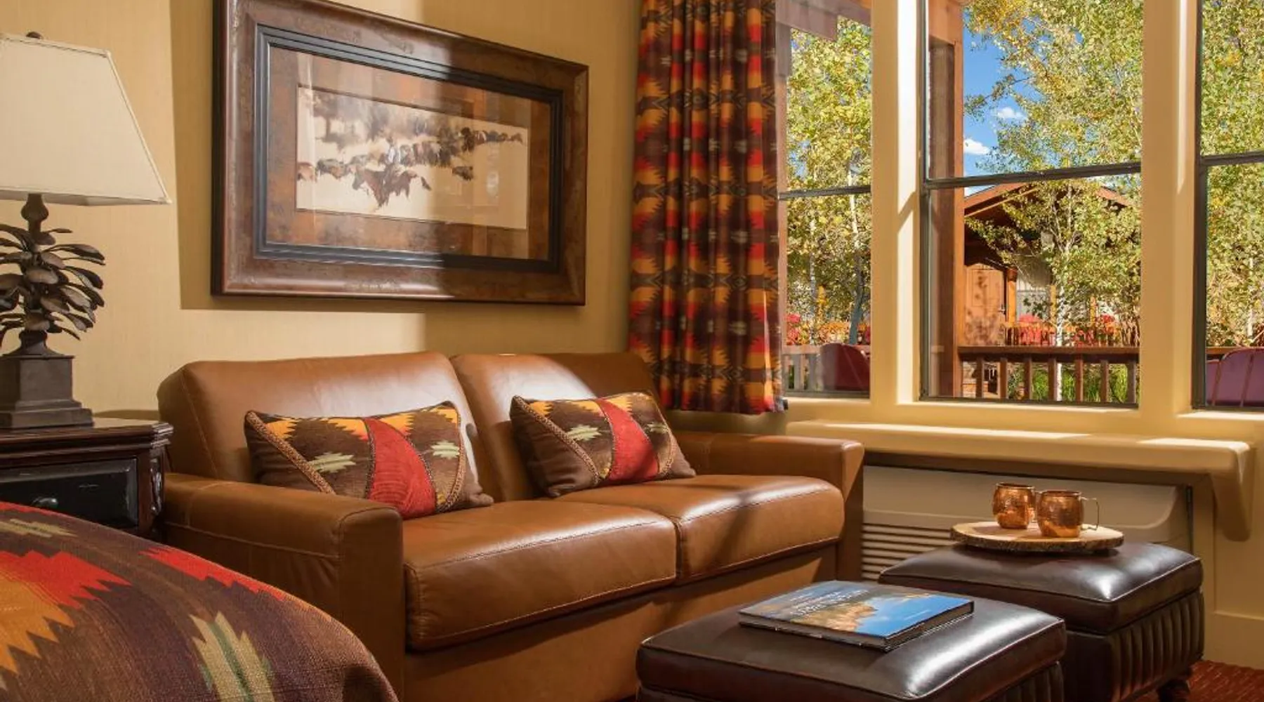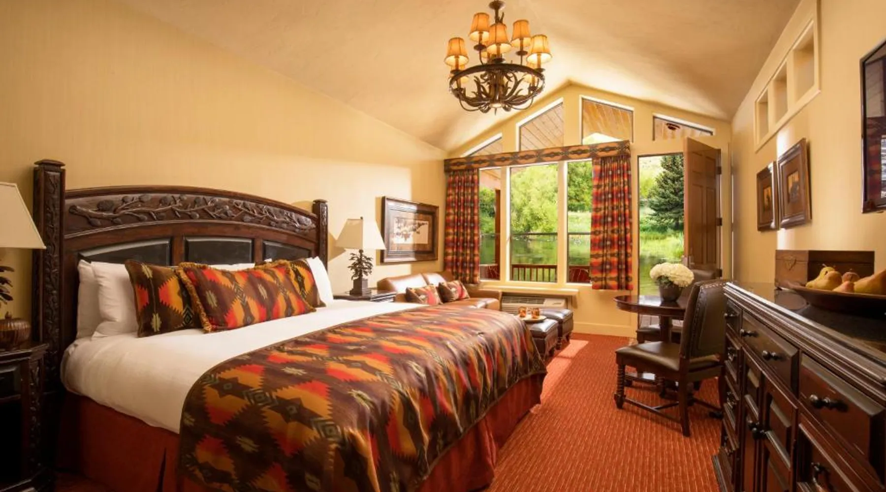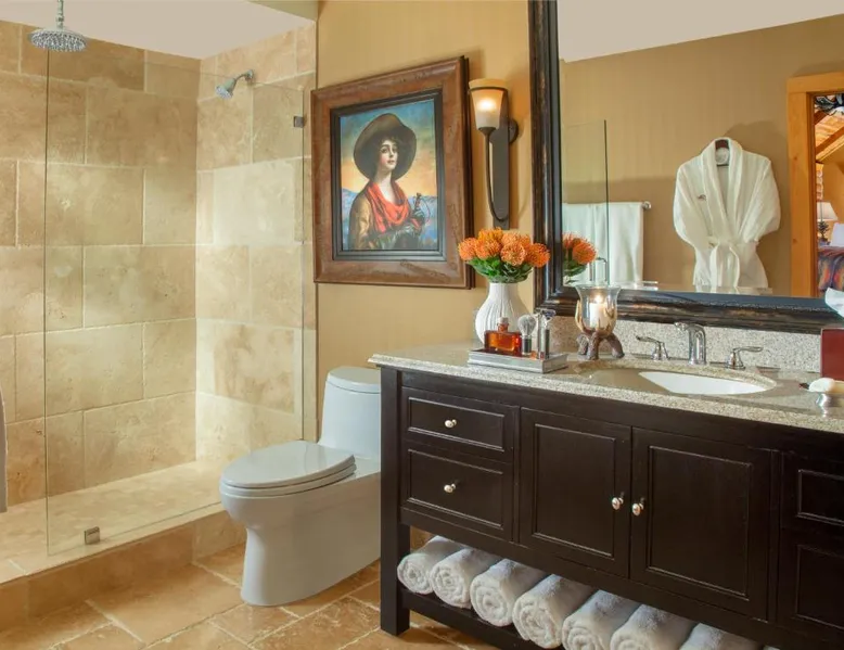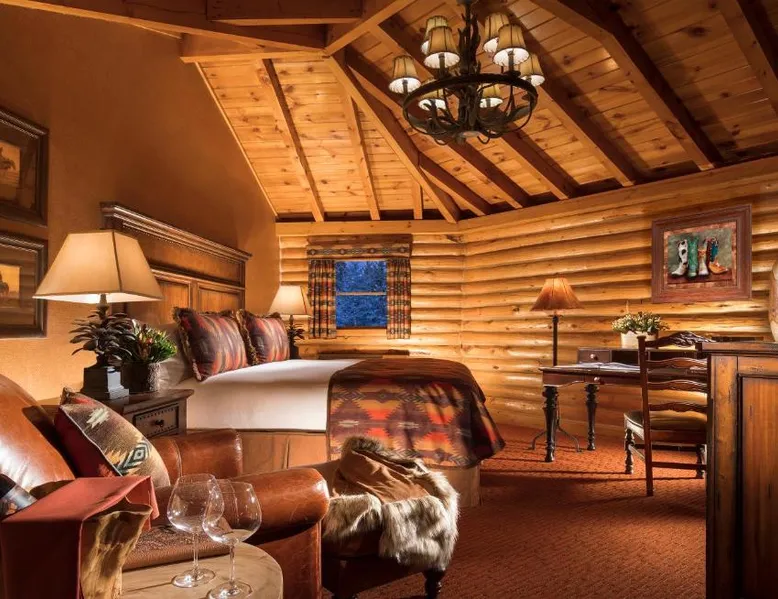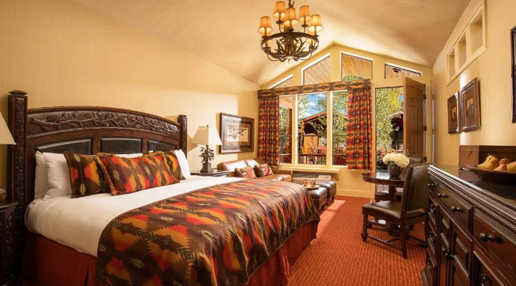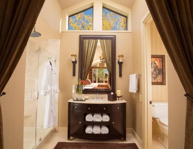 Live in the lap of luxury at the Rustic Inn Creekside Resort and Spa at Jackson Hole. This palatial resort features exclusive amenities, outdoor pool and Jacuzzi, daily breakfast buffet, fitness center, and a 2,300 square foot spa. Accommodations choices include spacious guest rooms, private cabins and luxury spa suites. The onsite restaurant offers locally-sourced, seasonal menus, and an extensive wine list. For adventure seekers, the resort is just a short drive from the south entrance of the nation's first National Park, and guests can also purchase ski passes, rentals for ski equipment, storage, and bikes on site. This room features flat-screen satellite TV, a small refrigerator and a coffee maker. A private bathroom with a rain shower is also included.