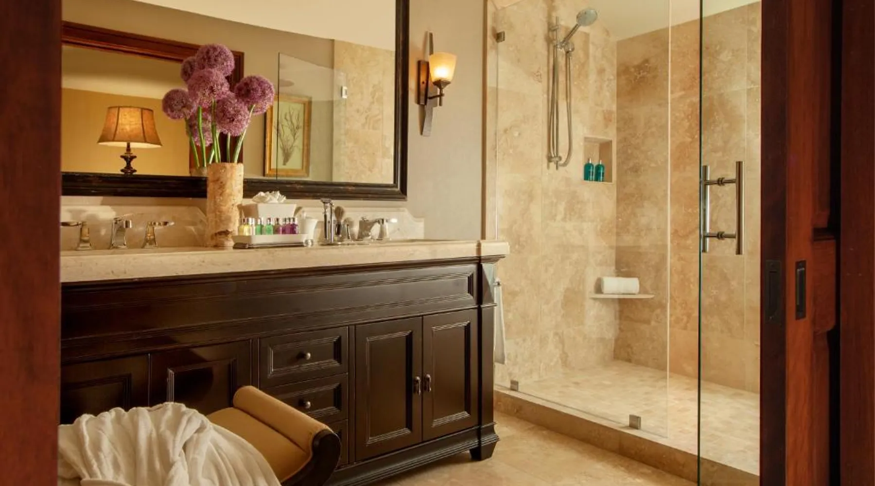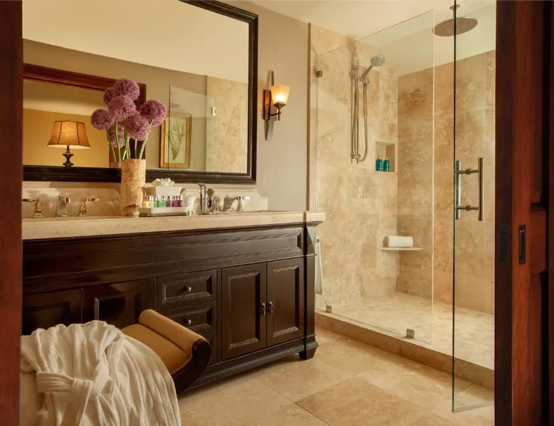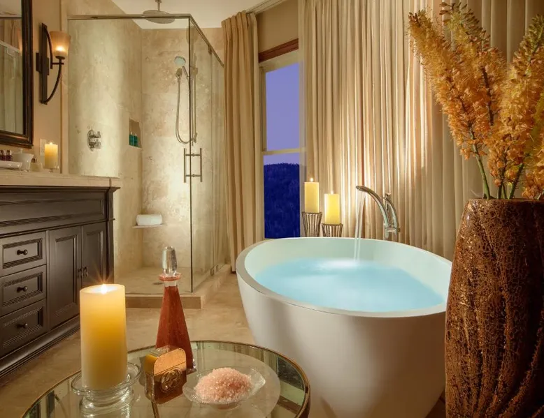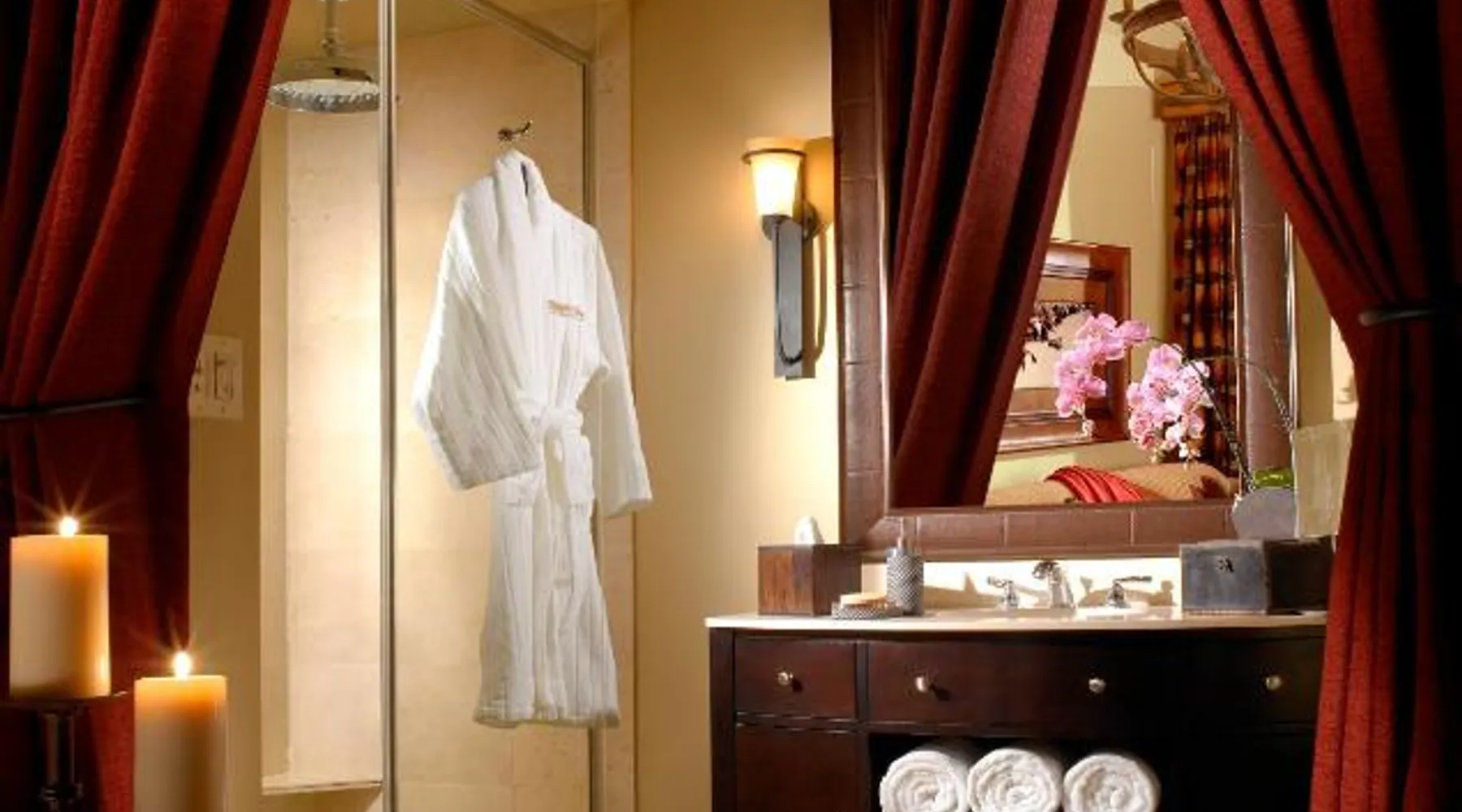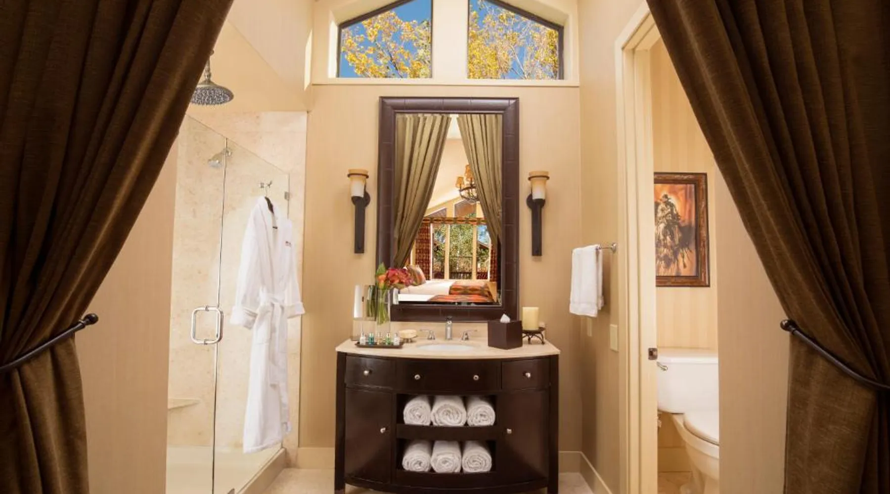 Live in the lap of luxury at the Rustic Inn Creekside Resort and Spa at Jackson Hole. This palatial resort features exclusive amenities, outdoor pool and Jacuzzi, daily breakfast buffet, fitness center, and a 2,300 square foot spa. Accommodations choices include spacious guest rooms, private cabins and luxury spa suites. The onsite restaurant offers locally-sourced, seasonal menus, and an extensive wine list. For adventure seekers, the resort is just a short drive from the south entrance of the nation's first National Park, and guests can also purchase ski passes, rentals for ski equipment, storage, and bikes on site. This room features flat-screen satellite TV, a small refrigerator and a coffee maker. A private bathroom with a rain shower is also included.