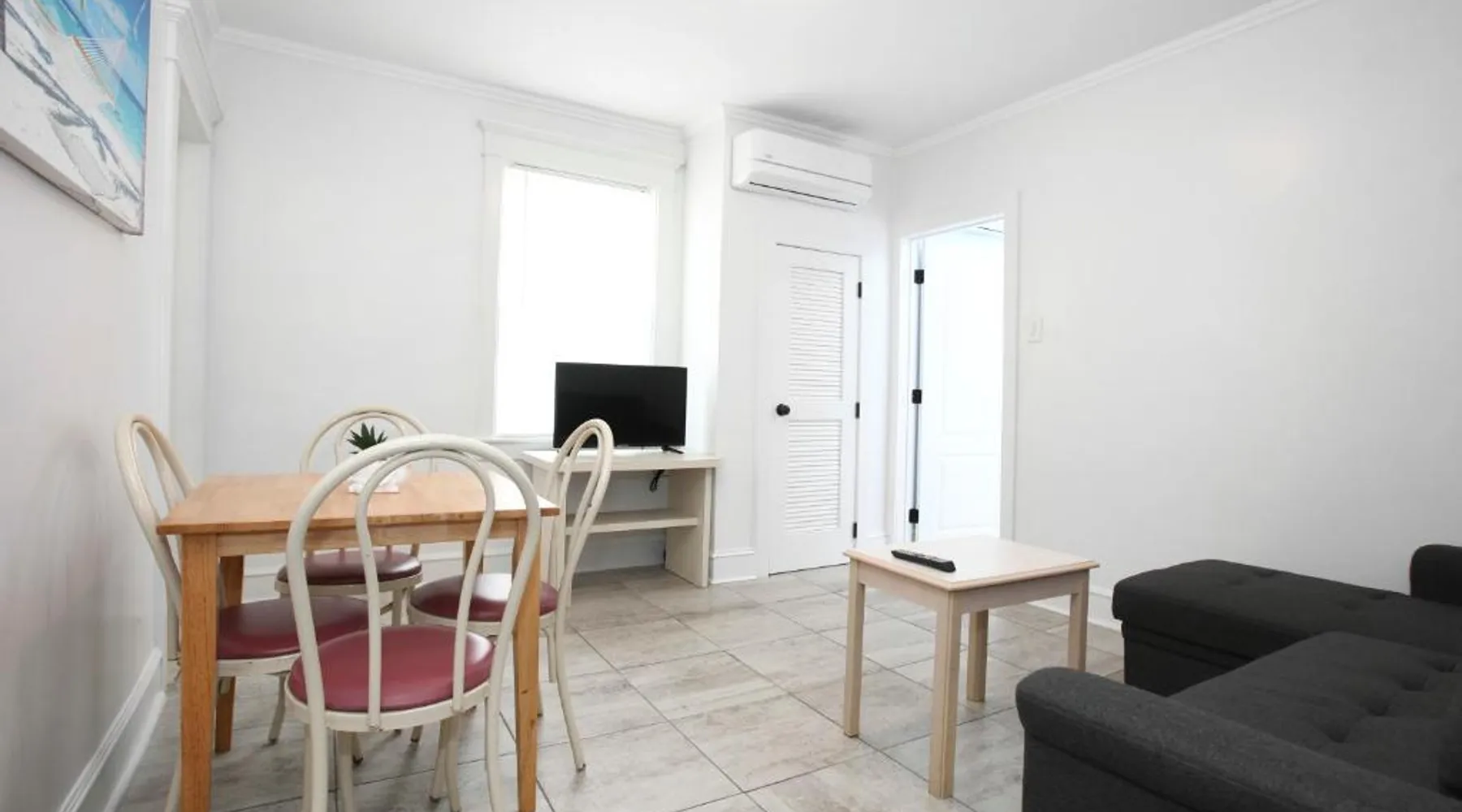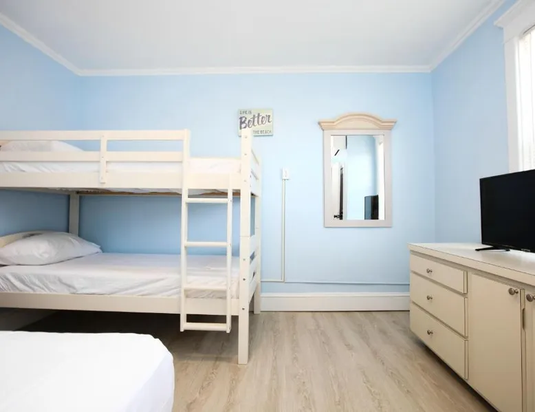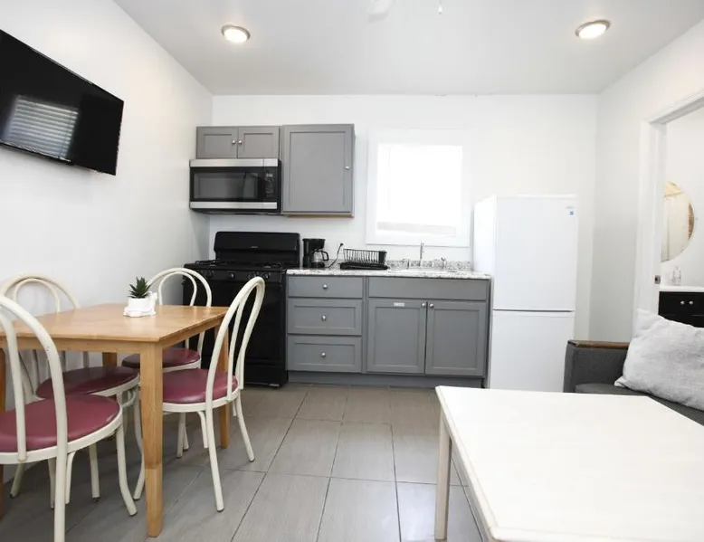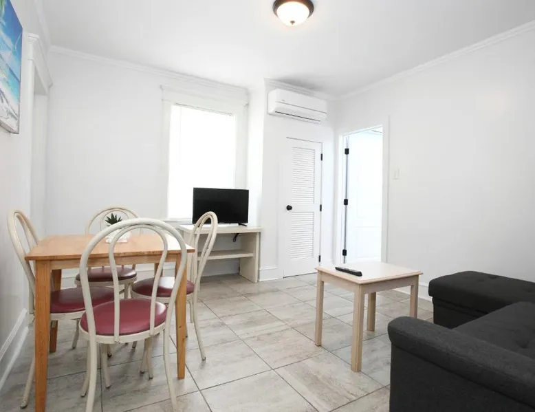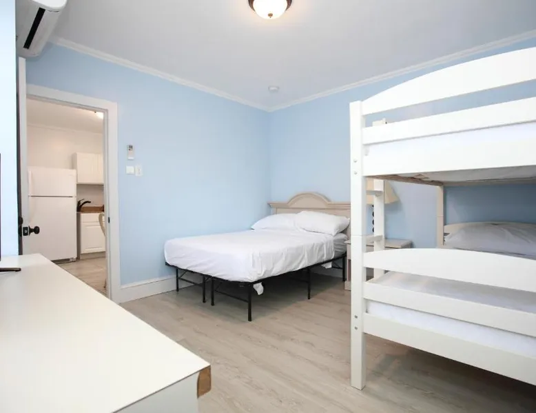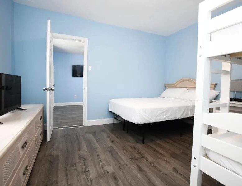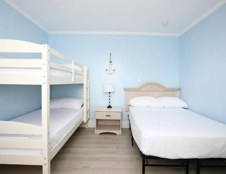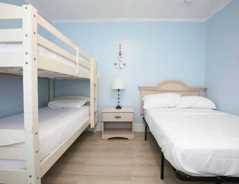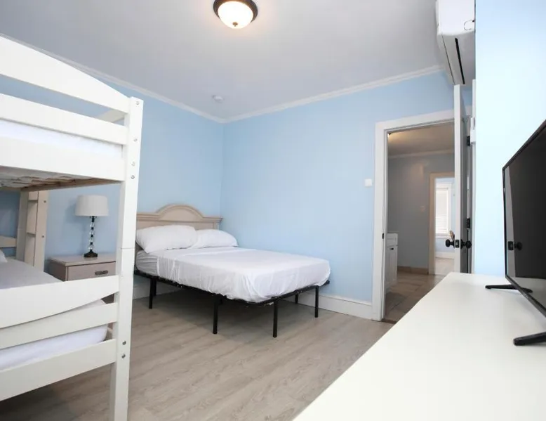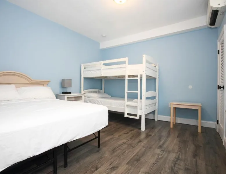 Comfortable Accommodations: Garfield Beach House in Wildwood offers aparthotel-style accommodations with free WiFi, air-conditioning, and private bathrooms. Each unit includes a kitchenette, dining area, and modern amenities such as streaming services and a washing machine. Convenient Facilities: Guests enjoy free private parking, an outdoor seating area, picnic spots, bicycle parking, and barbecue facilities. Additional amenities include a private entrance, tiled and parquet floors, and a sofa bed. Prime Location: Located 40 mi from Atlantic City International Airport, the aparthotel is a short walk from Wildwood Beach (3 minutes), Splash Zone Water Park (1969 feet), and Morey'S Piers (5 minutes). Nearby attractions include the Wildwoods Convention Center and Wildwood Boardwalk. Boasting a private entrance, this air-conditioned apartment includes 1 living room, 1 separate bedroom and 1 bathroom with a bath and a shower. In the well-equipped kitchen, guests will find a stovetop, a refrigerator, kitchenware and an oven. The apartment offers a washing machine, a tea and coffee maker, a seating area, a flat-screen TV with streaming services, as well as an inner courtyard view. The unit has 3 beds.