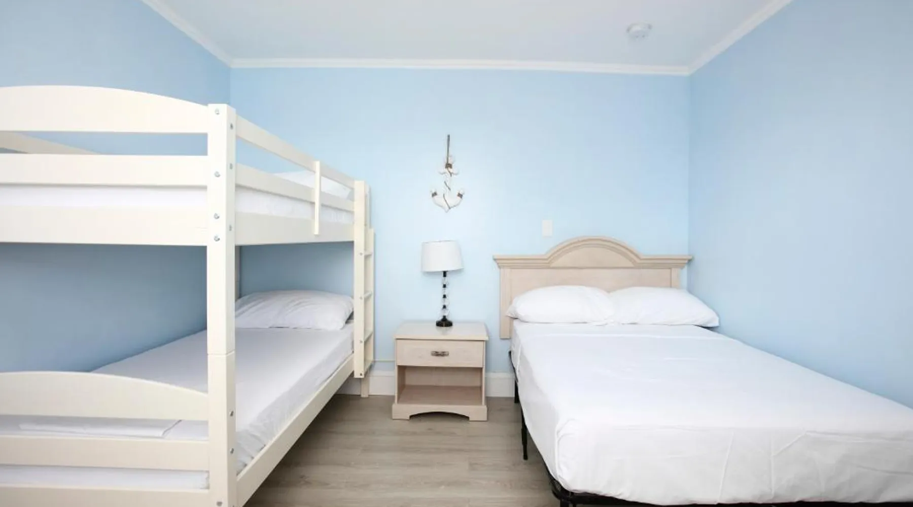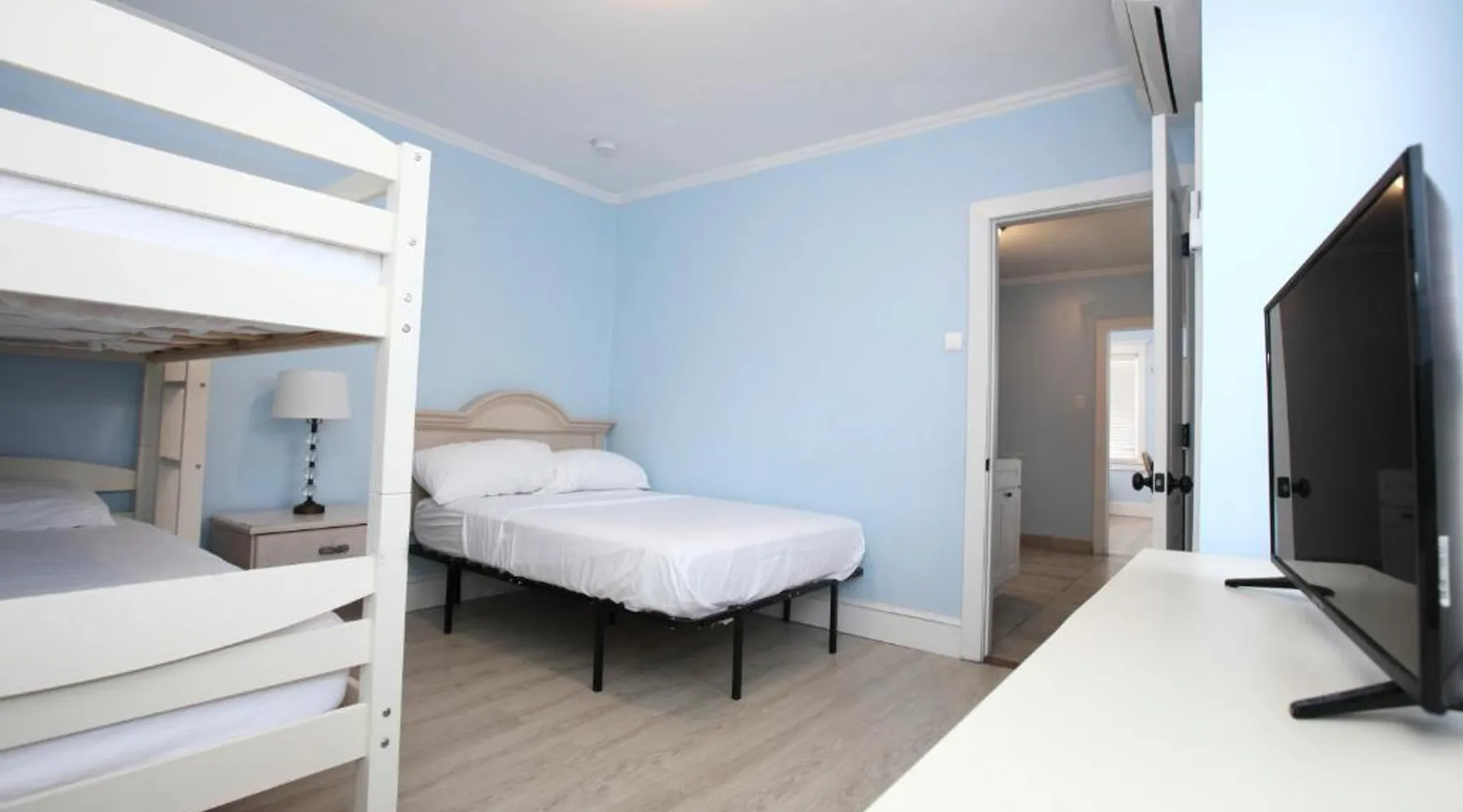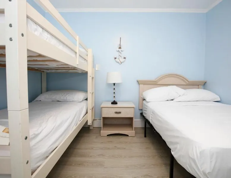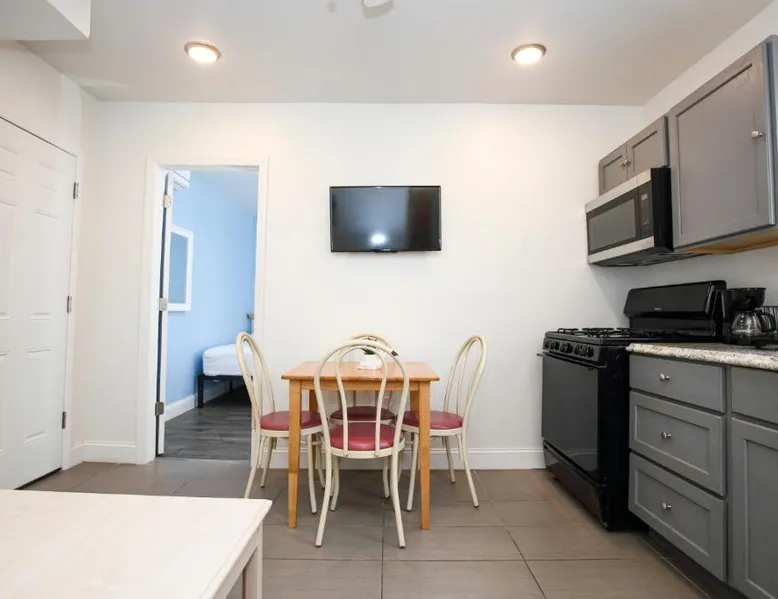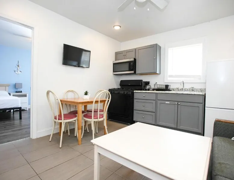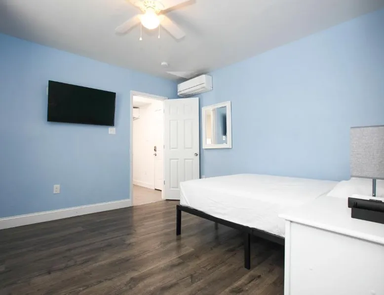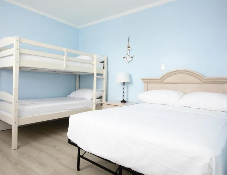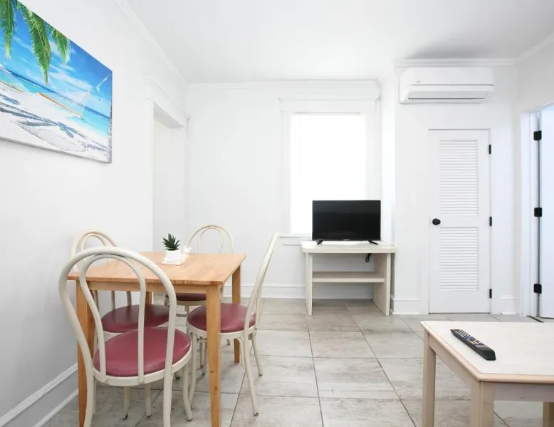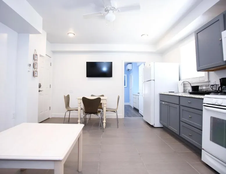 Comfortable Accommodations: Garfield Beach House in Wildwood offers aparthotel-style accommodations with free WiFi, air-conditioning, and private bathrooms. Each unit includes a kitchenette, dining area, and modern amenities such as streaming services and a washing machine. Convenient Facilities: Guests enjoy free private parking, an outdoor seating area, picnic spots, bicycle parking, and barbecue facilities. Additional amenities include a private entrance, tiled and parquet floors, and a sofa bed. Prime Location: Located 40 mi from Atlantic City International Airport, the aparthotel is a short walk from Wildwood Beach (3 minutes), Splash Zone Water Park (1969 feet), and Morey'S Piers (5 minutes). Nearby attractions include the Wildwoods Convention Center and Wildwood Boardwalk. Boasting a private entrance, this air-conditioned apartment includes 1 living room, 1 separate bedroom and 1 bathroom with a bath and a shower. In the well-equipped kitchen, guests will find a stovetop, a refrigerator, kitchenware and an oven. The apartment offers a washing machine, a tea and coffee maker, a seating area, a flat-screen TV with streaming services, as well as an inner courtyard view. The unit has 3 beds.