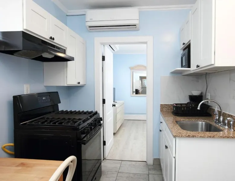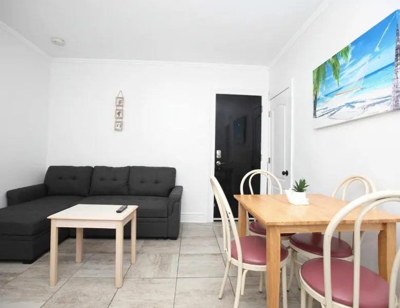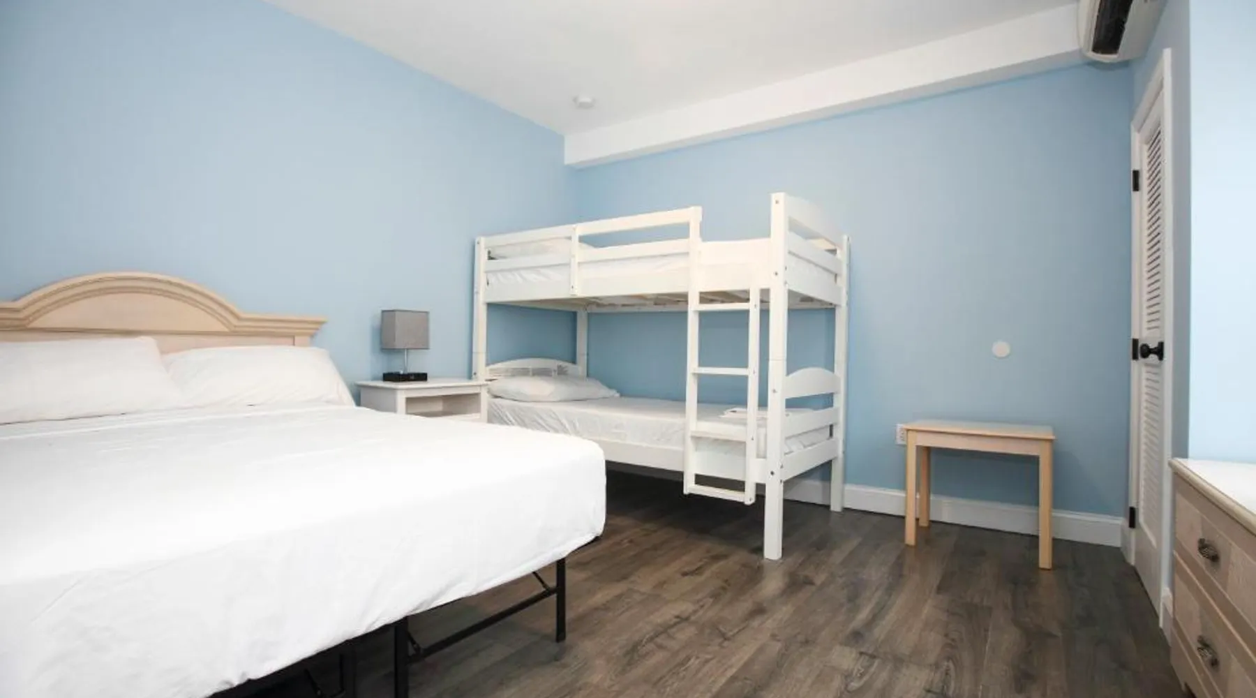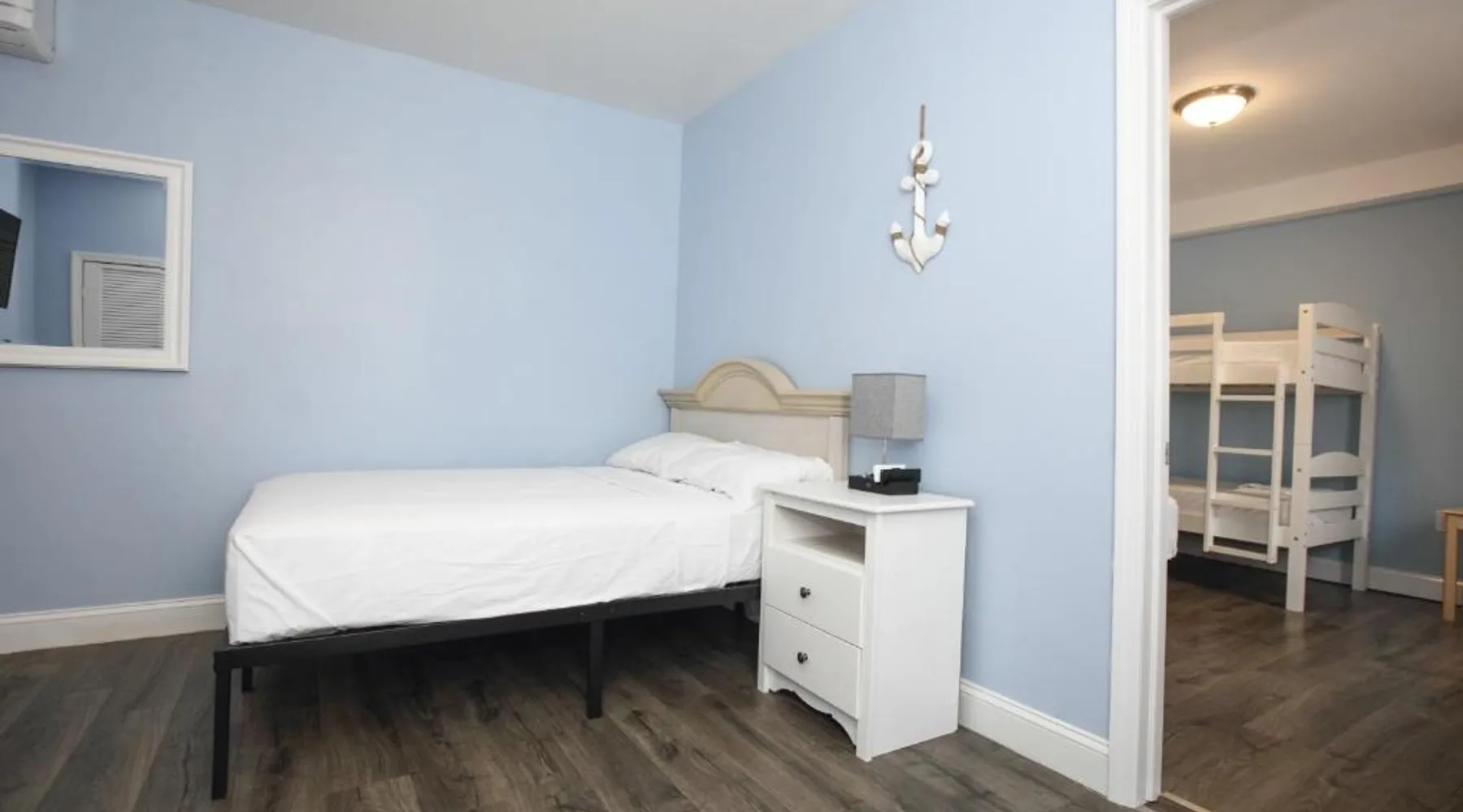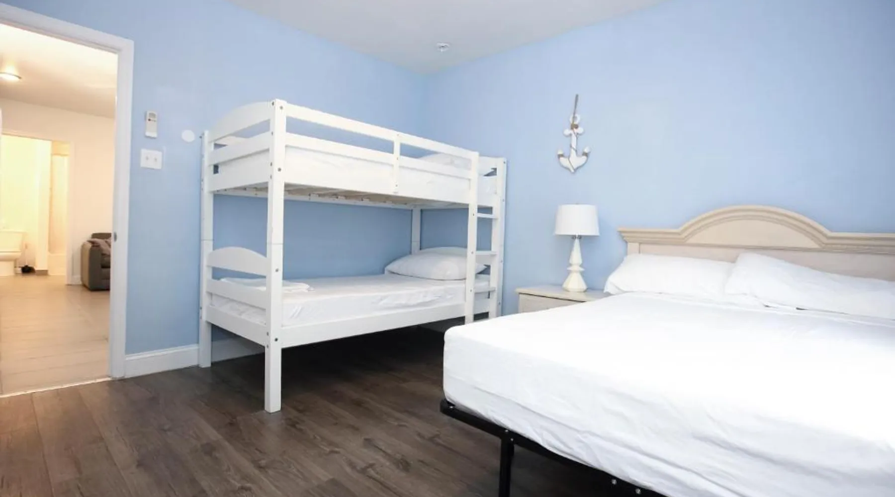 Comfortable Accommodations: Garfield Beach House in Wildwood offers aparthotel-style accommodations with free WiFi, air-conditioning, and private bathrooms. Each unit includes a kitchenette, dining area, and modern amenities such as streaming services and a washing machine. Convenient Facilities: Guests enjoy free private parking, an outdoor seating area, picnic spots, bicycle parking, and barbecue facilities. Additional amenities include a private entrance, tiled and parquet floors, and a sofa bed. Prime Location: Located 40 mi from Atlantic City International Airport, the aparthotel is a short walk from Wildwood Beach (3 minutes), Splash Zone Water Park (1969 feet), and Morey'S Piers (5 minutes). Nearby attractions include the Wildwoods Convention Center and Wildwood Boardwalk. Boasting a private entrance, this air-conditioned apartment includes 1 living room, 1 separate bedroom and 1 bathroom with a bath and a shower. In the well-equipped kitchen, guests will find a stovetop, a refrigerator, kitchenware and an oven. The apartment offers a washing machine, a tea and coffee maker, a seating area, a flat-screen TV with streaming services, as well as an inner courtyard view. The unit has 3 beds.