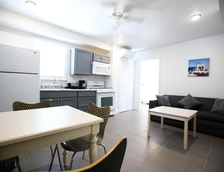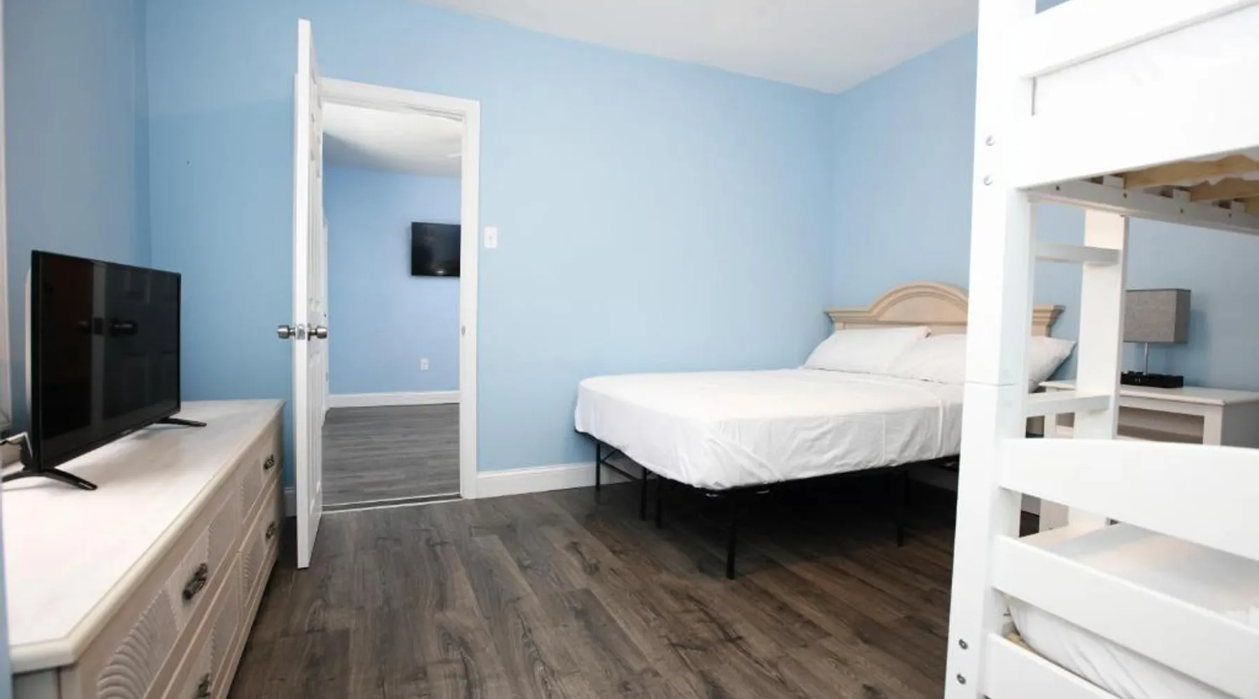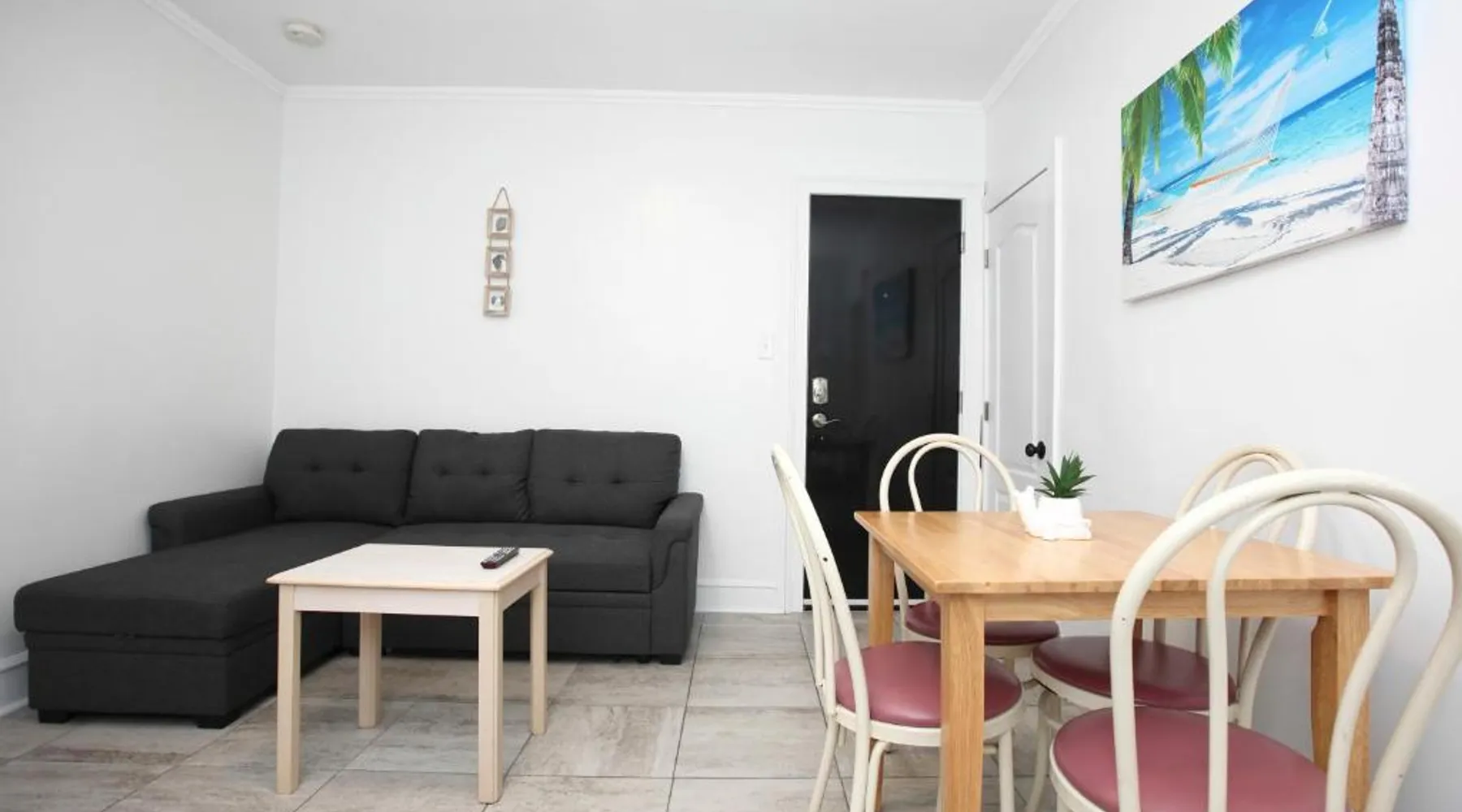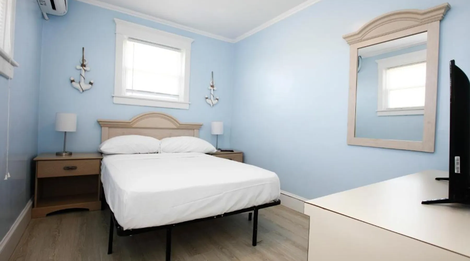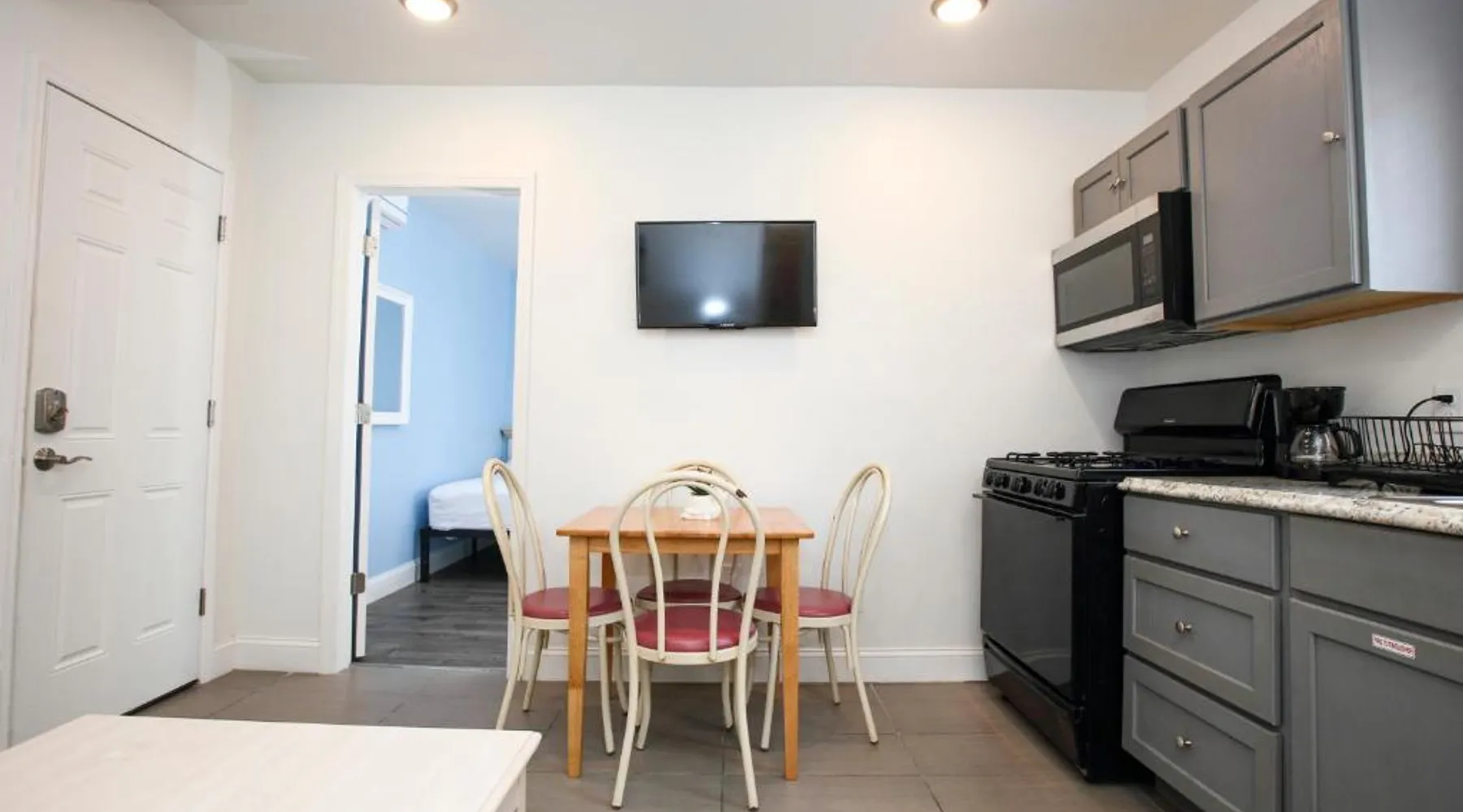 Comfortable Accommodations: Garfield Beach House in Wildwood offers aparthotel-style accommodations with free WiFi, air-conditioning, and private bathrooms. Each unit includes a kitchenette, dining area, and modern amenities such as streaming services and a washing machine. Convenient Facilities: Guests enjoy free private parking, an outdoor seating area, picnic spots, bicycle parking, and barbecue facilities. Additional amenities include a private entrance, tiled and parquet floors, and a sofa bed. Prime Location: Located 40 mi from Atlantic City International Airport, the aparthotel is a short walk from Wildwood Beach (3 minutes), Splash Zone Water Park (1969 feet), and Morey'S Piers (5 minutes). Nearby attractions include the Wildwoods Convention Center and Wildwood Boardwalk. Boasting a private entrance, this air-conditioned apartment includes 1 living room, 1 separate bedroom and 1 bathroom with a bath and a shower. In the well-equipped kitchen, guests will find a stovetop, a refrigerator, kitchenware and an oven. The apartment offers a washing machine, a tea and coffee maker, a seating area, a flat-screen TV with streaming services, as well as an inner courtyard view. The unit has 3 beds.