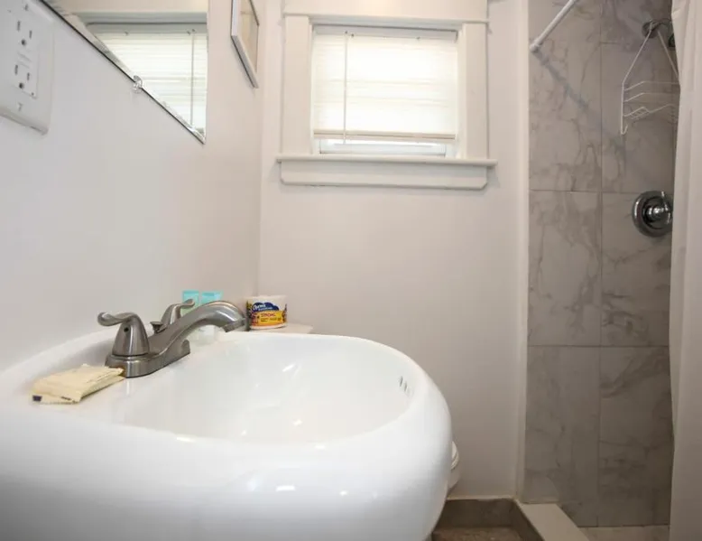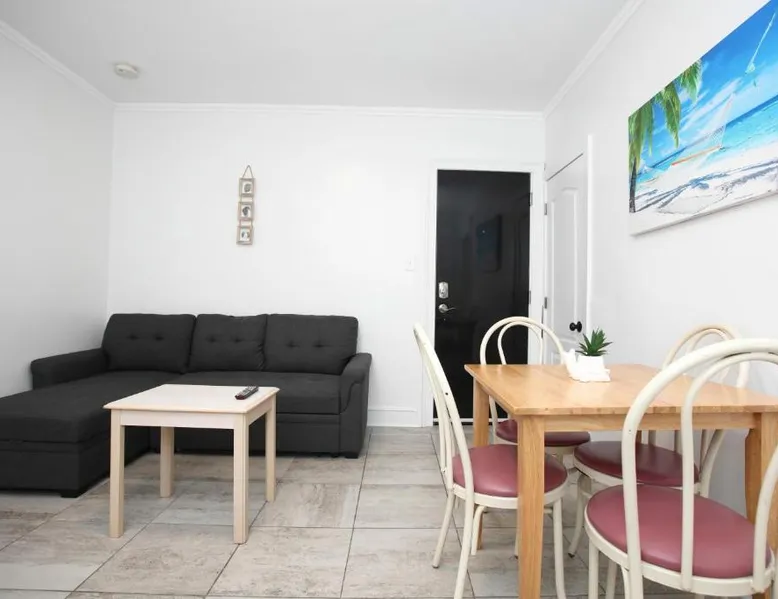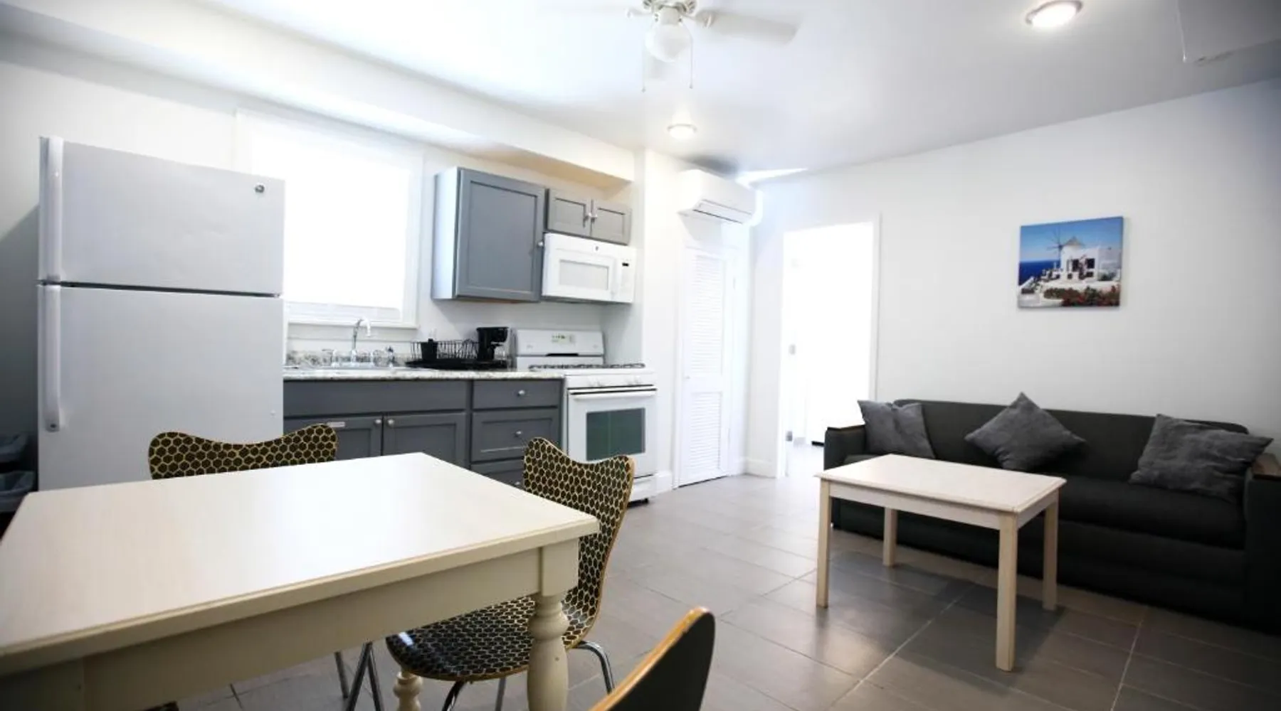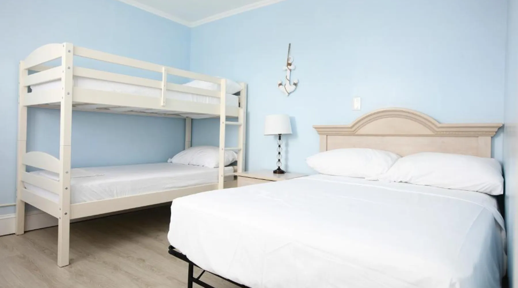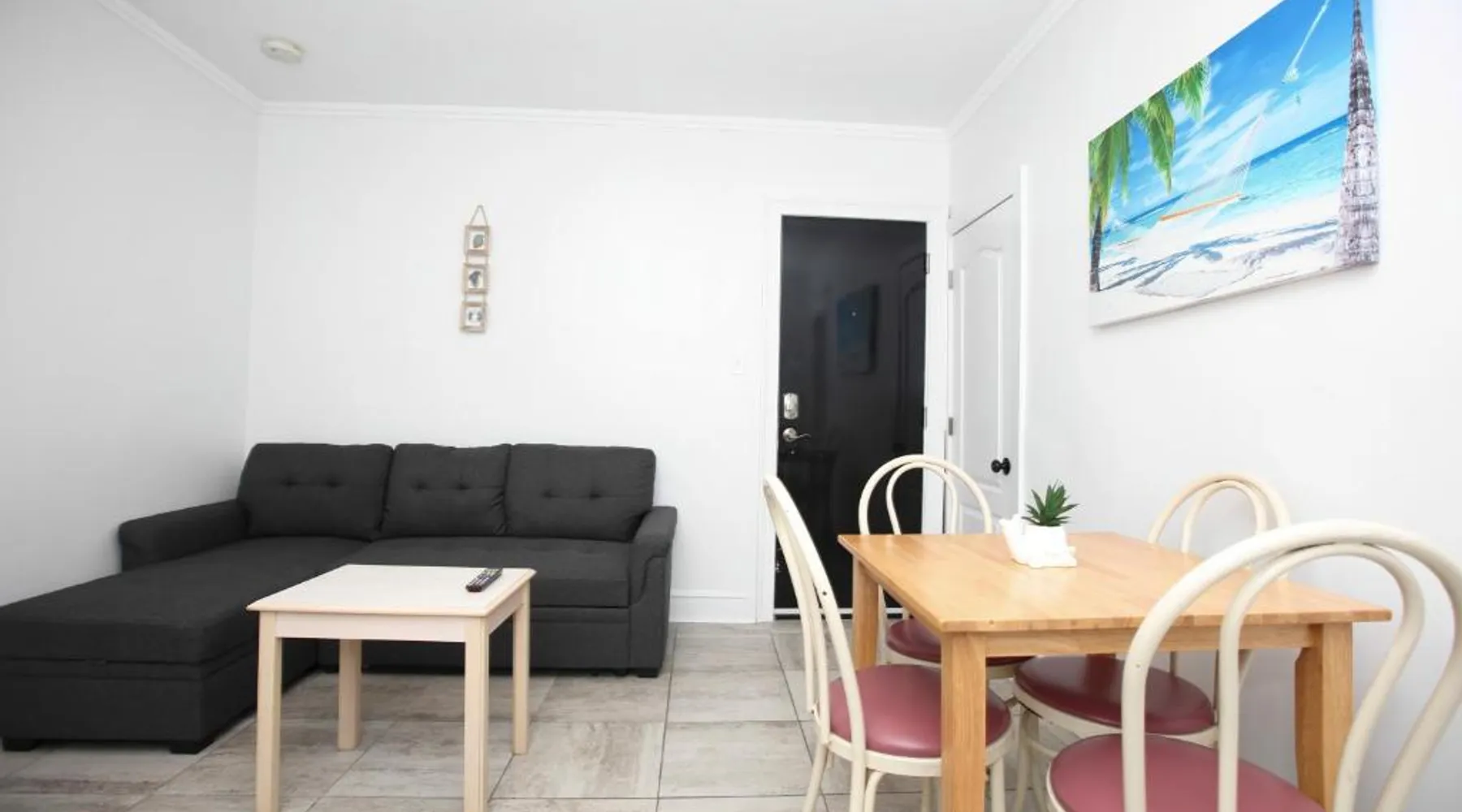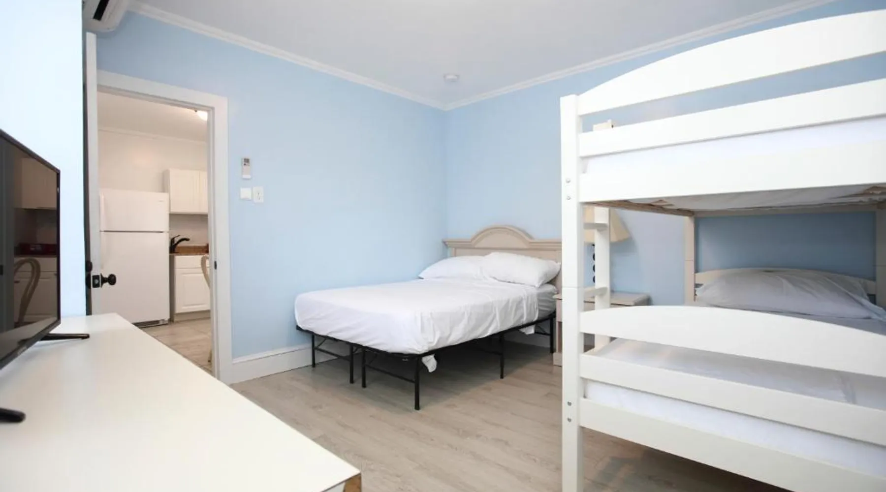 Comfortable Accommodations: Garfield Beach House in Wildwood offers aparthotel-style accommodations with free WiFi, air-conditioning, and private bathrooms. Each unit includes a kitchenette, dining area, and modern amenities such as streaming services and a washing machine. Convenient Facilities: Guests enjoy free private parking, an outdoor seating area, picnic spots, bicycle parking, and barbecue facilities. Additional amenities include a private entrance, tiled and parquet floors, and a sofa bed. Prime Location: Located 40 mi from Atlantic City International Airport, the aparthotel is a short walk from Wildwood Beach (3 minutes), Splash Zone Water Park (1969 feet), and Morey'S Piers (5 minutes). Nearby attractions include the Wildwoods Convention Center and Wildwood Boardwalk. Boasting a private entrance, this air-conditioned apartment includes 1 living room, 1 separate bedroom and 1 bathroom with a bath and a shower. In the well-equipped kitchen, guests will find a stovetop, a refrigerator, kitchenware and an oven. The apartment offers a washing machine, a tea and coffee maker, a seating area, a flat-screen TV with streaming services, as well as an inner courtyard view. The unit has 3 beds.