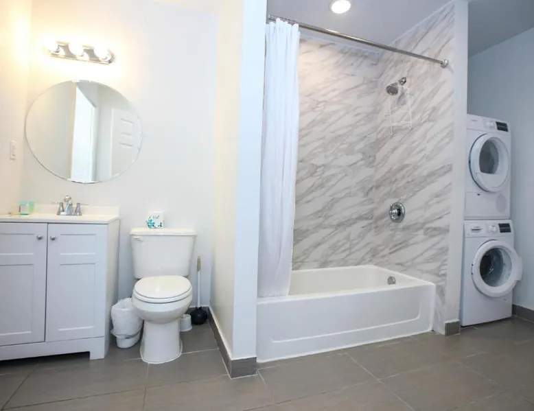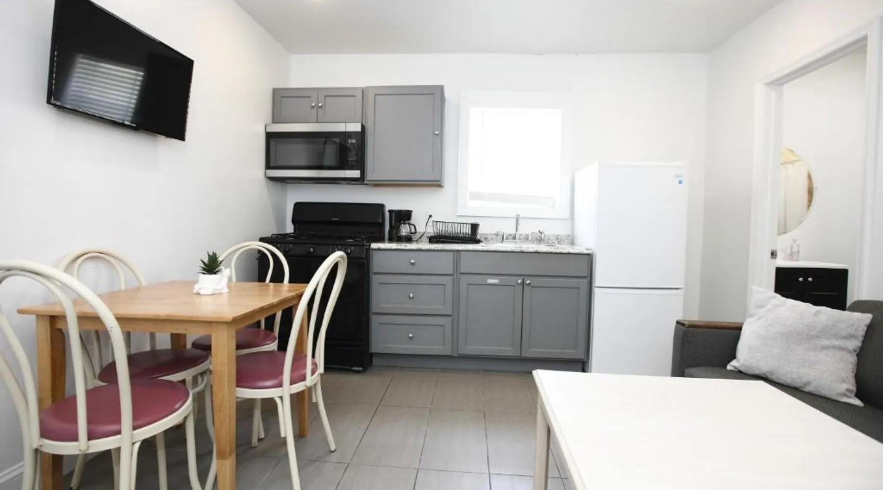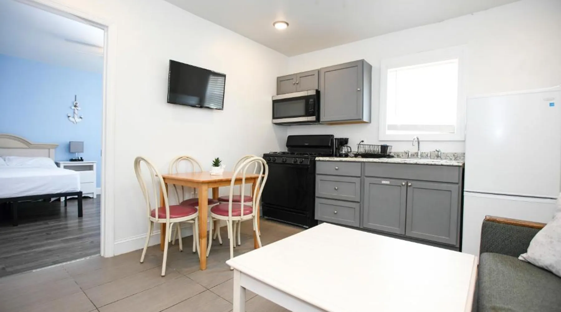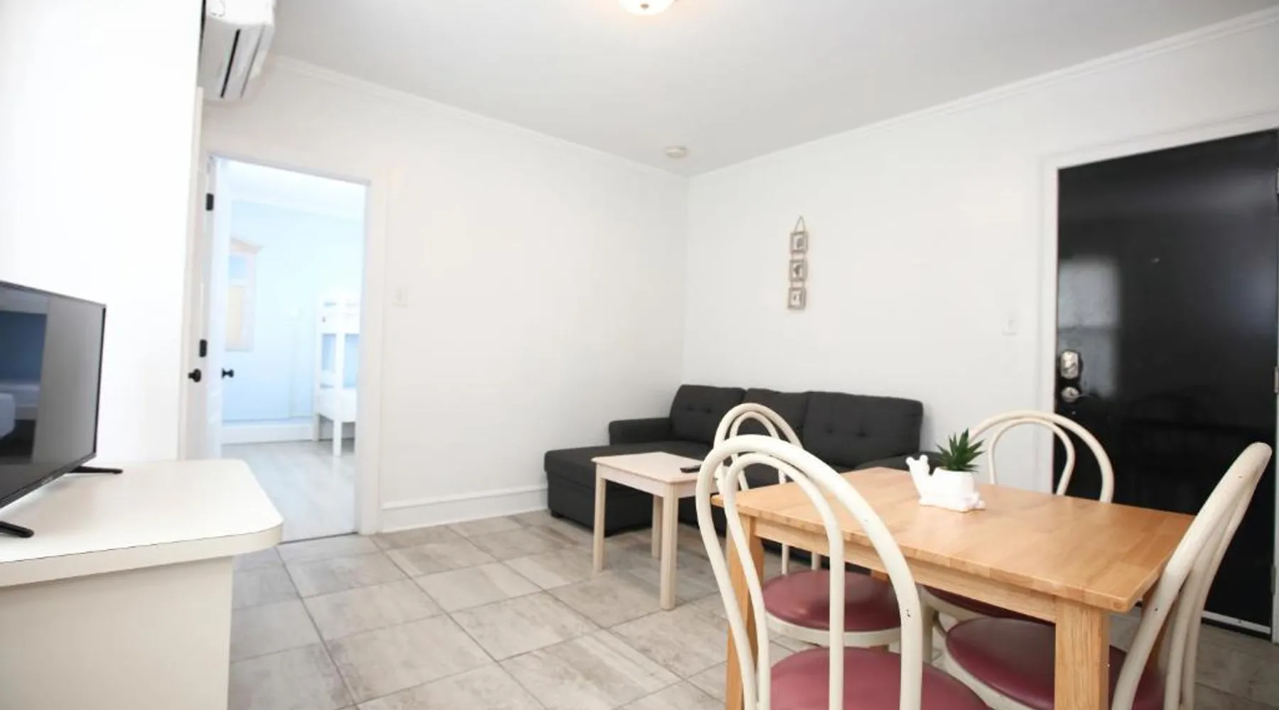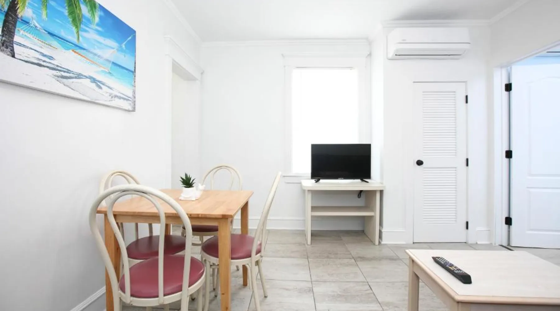 Comfortable Accommodations: Garfield Beach House in Wildwood offers aparthotel-style accommodations with free WiFi, air-conditioning, and private bathrooms. Each unit includes a kitchenette, dining area, and modern amenities such as streaming services and a washing machine. Convenient Facilities: Guests enjoy free private parking, an outdoor seating area, picnic spots, bicycle parking, and barbecue facilities. Additional amenities include a private entrance, tiled and parquet floors, and a sofa bed. Prime Location: Located 40 mi from Atlantic City International Airport, the aparthotel is a short walk from Wildwood Beach (3 minutes), Splash Zone Water Park (1969 feet), and Morey'S Piers (5 minutes). Nearby attractions include the Wildwoods Convention Center and Wildwood Boardwalk. Boasting a private entrance, this air-conditioned apartment includes 1 living room, 1 separate bedroom and 1 bathroom with a bath and a shower. In the well-equipped kitchen, guests will find a stovetop, a refrigerator, kitchenware and an oven. The apartment offers a washing machine, a tea and coffee maker, a seating area, a flat-screen TV with streaming services, as well as an inner courtyard view. The unit has 3 beds.