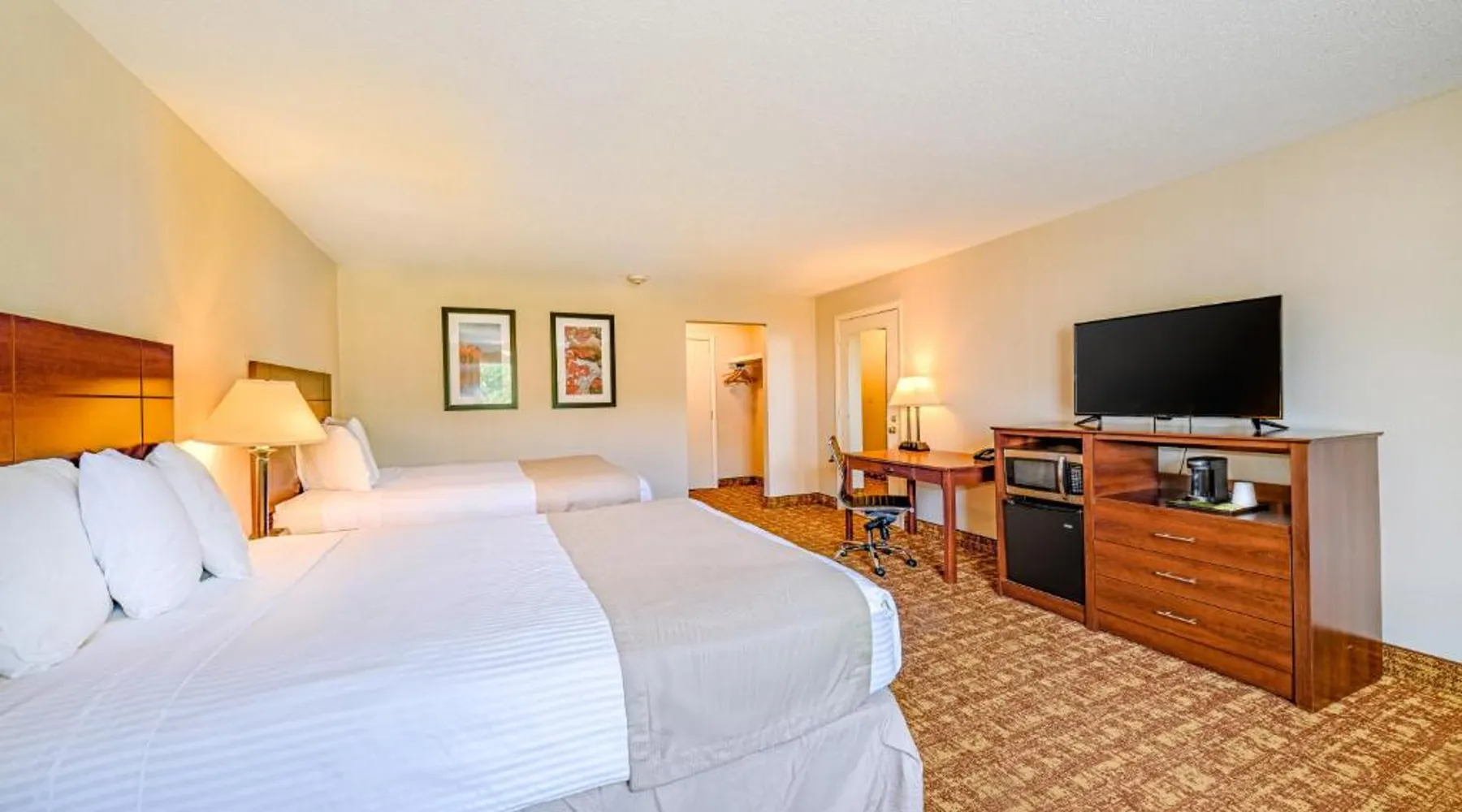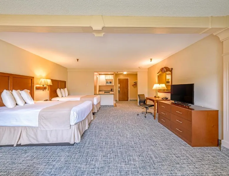 Situated in the beautiful White Mountains, this resort boasts stunning views, entertainment and a prime location just moments from trails for skiing, hiking and sightseeing in Shelburne, New Hampshire. Town & Country Inn & Resort's on-site restaurant offers a delicious menu for breakfast and dinner. Stop by the lounge for nightly complimentary hors d'oeuvres and live entertainment on Friday and Saturday nights. After a day of exploring the area, go for a swim in the indoor heated pool or relax in the jacuzzi. Town & Country Resort also features a sauna and steam room. Guests can also stay in shape with the on-site gym or have some fun in the arcade. This room overlooks the pool.