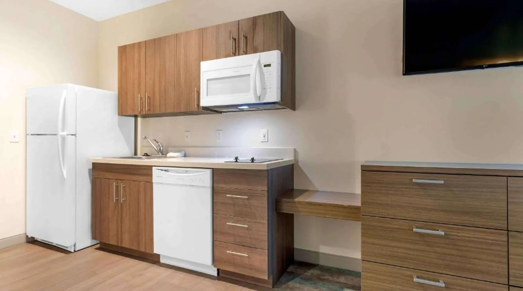 Comfortable Accommodations: Extended Stay America Premier Suites - Greenville - Woodruff Road in Greenville offers comfortable rooms with air-conditioning, private bathrooms, and free WiFi. Each room includes a work desk, TV, and wardrobe. Facilities and Services: Guests can enjoy a fitness center, elevator, 24-hour front desk, and barbecue facilities. Free on-site parking is available. The hotel is highly rated for its convenient location, room cleanliness, and comfort. Local Attractions: Roper Mountain Science Center is a 16-minute walk away, while Greenville-Spartanburg International Airport is 7.5 mi from the property. Nearby attractions include Frankie S Fun Park (1.9 mi) and Greenville Zoo (5.6 mi). Featuring free toiletries, this studio includes a private bathroom with a bath, a shower and a hairdryer. In the well-equipped kitchen, guests will find a stovetop, a refrigerator, kitchenware and a microwave. The studio has parquet floors, a seating area with a flat-screen TV with cable channels, air conditioning, a tea and coffee maker, as well as a dining area. The unit has 1 bed.