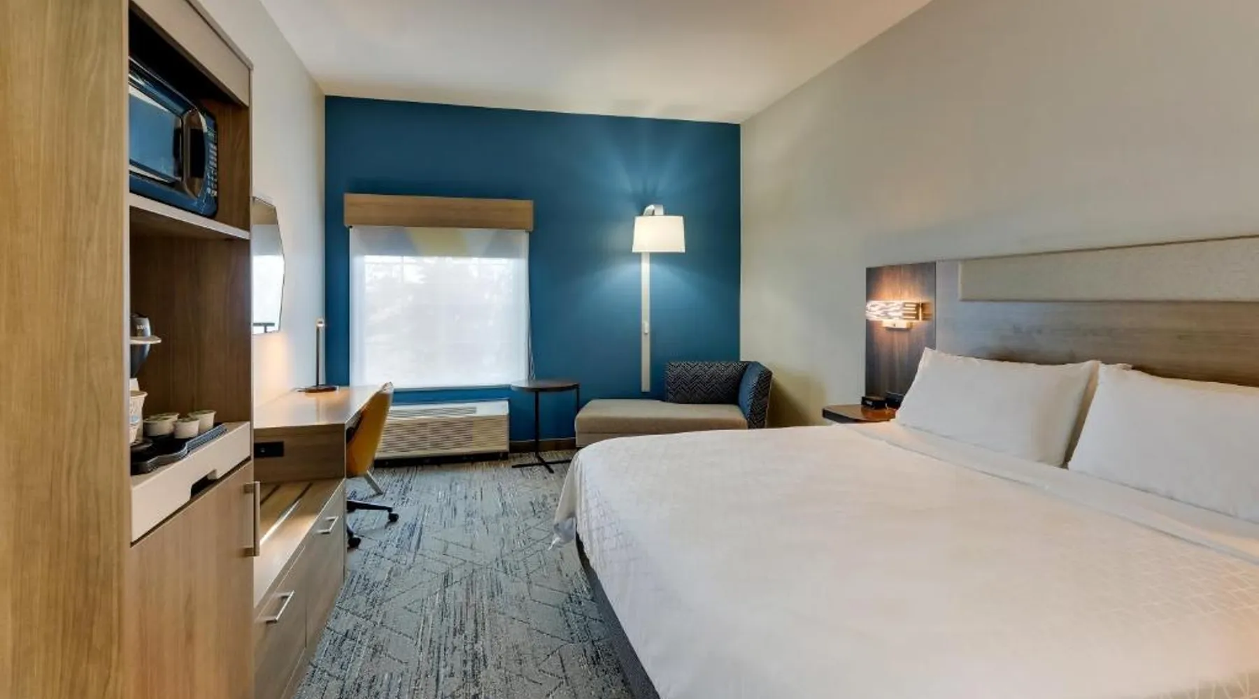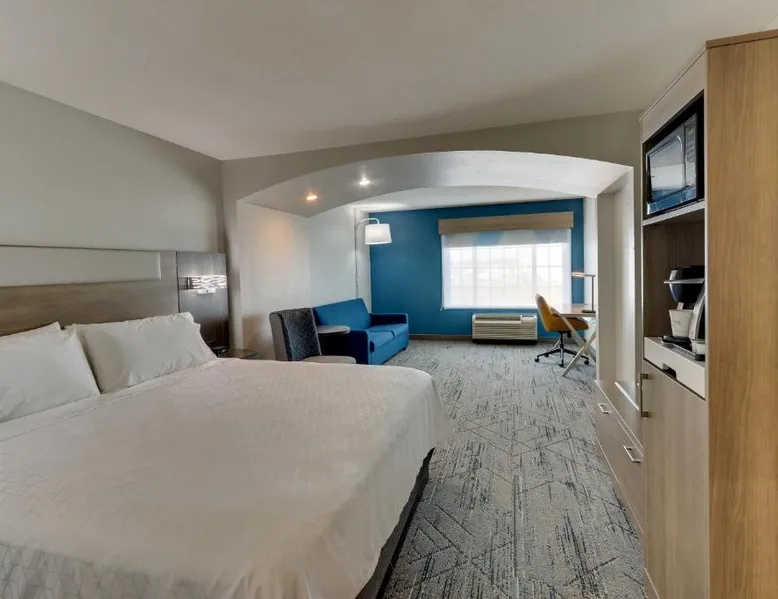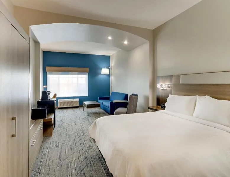 Comfortable Accommodations: Holiday Inn Express & Suites - Ardmore by IHG in Ardmore offers family rooms with air-conditioning, private bathrooms, and modern amenities. Each room includes a tea and coffee maker, refrigerator, work desk, and free toiletries. Leisure Facilities: Guests can enjoy a fitness center, indoor swimming pool, and free WiFi. Additional facilities include a fitness room, elevator, 24-hour front desk, minimarket, business area, laundry service, outdoor seating, picnic area, and barbecue facilities. Prime Location: Located less than 0.6 mi from Crystalrock Cathedral and 17 mi from the Gene Autry Oklahoma Museum, the hotel provides easy access to local attractions. Free on-site private parking is available for guests. Guest Satisfaction: Guests appreciate the room cleanliness, convenient location, and attentive property staff and service support. The spacious double room provides air conditioning, a tea and coffee maker, as well as a private bathroom featuring a bath or a shower and a hairdryer. The unit offers 1 bed.