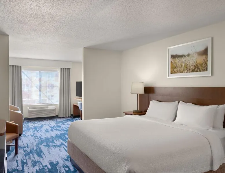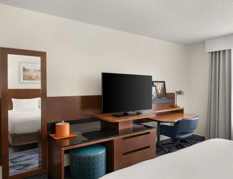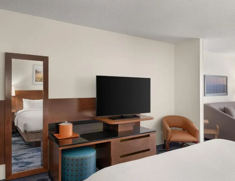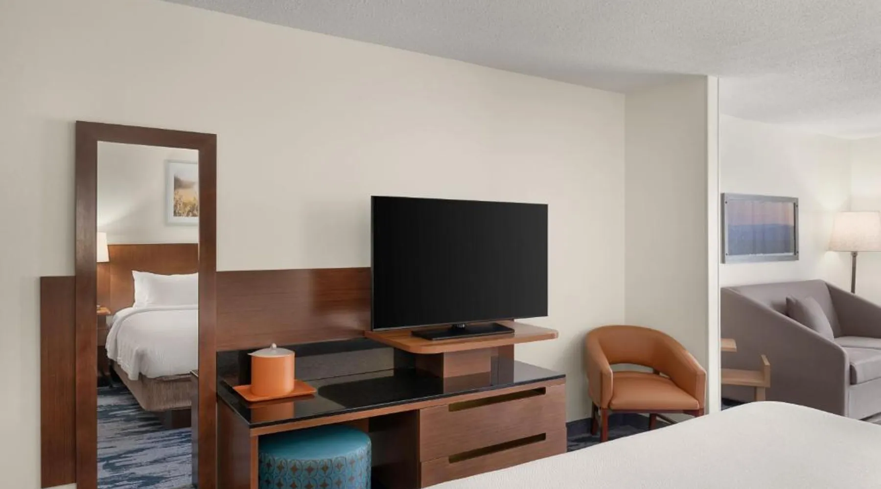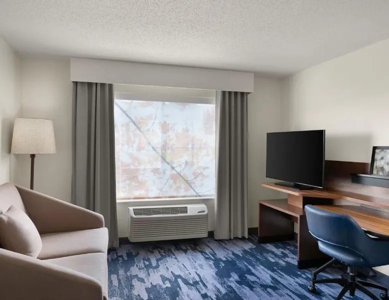 Comfortable Accommodations: Fairfield Inn & Suites Naperville/Aurora in Naperville offers family rooms with air-conditioning, private bathrooms, and free WiFi. Each room includes a work desk, seating area, and TV. Convenient Facilities: Guests benefit from a elevator, 24-hour front desk, minimarket, and free on-site parking. Additional amenities include a tea and coffee maker, coffee machine, shower, and carpeted floors. Delicious Breakfast: A continental buffet breakfast is served daily, featuring juice, fresh pastries, pancakes, and fruits. The property staff ensure room cleanliness and excellent service support. Local Attractions: Located 25 mi from Chicago O'Hare International Airport and 30 mi from the United Center, the hotel is near an ice-skating rink. Featuring a cable TV with seating area, this room also includes tea and coffee-making facilities.