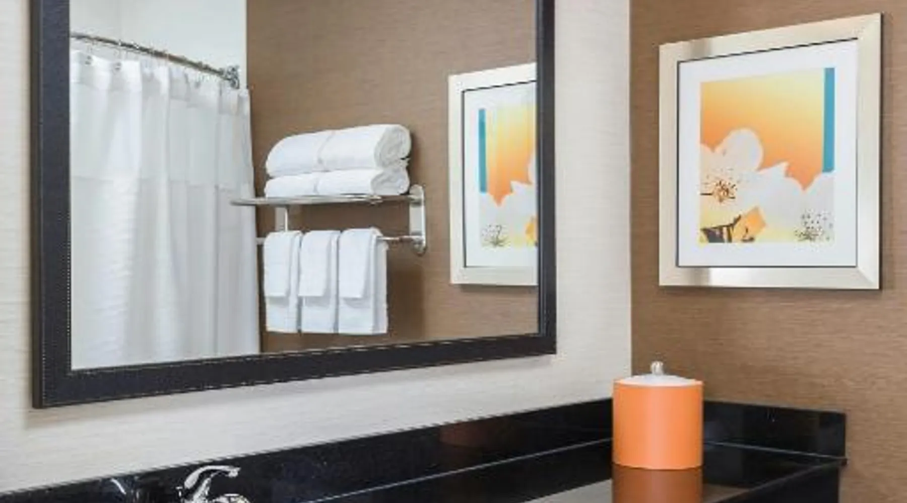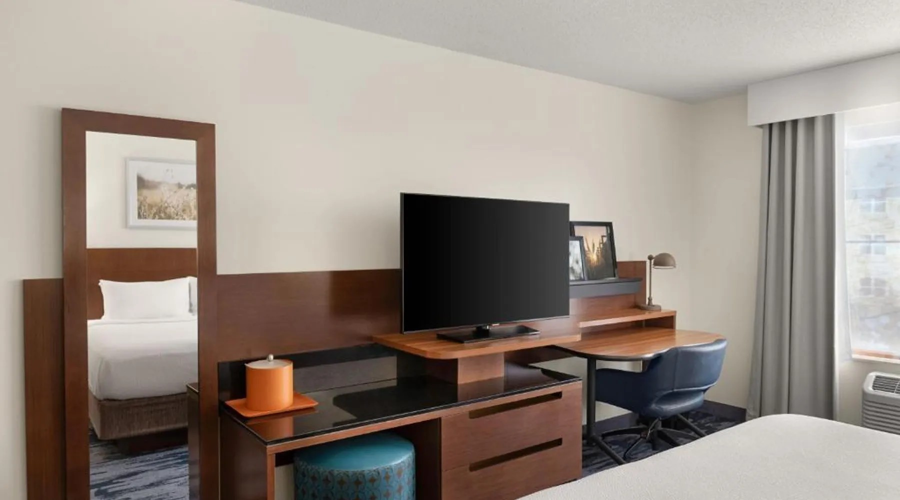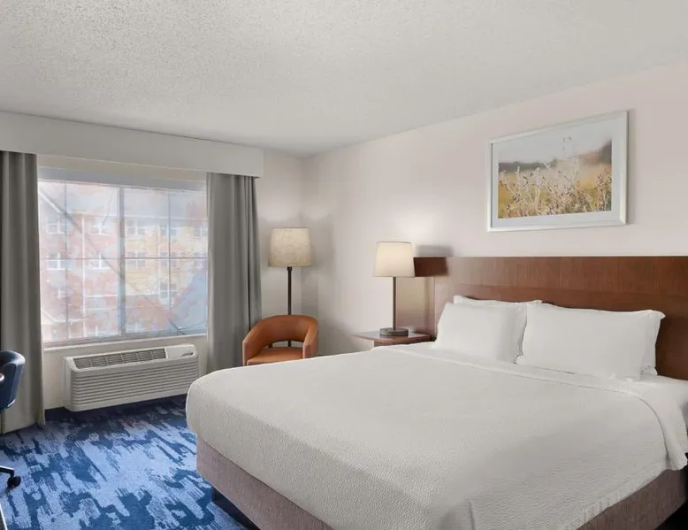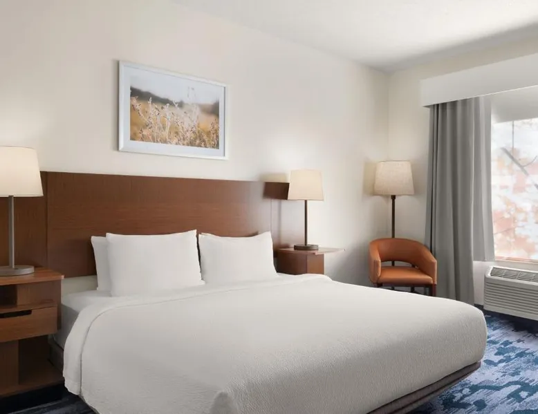 Comfortable Accommodations: Fairfield Inn & Suites Naperville/Aurora in Naperville offers family rooms with air-conditioning, private bathrooms, and free WiFi. Each room includes a work desk, seating area, and TV. Convenient Facilities: Guests benefit from a elevator, 24-hour front desk, minimarket, and free on-site parking. Additional amenities include a tea and coffee maker, coffee machine, shower, and carpeted floors. Delicious Breakfast: A continental buffet breakfast is served daily, featuring juice, fresh pastries, pancakes, and fruits. The property staff ensure room cleanliness and excellent service support. Local Attractions: Located 25 mi from Chicago O'Hare International Airport and 30 mi from the United Center, the hotel is near an ice-skating rink. Featuring a cable TV with seating area, this room also includes tea and coffee-making facilities.