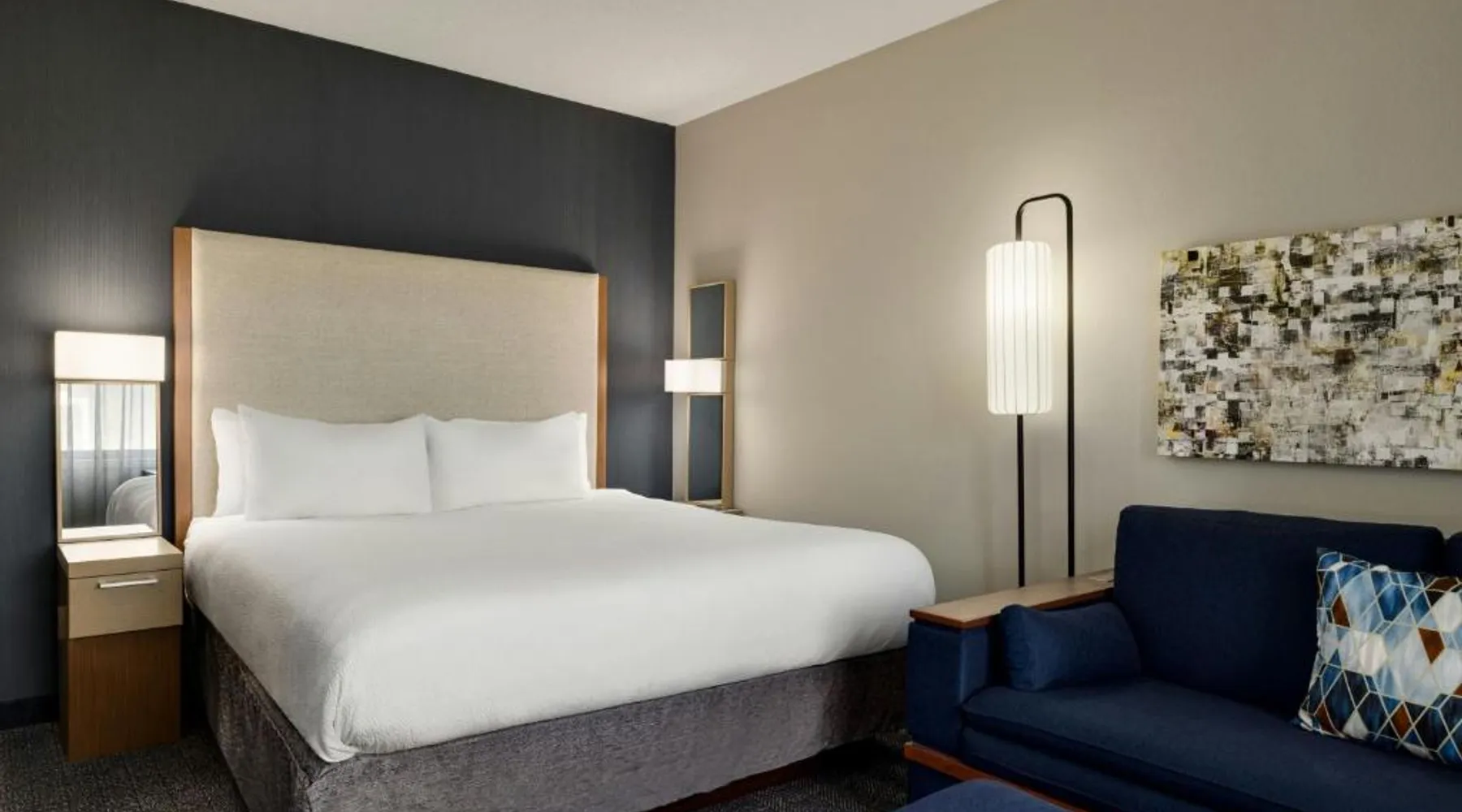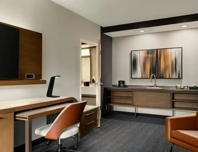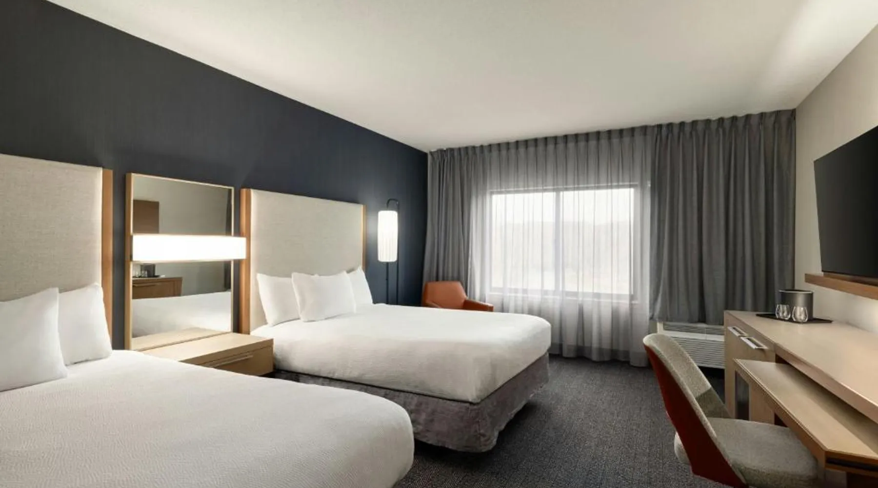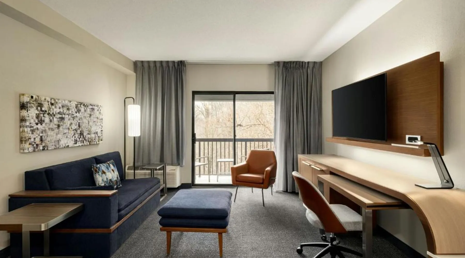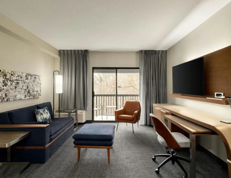 Comfortable Accommodations: Courtyard Wilmington Brandywine in Wilmington offers air-conditioned rooms with private bathrooms, free toiletries, and soundproofing. Each room includes a work desk, seating area, TV, and carpeted floors. Dining Experience: Guests can enjoy American cuisine at the on-site restaurant, complemented by a variety of beverages. The restaurant provides a relaxing atmosphere for meals and refreshments. Convenient Facilities: The hotel features a elevator, 24-hour front desk, and free on-site parking. Additional amenities include a tea and coffee maker, hairdryer, and free toiletries. Nearby Attractions: Located 11 mi from New Castle Airport, the hotel is close to Delaware Museum of Natural History (5 mi), Old Dutch House (14 mi), and Philadelphia Museum of Art (27 mi). Guests appreciate the attentive staff and excellent service support. This modern room includes a flat-screen cable TV and coffee-making facilities.