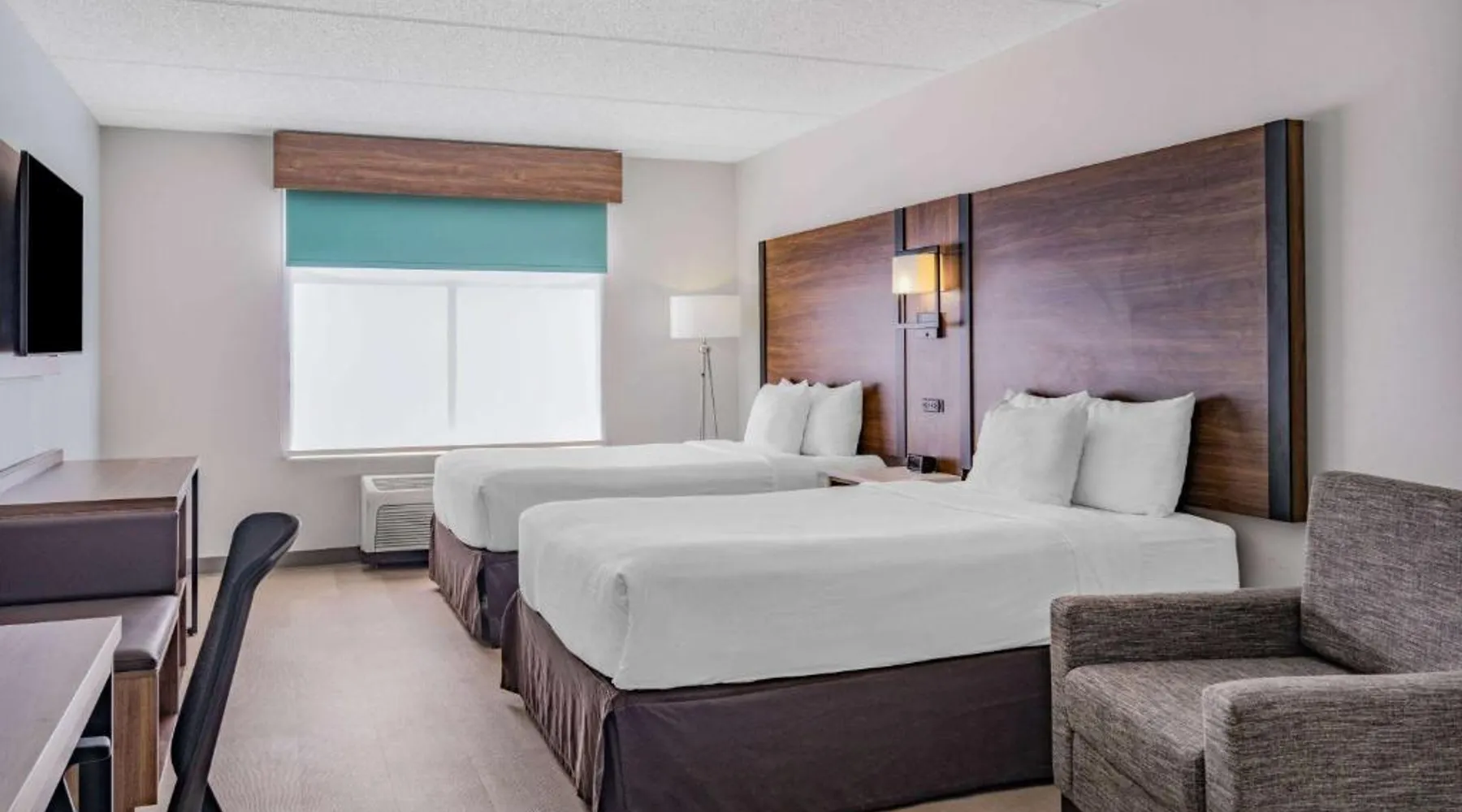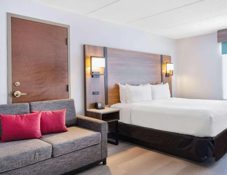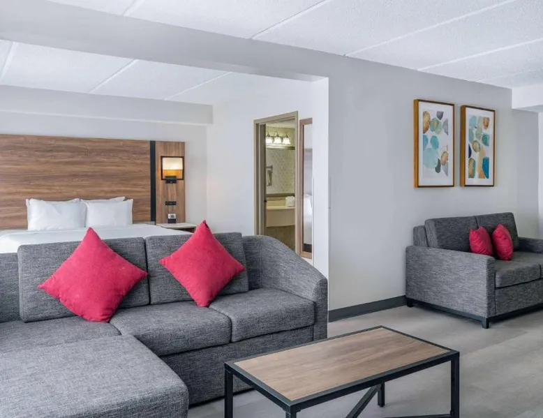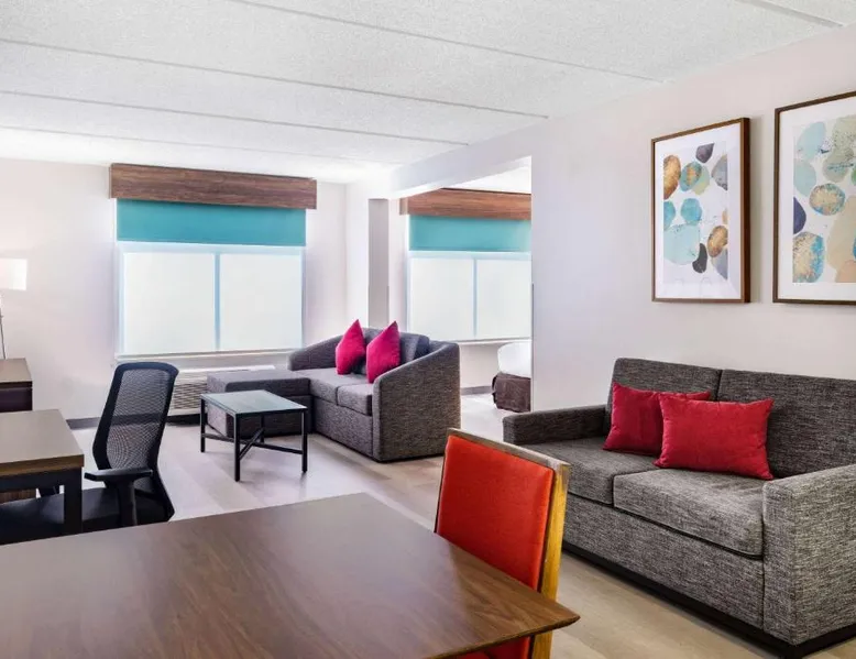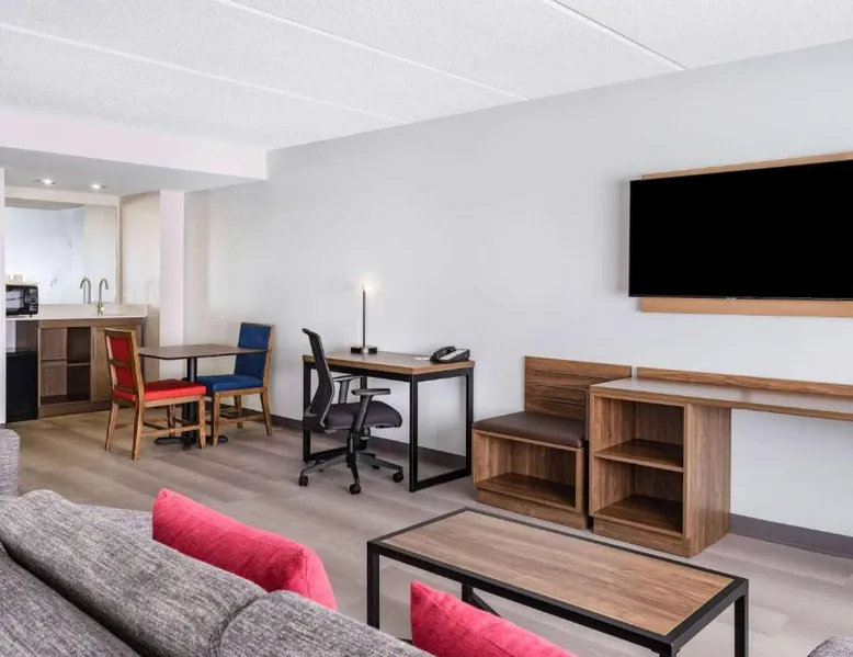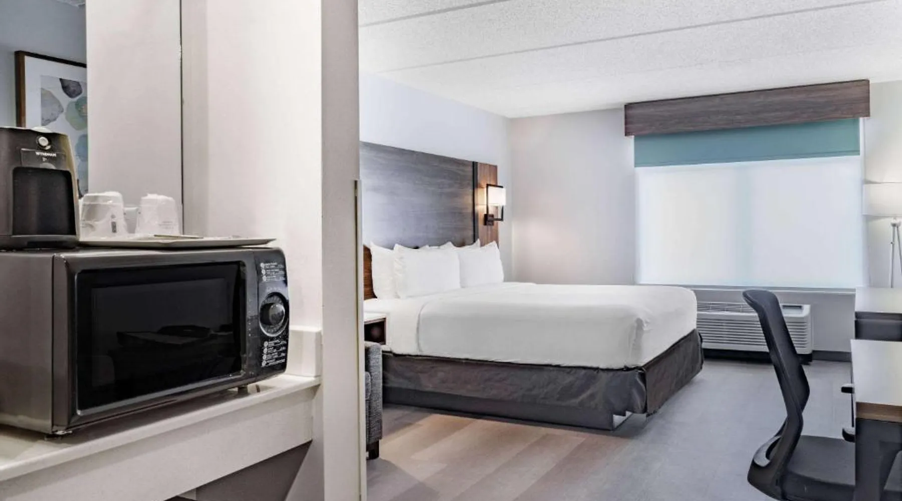 Boasting an outdoor pool, the Wingate by Wyndham Duluth is 5 mi from the Chattahoochee River and 16 minutes' drive from Mall of Georgia. Features include a hot American breakfast and free WiFi. A flat-screen TV with cable and HBO, microwave, and refrigerator are featured in each guest room of this Duluth hotel. Extras include a spacious private bathroom with free toiletries. At the on-site fitness center, guests can test their strength and endurance and then relax in the indoor hot tub. The Atlanta Duluth Wingate also features laundry facilities and free on-site parking. Lawrenceville and Georgia Gwinnett College are 9.3 mi from this Atlanta-Duluth Wingate by Wyndham. Atlanta is 24 mi southeast of the hotel. This family room features a microwave, small refrigerator, and flat-screen TV.