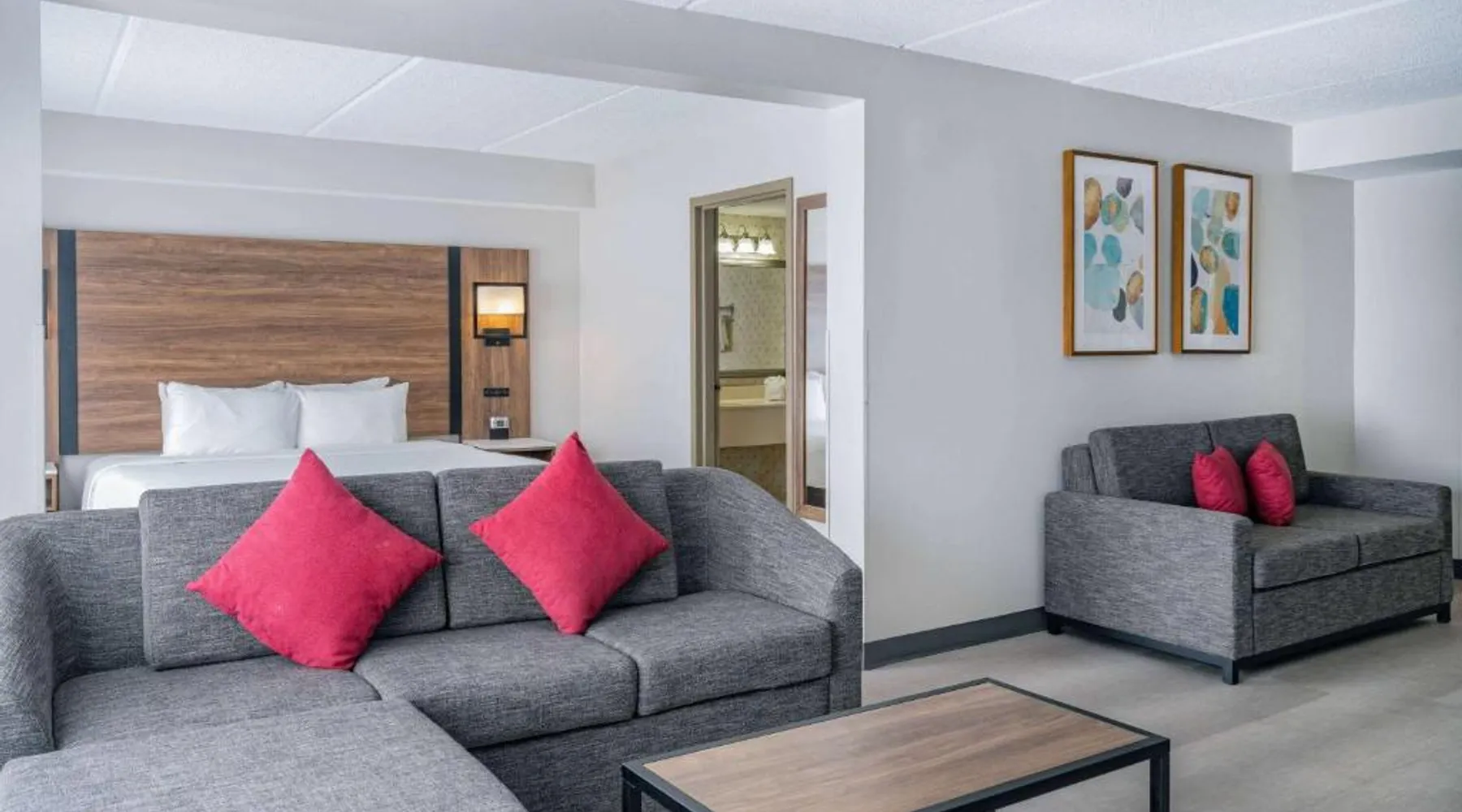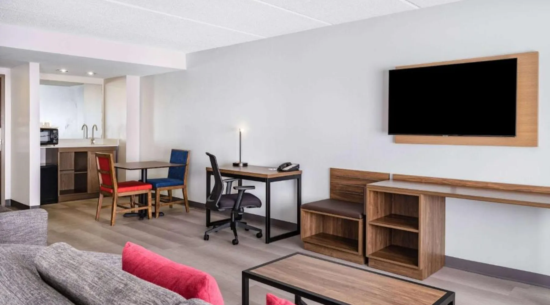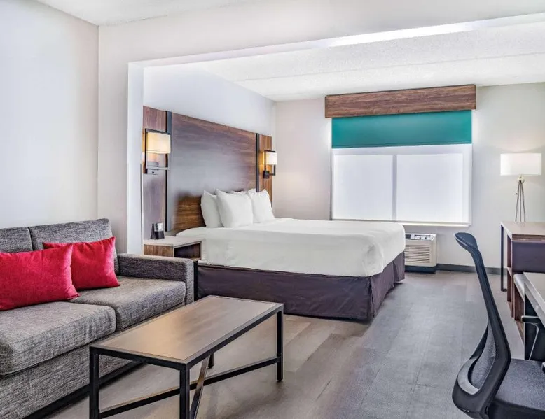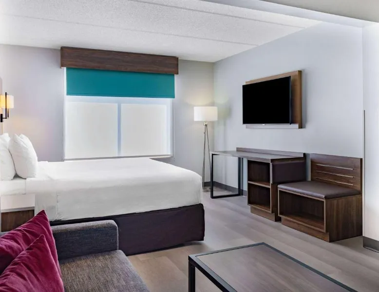 Boasting an outdoor pool, the Wingate by Wyndham Duluth is 5 mi from the Chattahoochee River and 16 minutes' drive from Mall of Georgia. Features include a hot American breakfast and free WiFi. A flat-screen TV with cable and HBO, microwave, and refrigerator are featured in each guest room of this Duluth hotel. Extras include a spacious private bathroom with free toiletries. At the on-site fitness center, guests can test their strength and endurance and then relax in the indoor hot tub. The Atlanta Duluth Wingate also features laundry facilities and free on-site parking. Lawrenceville and Georgia Gwinnett College are 9.3 mi from this Atlanta-Duluth Wingate by Wyndham. Atlanta is 24 mi southeast of the hotel. This family room features a microwave, small refrigerator, and flat-screen TV.
