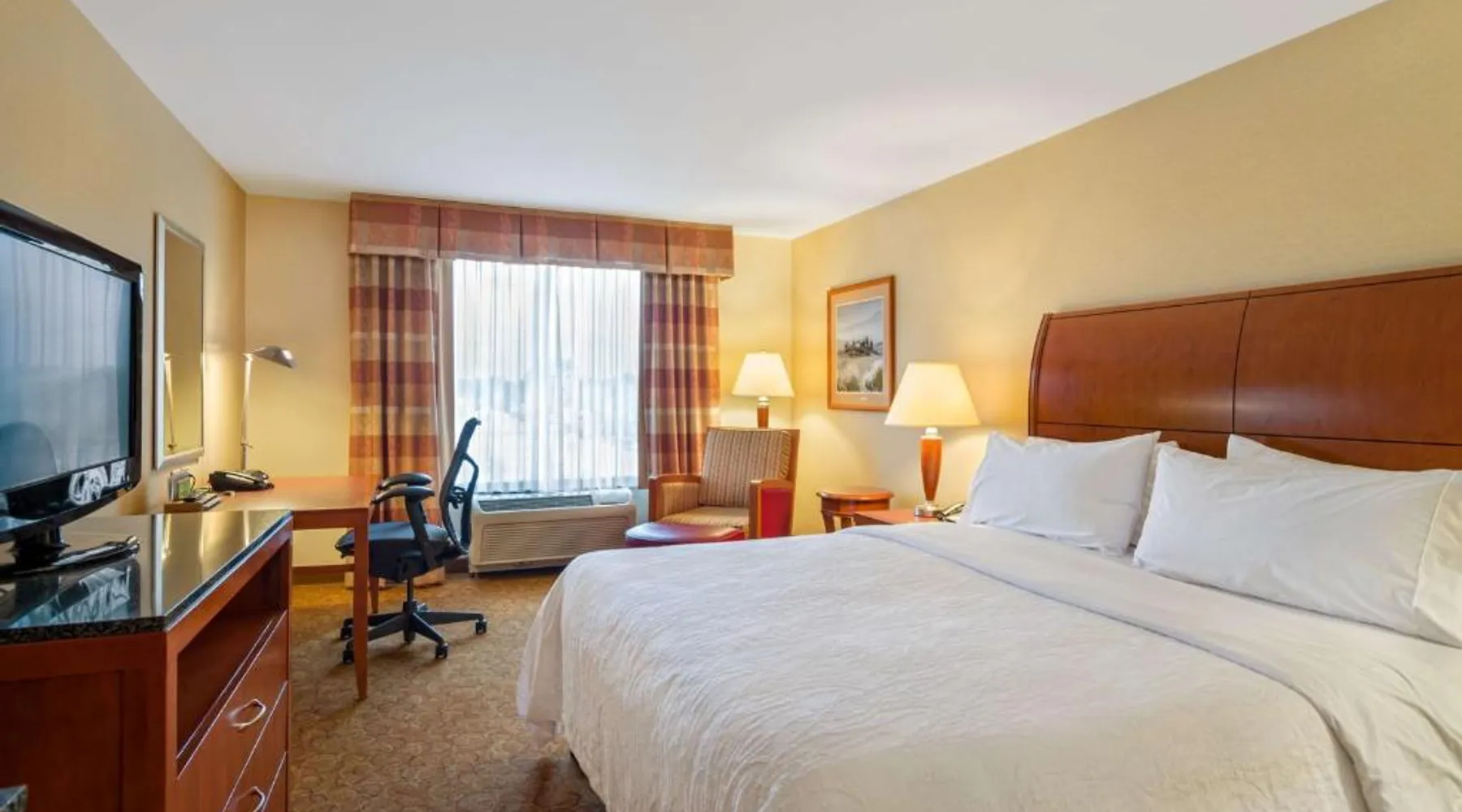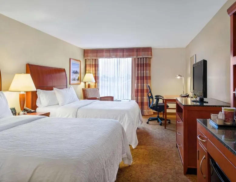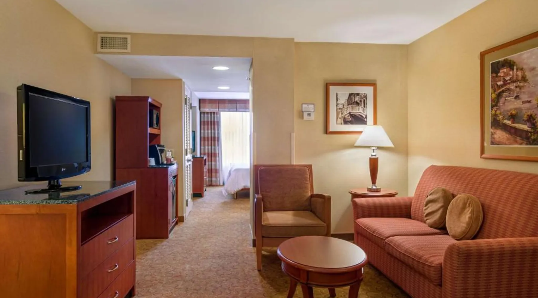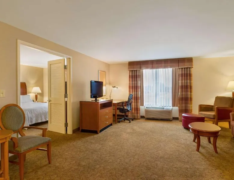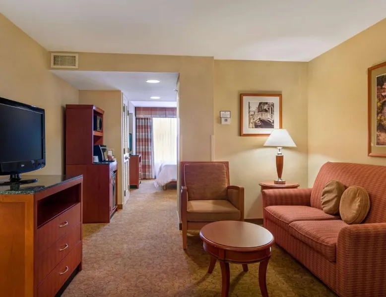 Comfortable Accommodations: Hilton Garden Inn Cleveland East / Mayfield Village in Mayfield offers family rooms with air-conditioning, free WiFi, and modern amenities. Each room includes a work desk, TV, and complimentary toiletries. Dining and Leisure: Guests can enjoy American cuisine at the on-site restaurant, unwind at the bar, and stay active in the fitness center or indoor swimming pool. Additional facilities include a hot tub, 24-hour front desk, and free on-site parking. Convenient Location: Located 3.7 mi from Stonewater and 1.6 mi from Highland Heights Community Park, the hotel is also close to attractions such as Squier'S Castle and Beachwood Place Mall. Guests appreciate the room cleanliness, attentive staff, and excellent value for money. This hearing accessible room includes a flat-screen TV, microwave and refrigerator.
