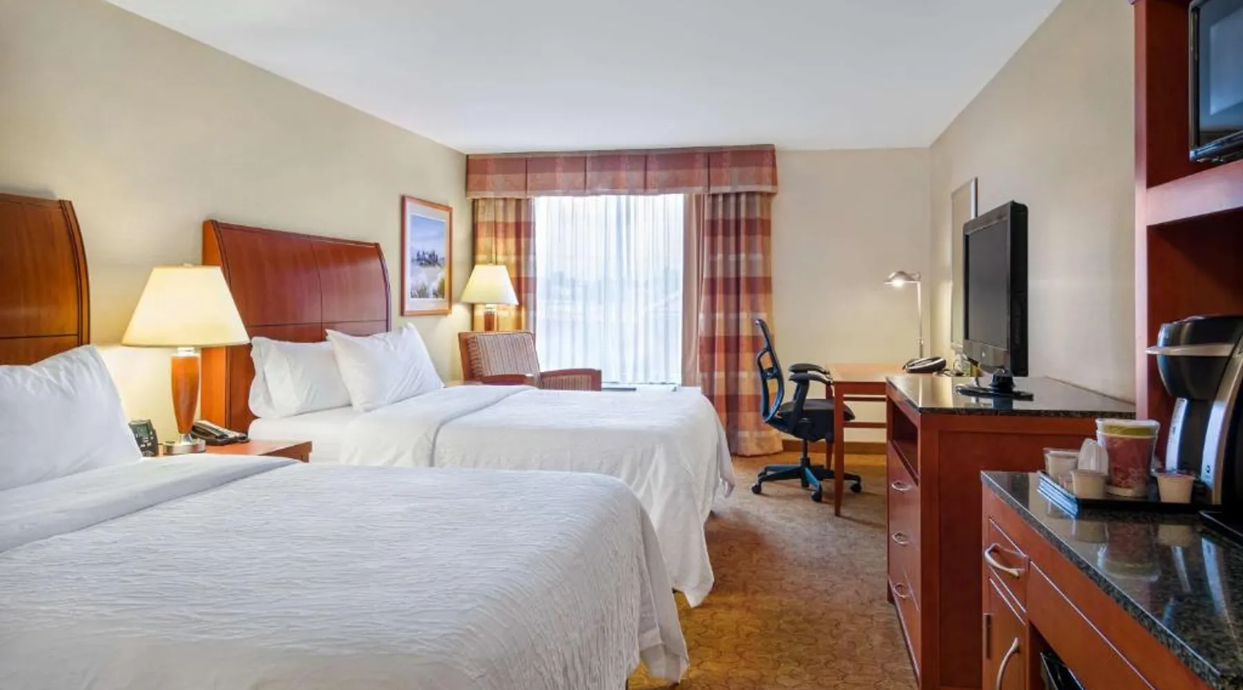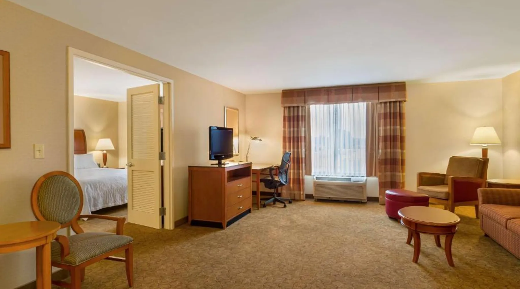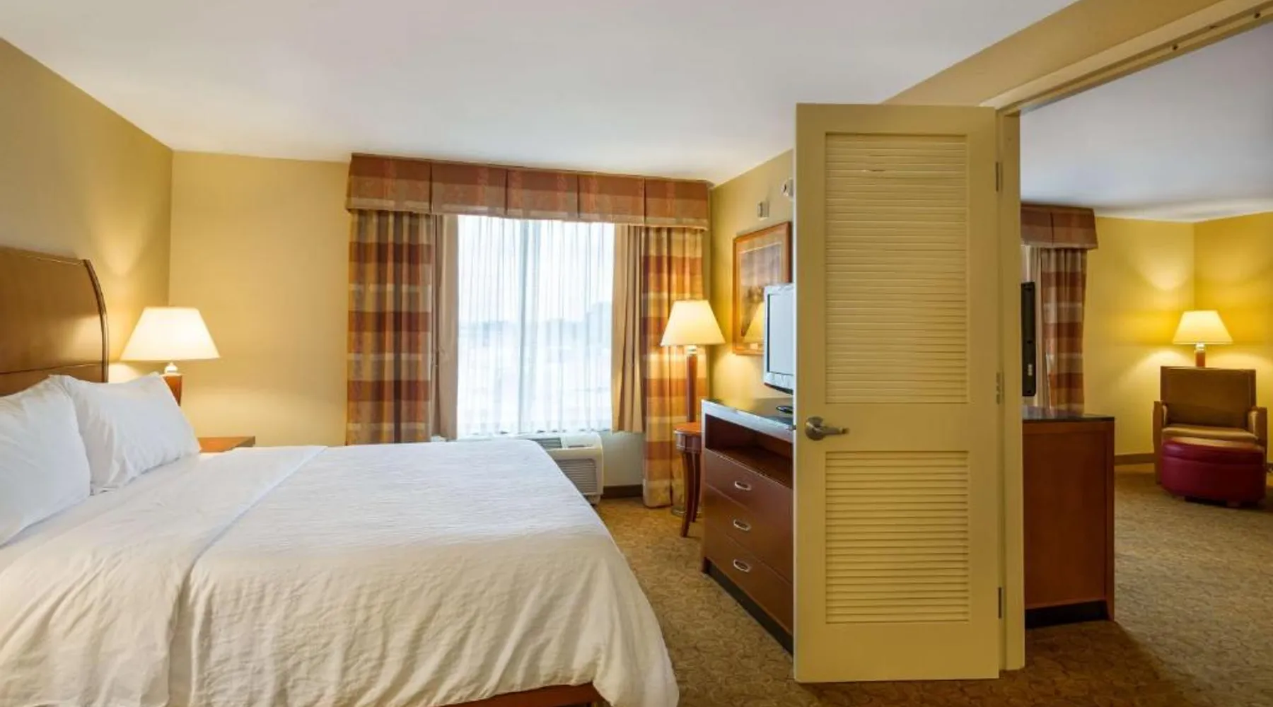 Comfortable Accommodations: Hilton Garden Inn Cleveland East / Mayfield Village in Mayfield offers family rooms with air-conditioning, free WiFi, and modern amenities. Each room includes a work desk, TV, and complimentary toiletries. Dining and Leisure: Guests can enjoy American cuisine at the on-site restaurant, unwind at the bar, and stay active in the fitness center or indoor swimming pool. Additional facilities include a hot tub, 24-hour front desk, and free on-site parking. Convenient Location: Located 3.7 mi from Stonewater and 1.6 mi from Highland Heights Community Park, the hotel is also close to attractions such as Squier'S Castle and Beachwood Place Mall. Guests appreciate the room cleanliness, attentive staff, and excellent value for money. This hearing accessible room includes a flat-screen TV, microwave and refrigerator.