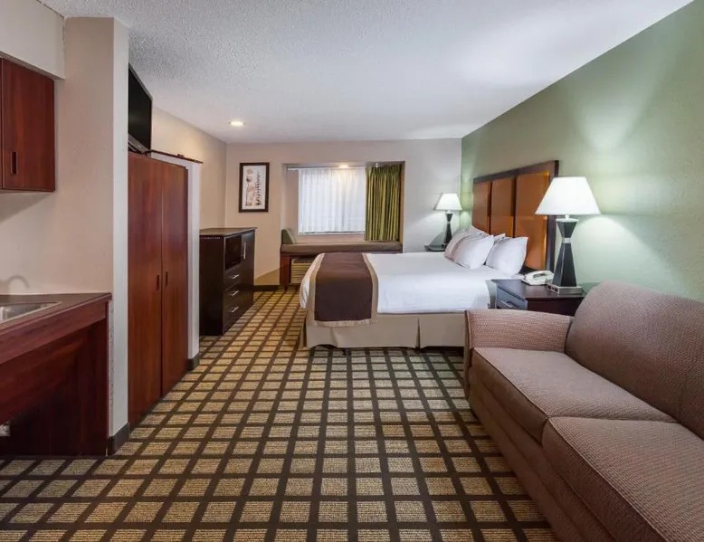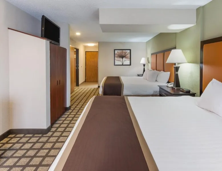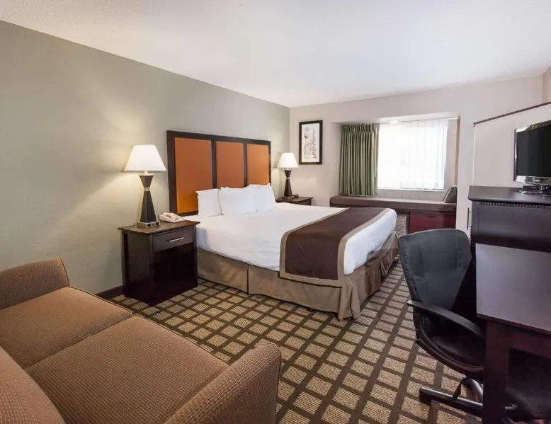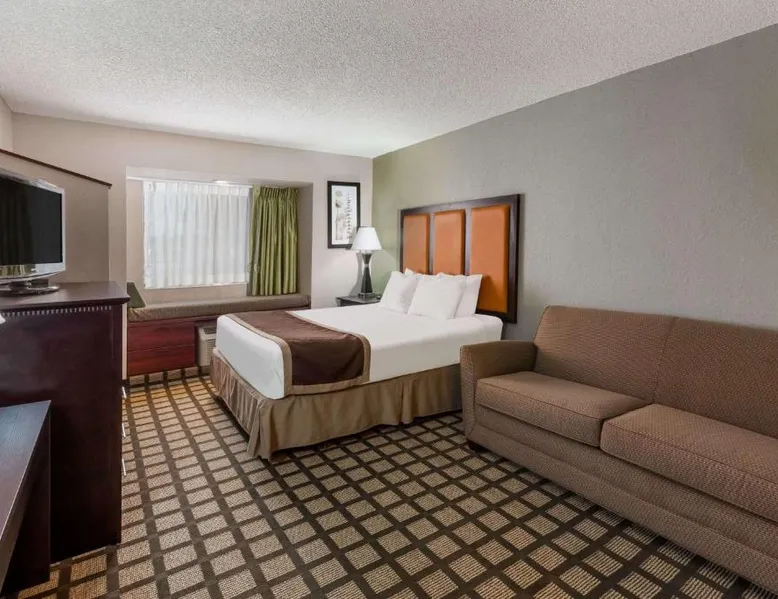 Located just off I-75 and less than 2 miles from Gaylord Regional Airport, this Baymont Inn features an elegant indoor pool facility. Free Wi-Fi is available throughout the hotel. The Baymont Inn & Suites Gaylord offers dark wood-furnished rooms with cable TV and a coffee maker. A work desk and ironing facilities are included. A breakfast buffet is served each morning at the Gaylord Baymont Inn and can be enjoyed with a free copy of the daily newspaper. The Baymont Inn Gaylord is a 5-minute walk from the Call of the Wild Museum and less than 1 mile from the Otsego County Sportsplex. This family room features a separate seating area with a sofa bed and a desk with an ergonomic chair.