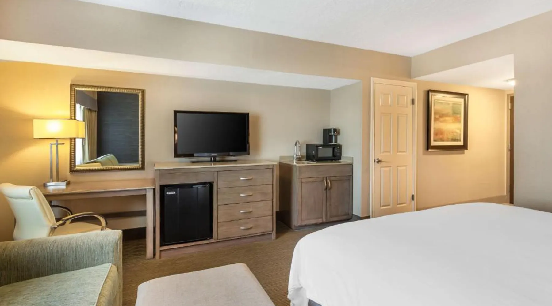 This Sandy, Utah hotel is just off I-15 and a 20-minute drive from downtown Salt Lake City. It features a daily buffet breakfast with waffles, eggs, potatoes and more. There is also a fitness center overlooking an indoor pool. Free Wi-Fi and coffee makers are available in all rooms at the Best Western Plus Cotton Tree Inn. The bright rooms feature large windows and wooden furniture, and cable TV is provided. The Cotton Tree Best Western features a relaxing hot tub. Further facilities include a well-equipped business center with a PC and copy and print services. The South Towne Center Mall is just across the street from this Best Western. The Living Planet Aquarium is a 4-minute drive away. The hotel's 24-hour reception staff can provide information on local attractions. The double room features air conditioning and a tea and coffee maker. The unit has 1 bed.