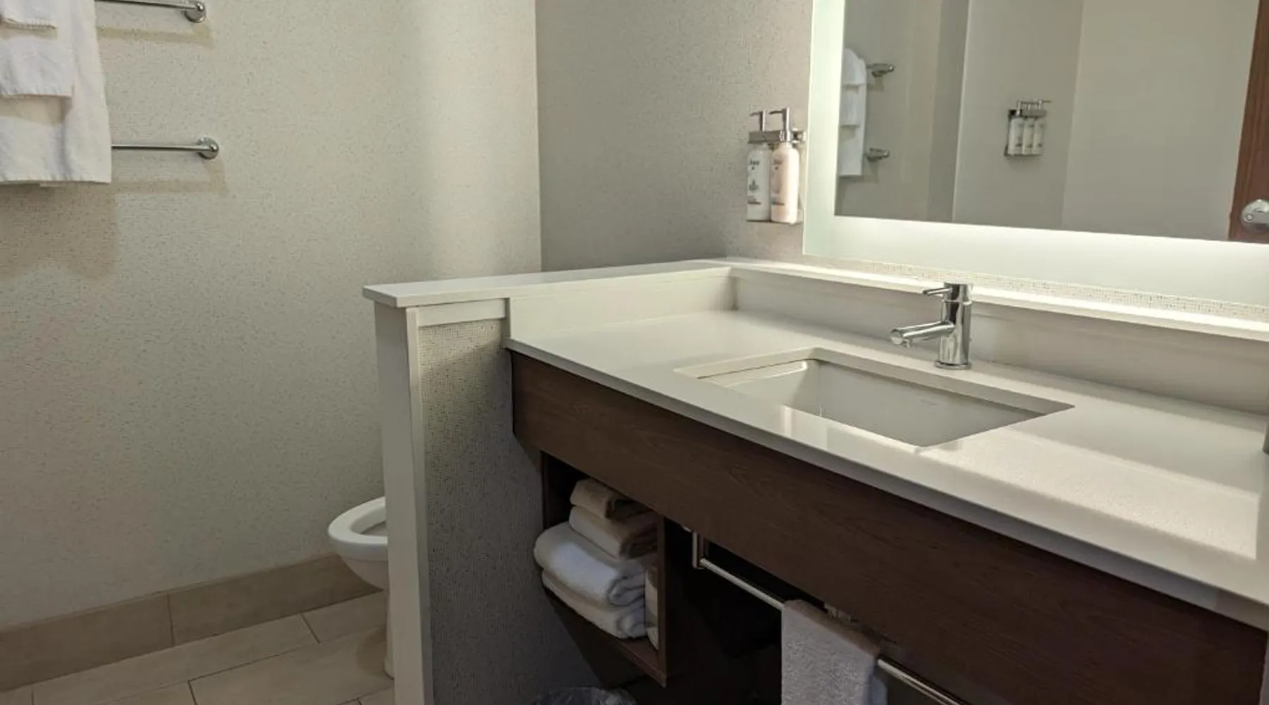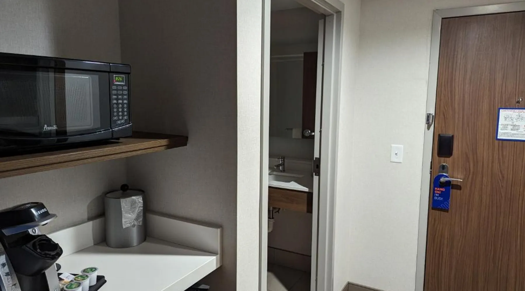 Comfortable Accommodations: Holiday Inn Express - Lexington East - Winchester by IHG in Winchester offers rooms with air-conditioning, private bathrooms, and free WiFi. Each room includes a tea and coffee maker, hypoallergenic bedding, and a work desk. Facilities and Services: Guests can enjoy a fitness center, indoor swimming pool, and a lounge. Additional amenities include a minimarket, 24-hour front desk, housekeeping service, and express check-in and check-out. Free on-site parking is available. Dining and Location: A buffet breakfast is served daily. The hotel is 25 mi from Blue Grass Airport and near attractions such as Fort Boonesborough State Park (9.9 mi) and Lexington Convention Center (19 mi). Guests appreciate the room cleanliness, attentive staff, and quality breakfast. The spacious double room features air conditioning, a tea and coffee maker, as well as a private bathroom boasting a walk-in shower and a hairdryer. The double room has carpeted floors, a seating area with a flat-screen TV with cable channels, a wardrobe, a safe deposit box, as well as heating. The unit has 1 bed.