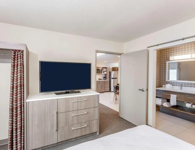 Comfortable Accommodations: Rooms feature air-conditioning, kitchenette, tea and coffee maker, hairdryer, sofa bed, refrigerator, work desk, seating area, free toiletries, microwave, dishwasher, shower, TV, kitchenware, and toaster. Guests appreciate the room cleanliness, size, and comfort. Exceptional Facilities: The hotel offers a fitness center, indoor swimming pool, and free WiFi in public areas. Additional amenities include a lounge, outdoor fireplace, fitness room, elevator, 24-hour front desk, concierge service, business area, outdoor seating area, bicycle parking, and barbecue facilities. Prime Location: Located in Indianapolis, the hotel is 16 mi from Indianapolis International Airport. Nearby attractions include Indianapolis Motor Speedway (9.9 mi), Lucas Oil Stadium (12 mi), Indianapolis Museum of Art (6.8 mi), and Indianapolis Zoo (12 mi). Meals can be prepared in the well-fitted kitchenette, which comes with a refrigerator, a dishwasher, kitchenware and a microwave. The air-conditioned studio provides a flat-screen TV with cable channels, a tea and coffee maker, a seating area and heating. The unit offers 2 beds.