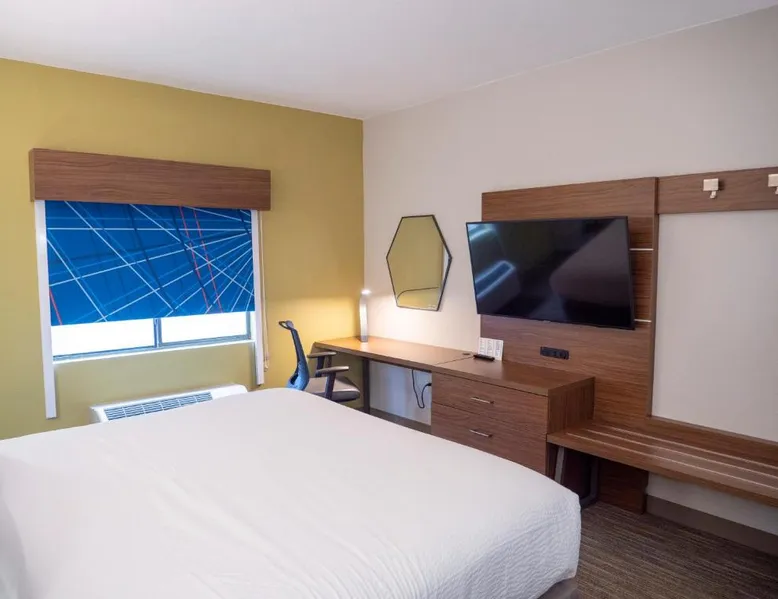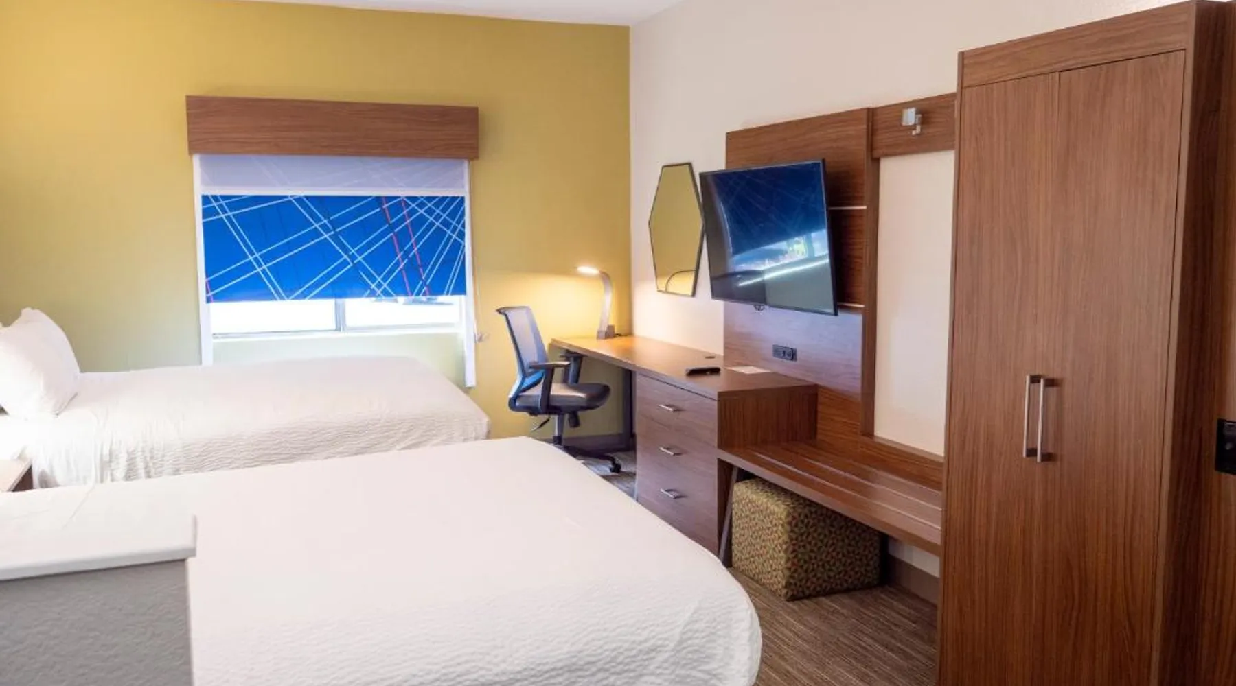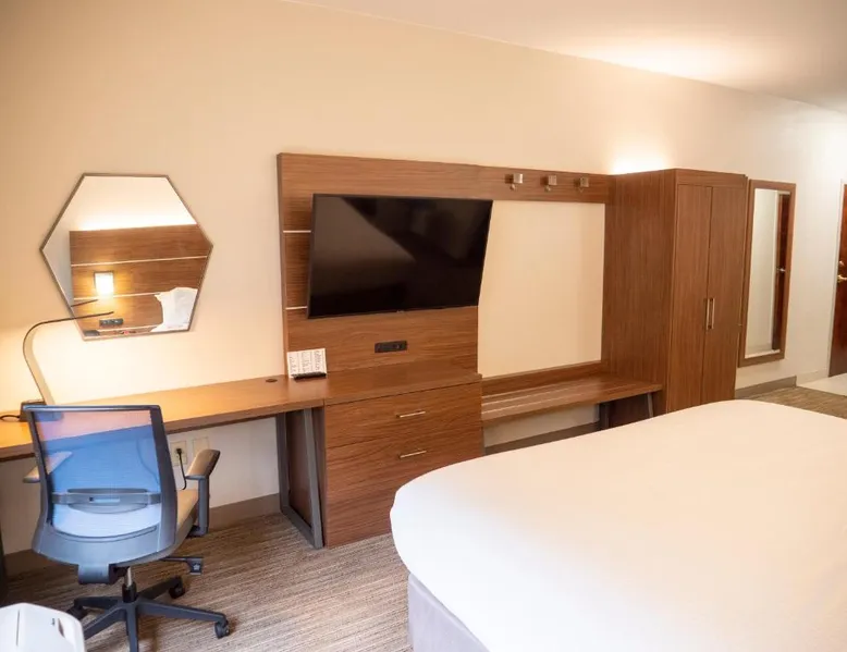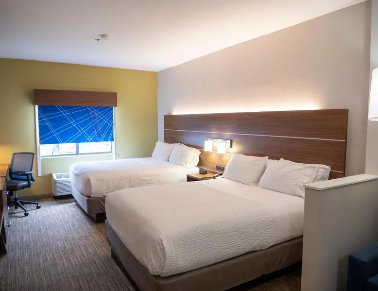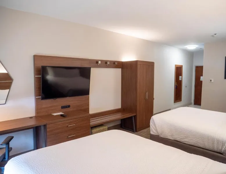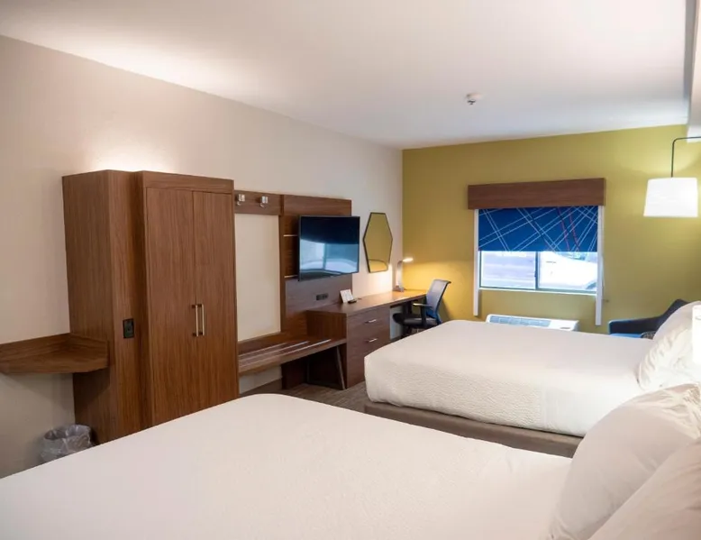 Comfortable Accommodations: Holiday Inn Express & Suites Greenville Airport i85 by IHG in Greer offers family rooms with air-conditioning, free WiFi, and modern amenities including a work desk, refrigerator, and TV. Exceptional Facilities: Guests enjoy a bar, indoor swimming pool, fitness room, and free on-site parking. Additional services include a 24-hour front desk, housekeeping, room service, and free WiFi throughout the property. Convenient Location: Located 4.3 mi from Greenville-Spartanburg International Airport, the hotel is near attractions such as Frankie S Fun Park (5 mi) and Roper Mountain Science Center (5.6 mi). Free airport shuttle service enhances the stay. Guest Satisfaction: Highly rated for its airport shuttle, convenient location, and room cleanliness, the hotel ensures a pleasant and comfortable experience for all visitors. Bed type preference cannot be guaranteed as it will be allocated upon arrival based on availability.