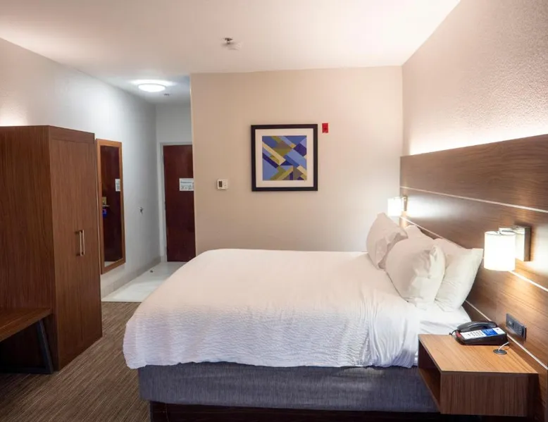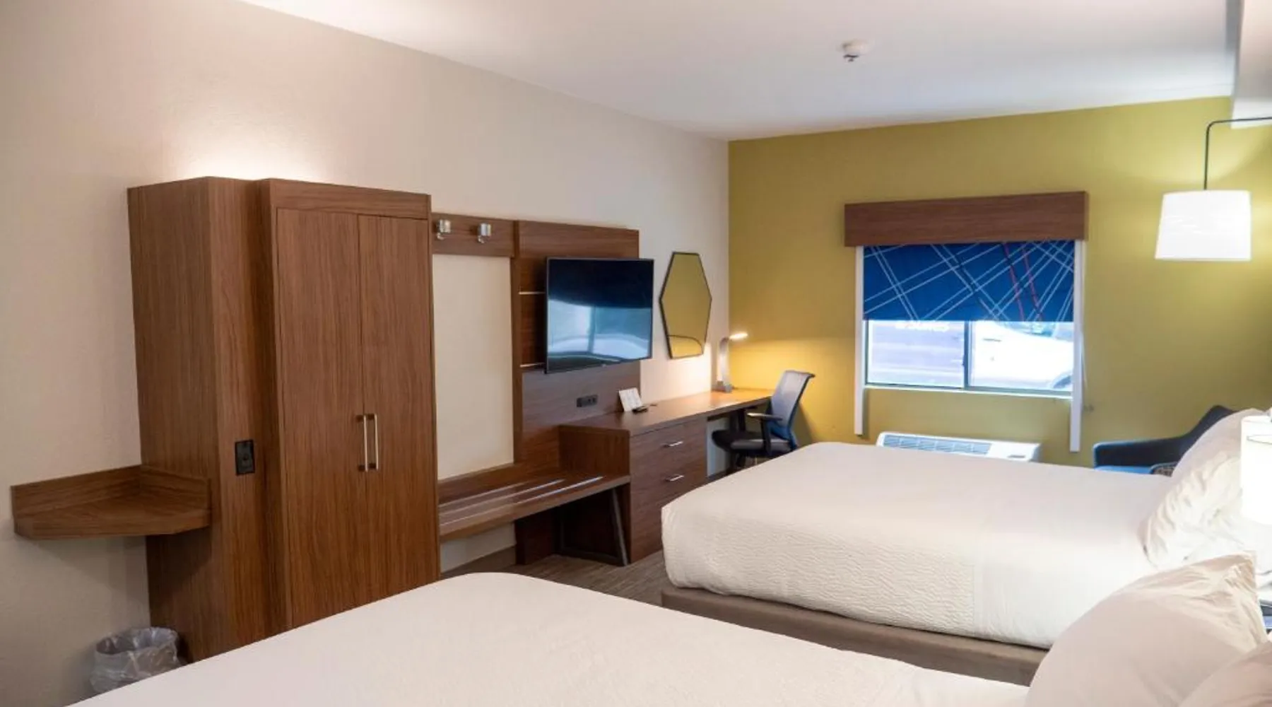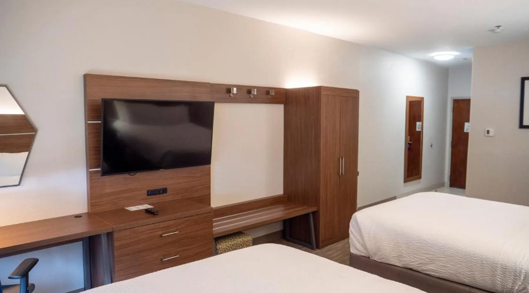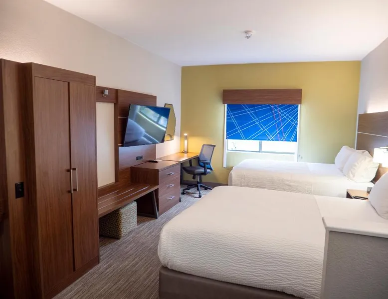 Comfortable Accommodations: Holiday Inn Express & Suites Greenville Airport i85 by IHG in Greer offers family rooms with air-conditioning, free WiFi, and modern amenities including a work desk, refrigerator, and TV. Exceptional Facilities: Guests enjoy a bar, indoor swimming pool, fitness room, and free on-site parking. Additional services include a 24-hour front desk, housekeeping, room service, and free WiFi throughout the property. Convenient Location: Located 4.3 mi from Greenville-Spartanburg International Airport, the hotel is near attractions such as Frankie S Fun Park (5 mi) and Roper Mountain Science Center (5.6 mi). Free airport shuttle service enhances the stay. Guest Satisfaction: Highly rated for its airport shuttle, convenient location, and room cleanliness, the hotel ensures a pleasant and comfortable experience for all visitors. Bed type preference cannot be guaranteed as it will be allocated upon arrival based on availability.