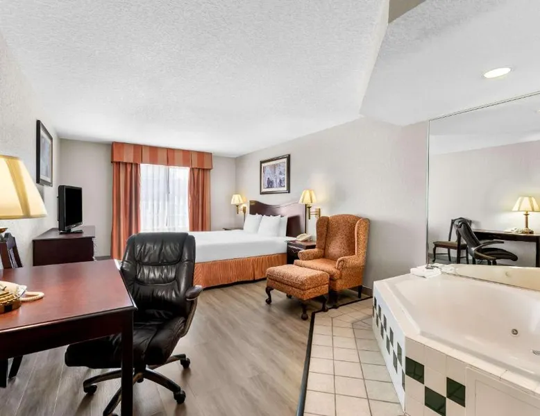 Comfortable Accommodations: Country Inn & Suites by Radisson in Hot Springs offers family rooms with air-conditioning, private bathrooms, and free WiFi. Each room includes a work desk, TV, and parquet floors, ensuring a pleasant stay. Leisure Facilities: Guests can enjoy a fitness center, indoor swimming pool, and hot tub. Additional amenities include a lounge, fitness room, and outdoor seating area, providing ample opportunities for relaxation and recreation. Dining Options: A continental buffet breakfast is served daily, featuring fresh pastries, fruits, and juice. The on-site restaurant offers a variety of dining options, catering to diverse preferences. Convenient Location: Located 3.1 mi from Hot Springs Memorial Field Airport, the hotel is near attractions such as Magic Springs Crystal Falls (6.8 mi) and Ponce De Leon Golf Course (22 mi). Guests appreciate the bed comfort, room cleanliness, and convenient location. The spacious double room provides air conditioning, a tea and coffee maker, as well as a private bathroom featuring a walk-in shower and a bath. The double room features a wardrobe, parquet floors, heating and a flat-screen TV with cable channels. The unit offers 1 bed.