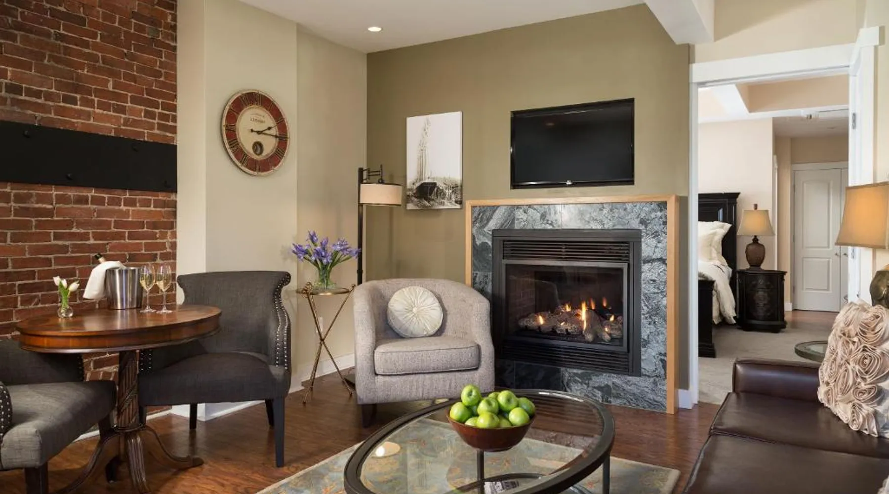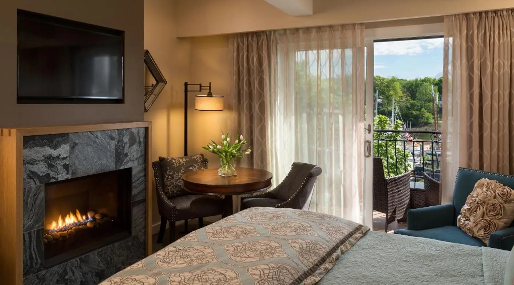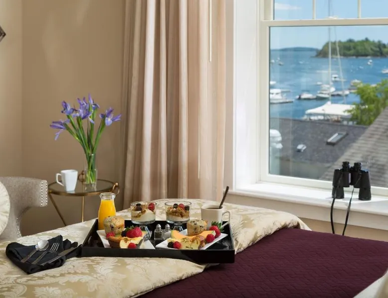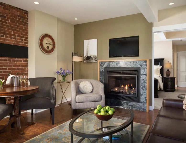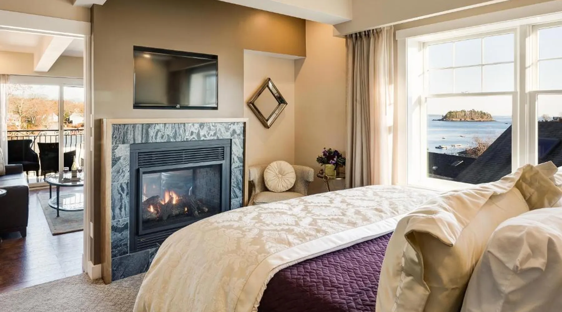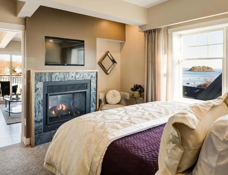 Comfortable Accommodations: 16 Bay View in Camden offers family rooms with private bathrooms, air-conditioning, and sea or city views. Each room includes a balcony, bathrobes, and free WiFi. Exceptional Facilities: Guests can relax on the sun terrace or enjoy a drink at the bar. The hotel provides a lounge, elevator, 24-hour front desk, concierge service, and free WiFi throughout. Delicious Breakfast: A variety of breakfast options are available, including continental, American, buffet, vegetarian, vegan, and gluten-free. Fresh pastries, warm dishes, juice, and fruits enhance the morning experience. Prime Location: Located 11 mi from Knox County Regional Airport, the hotel is near attractions such as Laite Memorial Beach (7-minute walk), Mount Battie (0.9 mi), and Camden Harbor Park and Amphitheater (984 feet). Highly rated for bathroom comfort and convenient location. The fireplace is a top feature of this suite. This suite comes with 1 living room, 1 separate bedroom and 1 bathroom with a walk-in shower and free toiletries. The air-conditioned suite features a flat-screen TV, a mini-bar, a tea and coffee maker, a seating area as well as city views. The unit has 2 beds.