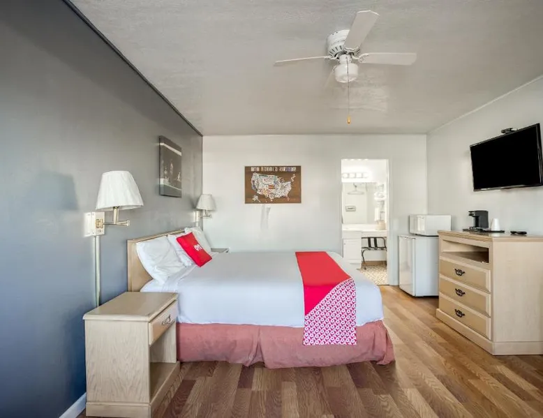 Comfortable Accommodations: OYO Hotel Heber Springs Lakeside in Heber Springs offers comfortable rooms with air-conditioning, private bathrooms, and free WiFi. Each room includes a tea and coffee maker, hairdryer, refrigerator, work desk, free toiletries, microwave, shower, wardrobe, and TV. Convenient Facilities: Guests benefit from a 24-hour front desk, free on-site private parking, and free toiletries. Additional amenities include a kitchenette and balcony, providing a relaxing space. Accessible Location: Located 66 mi from Clinton National Airport, the hotel offers easy access to local attractions. The spacious double room features air conditioning, a tea and coffee maker, as well as a private bathroom boasting a shower and a hairdryer. The unit has 1 bed.