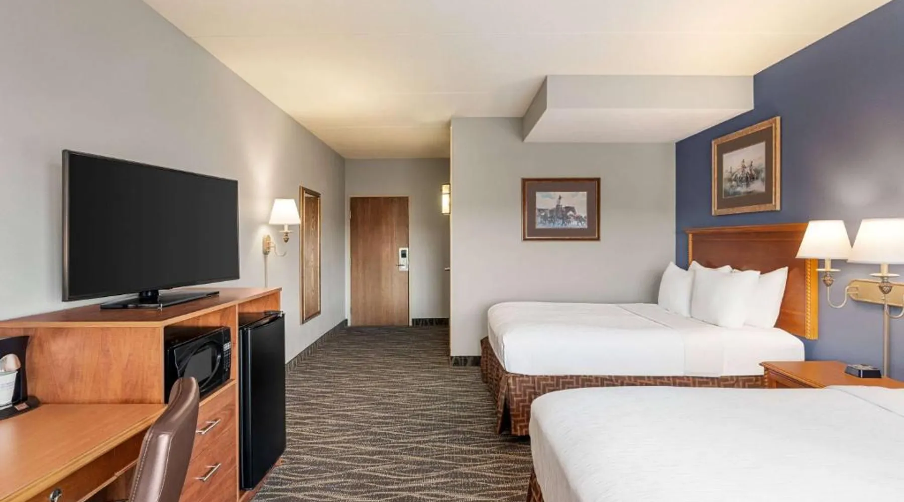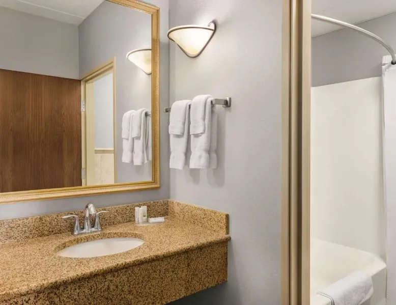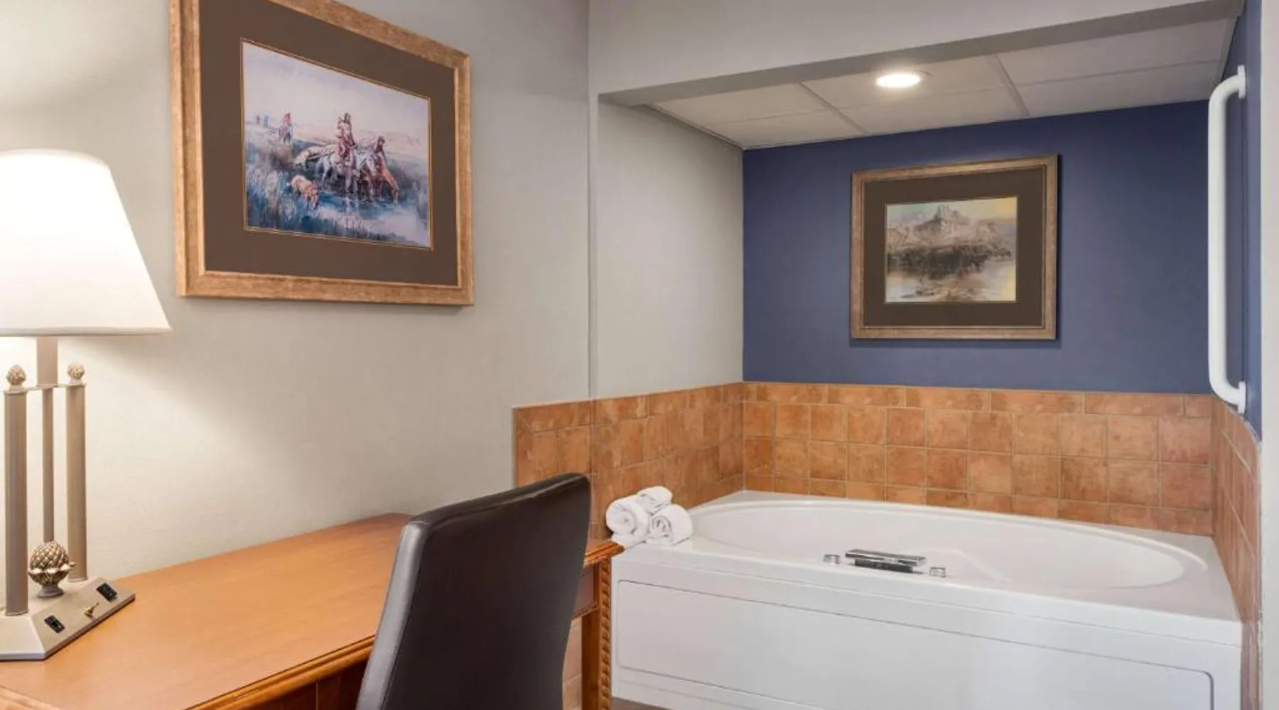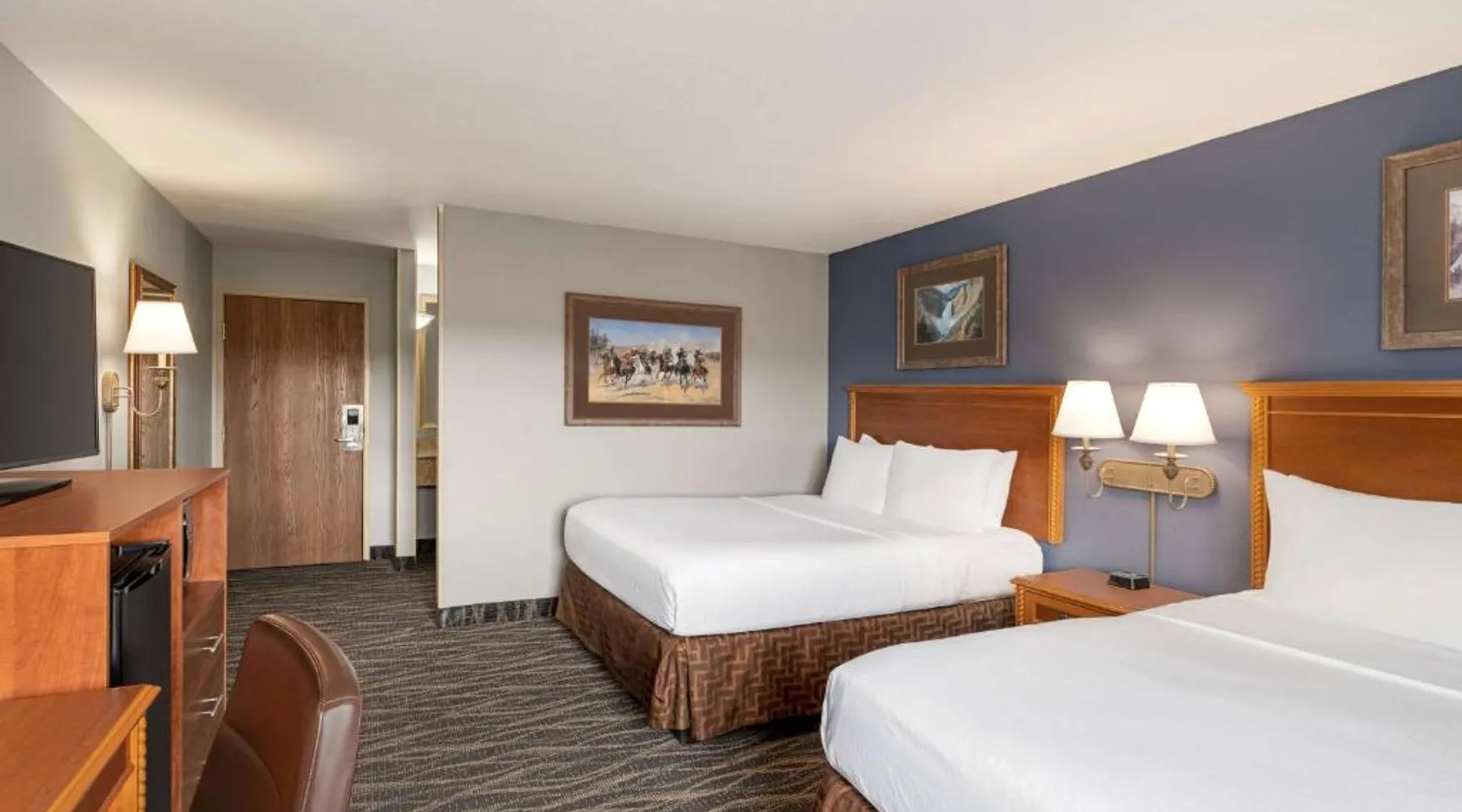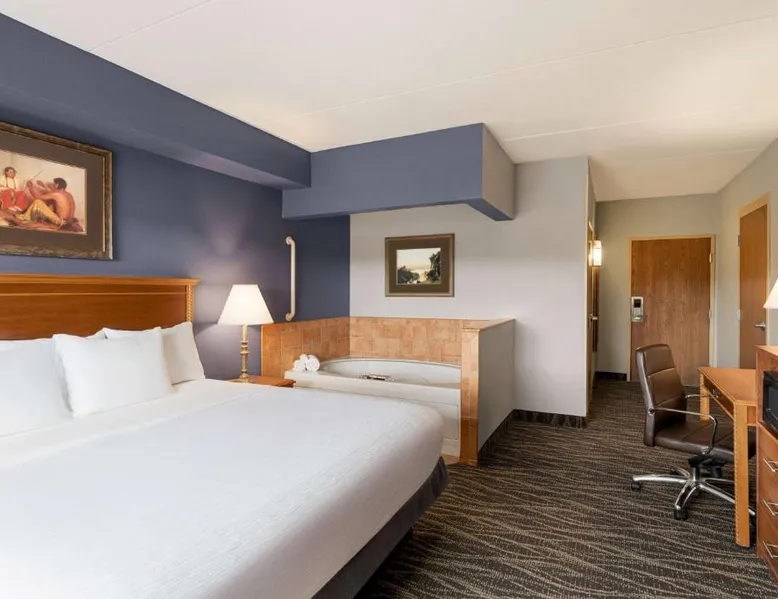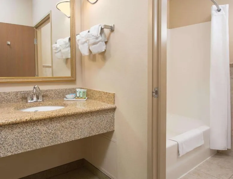 Located off Interstate 80, this eco-friendly Laramie hotel features an indoor pool and offers rooms with free Wi-Fi and a cable TV. The University of Wyoming is 2.9 miles away. Coffee-making facilities are provided in all rooms at the AmericInn Lodge and Suites. Each room includes a work desk. Free access to the relaxing hot tub is offered to all guests, and a large stone fireplace is featured in the lobby. A business center is located on site. A continental breakfast is served each morning at the Laramie AmericInn Lodge and Suites. Gluten-free, soy, and organic items are also included. Jacoby Golf Course is just a 5-minute drive from this hotel. The Wyoming Territorial Prison Museum is 4.5 miles away. This double room features a microwave, cable TV and air conditioning. This room is handicap accessible, which includes a door bell, a walk-in shower with a seat, a hand-held shower head and grab bars. Additional grab bars are located near toilet.