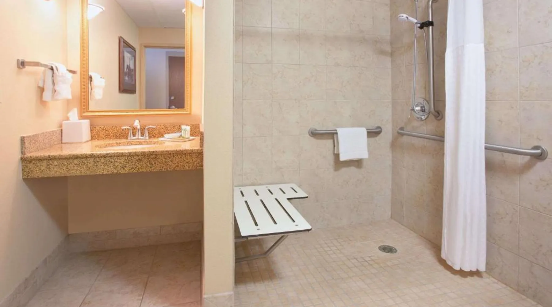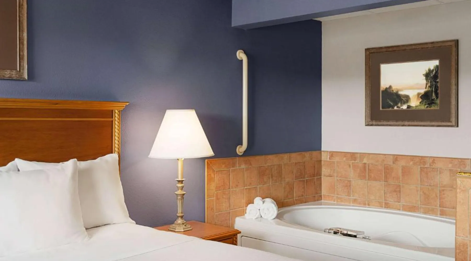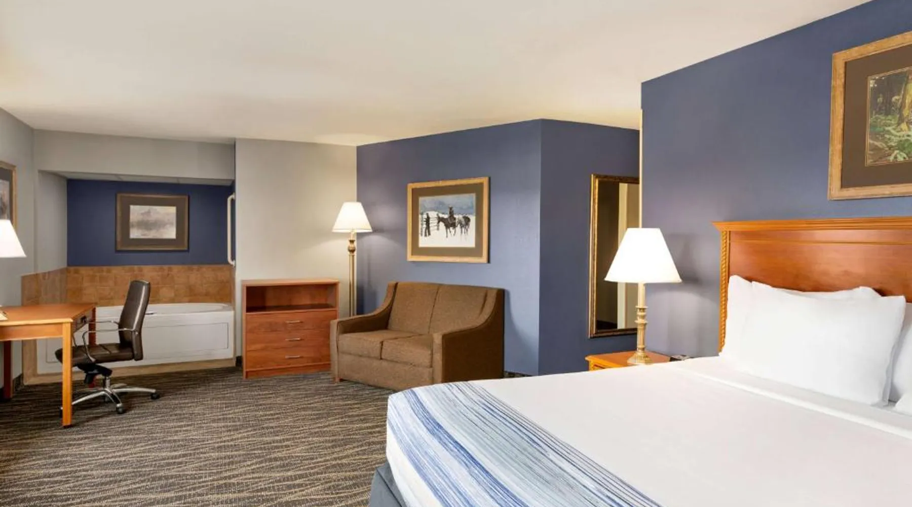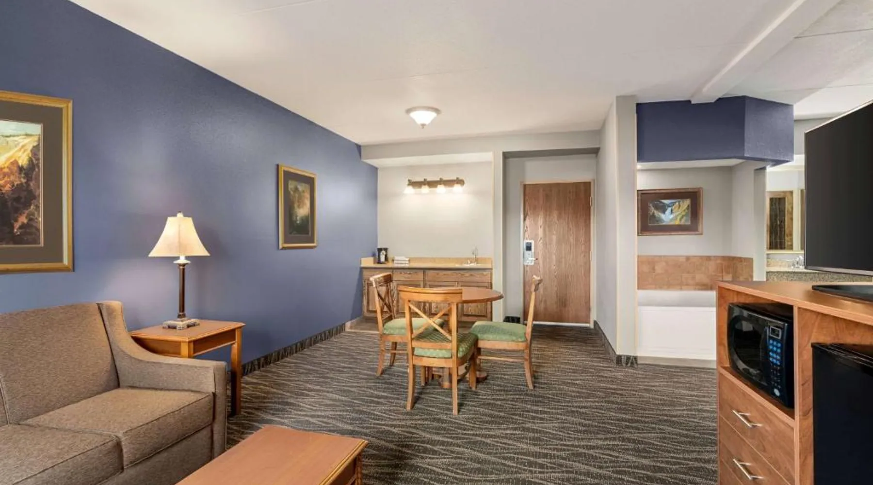 Located off Interstate 80, this eco-friendly Laramie hotel features an indoor pool and offers rooms with free Wi-Fi and a cable TV. The University of Wyoming is 2.9 miles away. Coffee-making facilities are provided in all rooms at the AmericInn Lodge and Suites. Each room includes a work desk. Free access to the relaxing hot tub is offered to all guests, and a large stone fireplace is featured in the lobby. A business center is located on site. A continental breakfast is served each morning at the Laramie AmericInn Lodge and Suites. Gluten-free, soy, and organic items are also included. Jacoby Golf Course is just a 5-minute drive from this hotel. The Wyoming Territorial Prison Museum is 4.5 miles away. This double room features a microwave, cable TV and air conditioning. This room is handicap accessible, which includes a door bell, a walk-in shower with a seat, a hand-held shower head and grab bars. Additional grab bars are located near toilet.