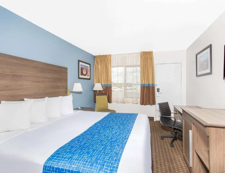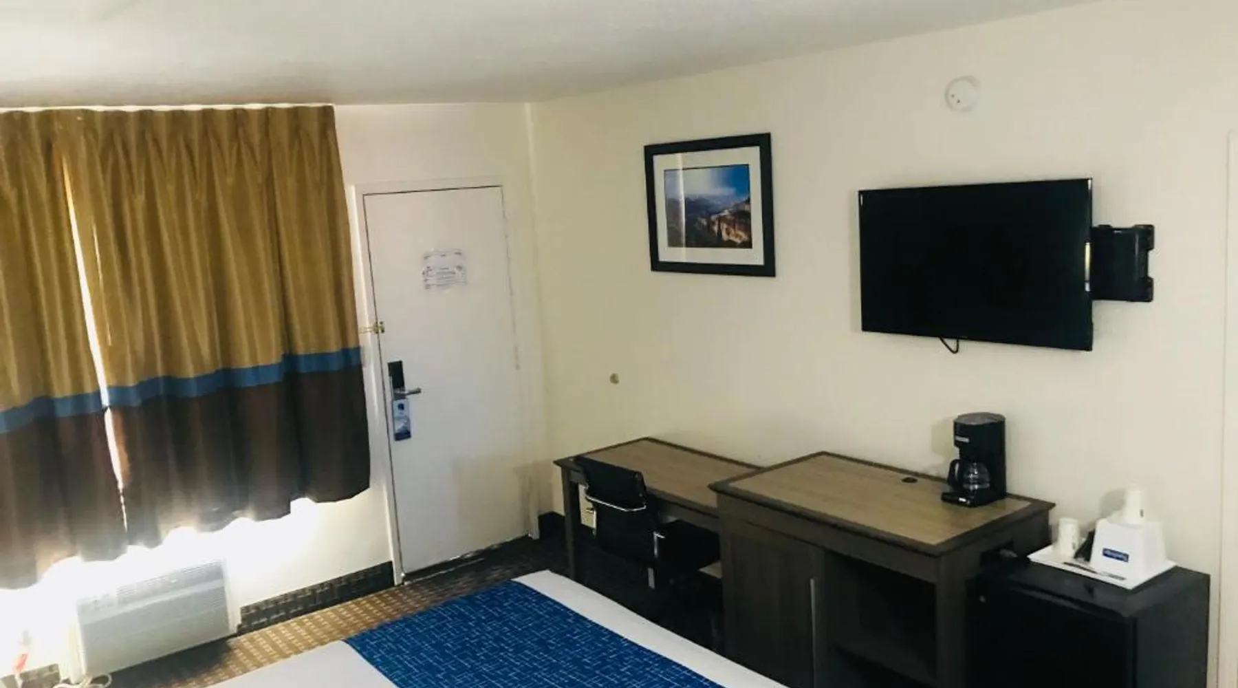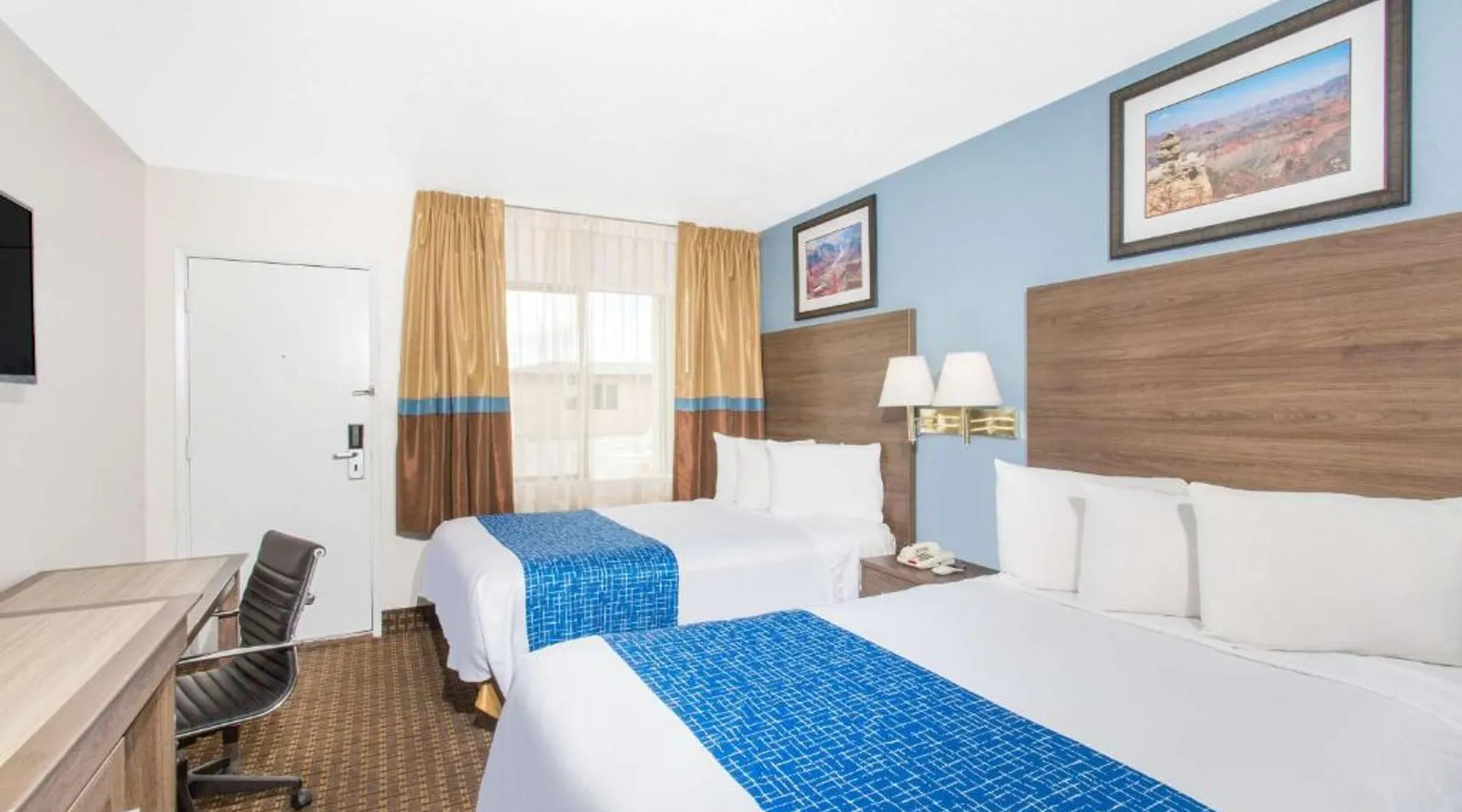 This Williams, Arizona hotel is located off Historic Route 66 and is 50 miles from Grand Canyon National Park. This hotel features an outdoor pool, indoor hot tub and free Wi-Fi in every room. Rooms at Travelodge by Wyndham Williams Grand Canyon are equipped with a coffee maker and refrigerator. The rooms also have ironing facilities and free weekday newspapers. Travelodge by Wyndham Williams Grand Canyon offers a daily continental breakfast. This hotel is pet-friendly and has a 24-hour front desk. Travelodge by Wyndham Williams Grand Canyon is within one mile of the Grand Canyon Railway Station. The hotel is within a 5-minute drive of the Kaibab National Forest. This air-conditioned double room is consisted of of a flat-screen TV with satellite channels, a private bathroom as well as a patio. The unit has 1 bed.