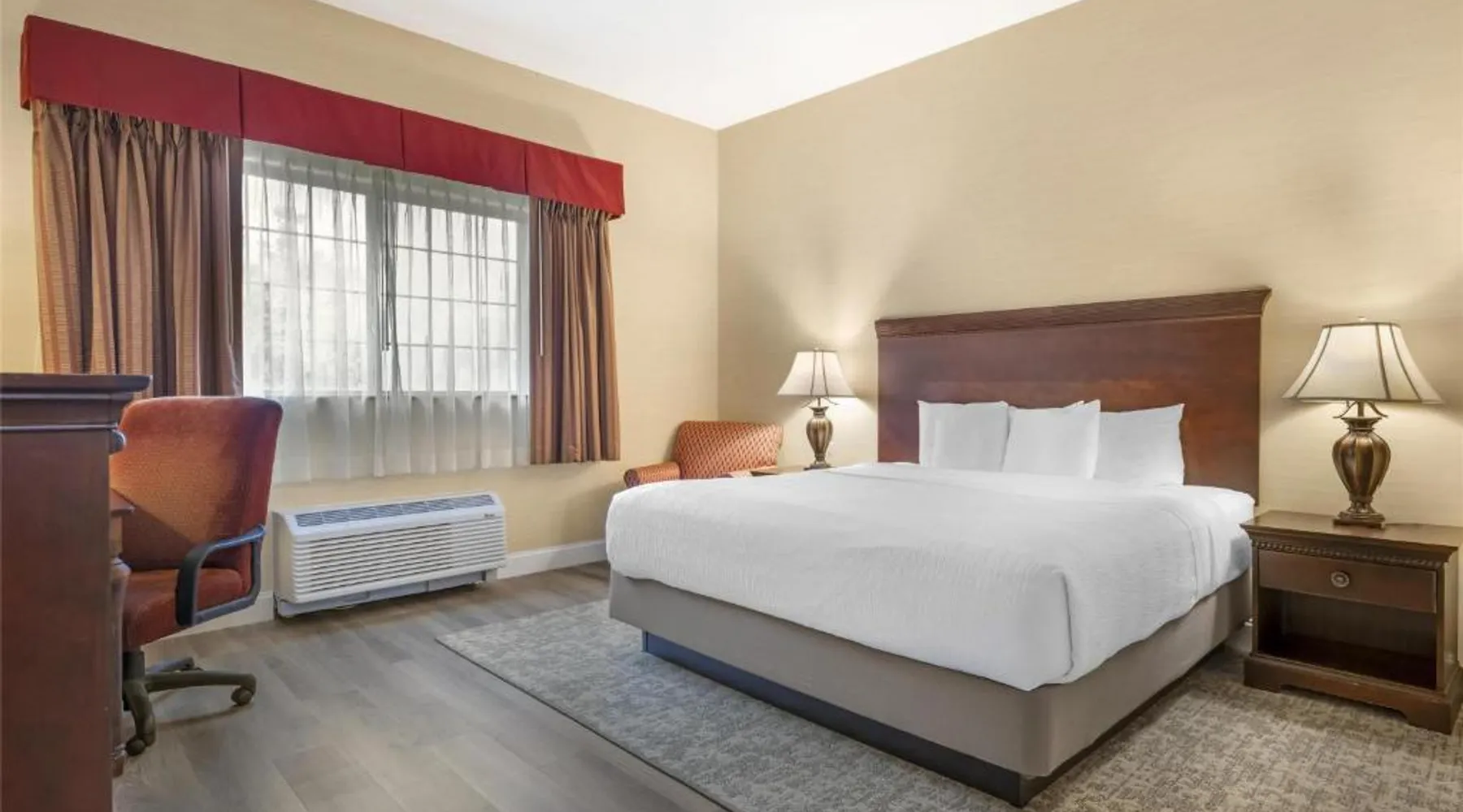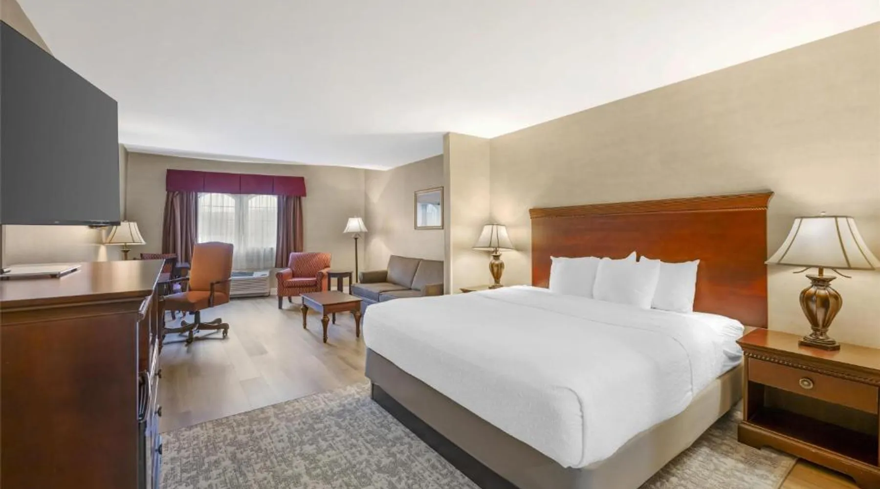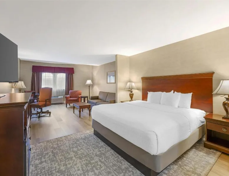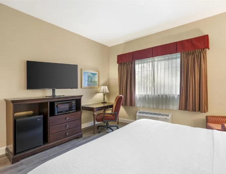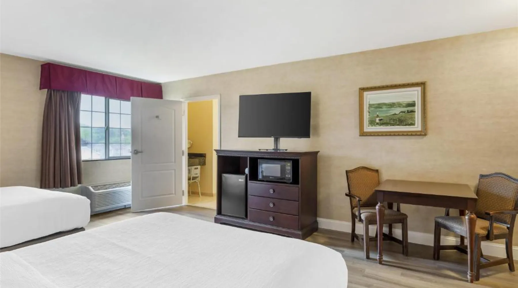 This hotel in Penn Yan, New York offers spacious rooms with free Wi-Fi and a cable TV. It features an indoor pool and is just 1.6 miles from Lakeside Country Club. Offering simple décor, all rooms at the Best Western PLUS Vineyard Inn and Suites include a microwave, refrigerator and coffee maker. A work desk is provided in every room. Guests can relax in the hotel’s jacuzzi or enjoy free access to the on-site fitness room. The business center offers a computer with free Wi-fi access. The Vineyard Inn Best Western PLUS offers a free breakfast buffet each morning with locally sourced items. Local winery tours are available through Keuka Lake Wine Trail, just 0.6 miles from the hotel. The historic Oliver House Museum is a 2-minute drive away. The quadruple room features a tea and coffee maker. The unit has 2 beds.