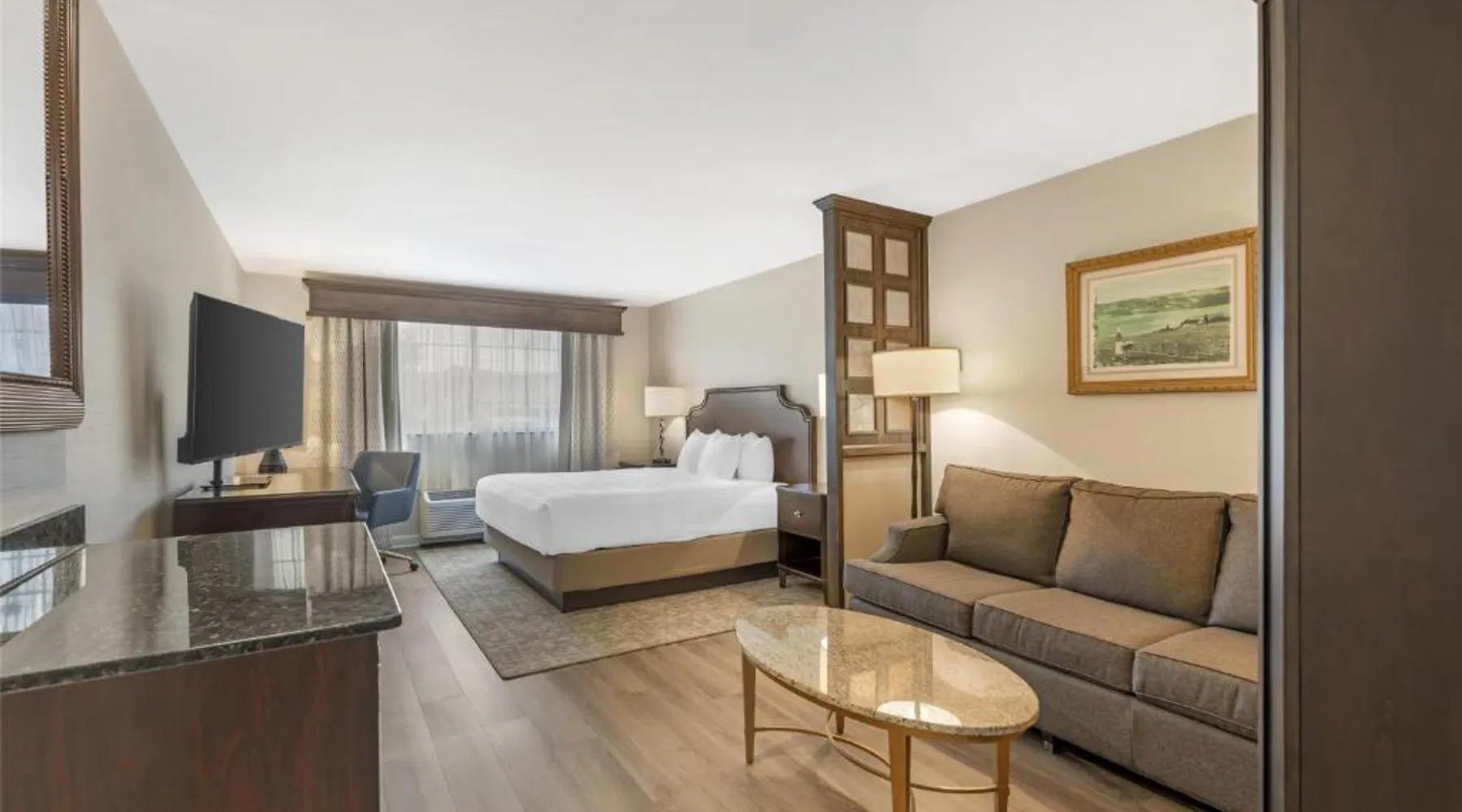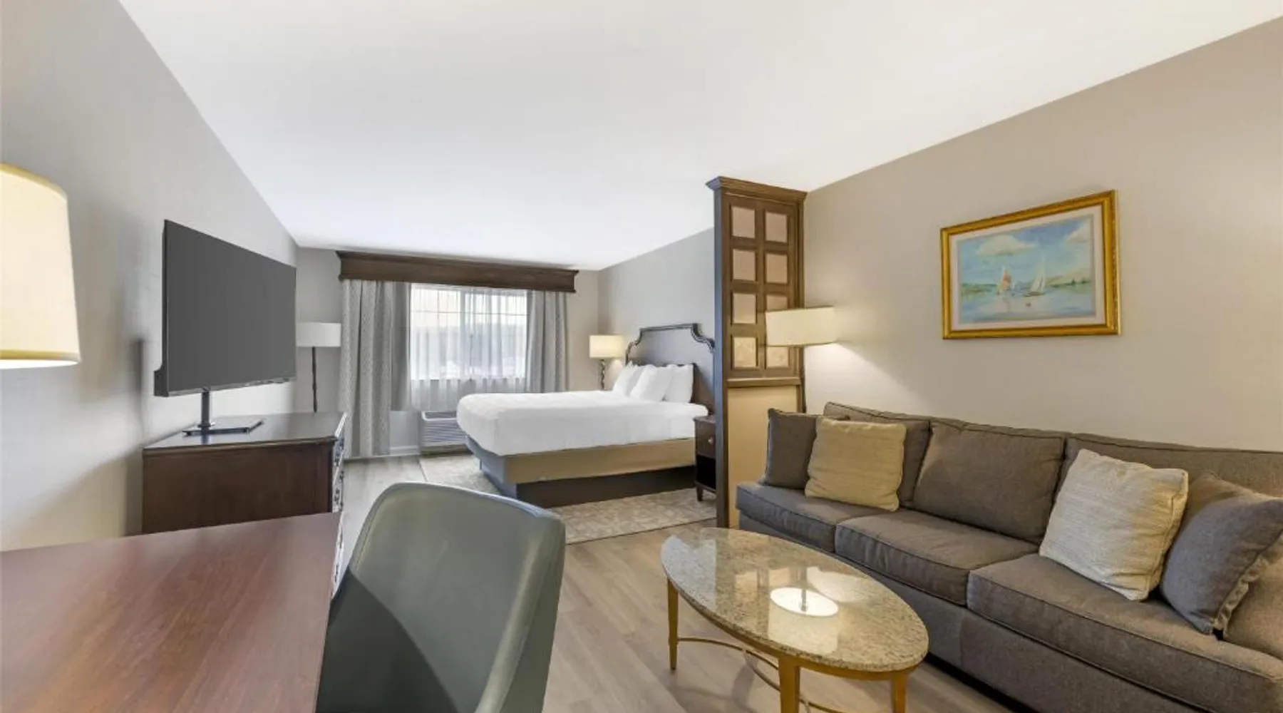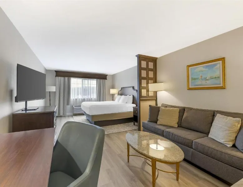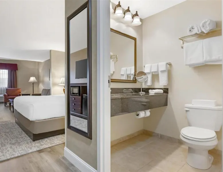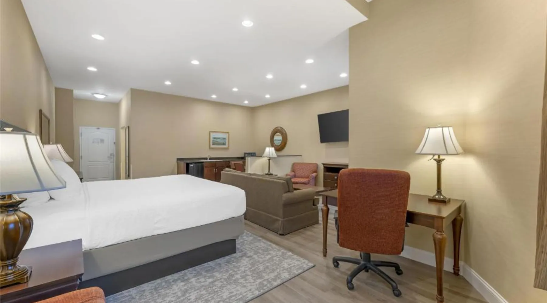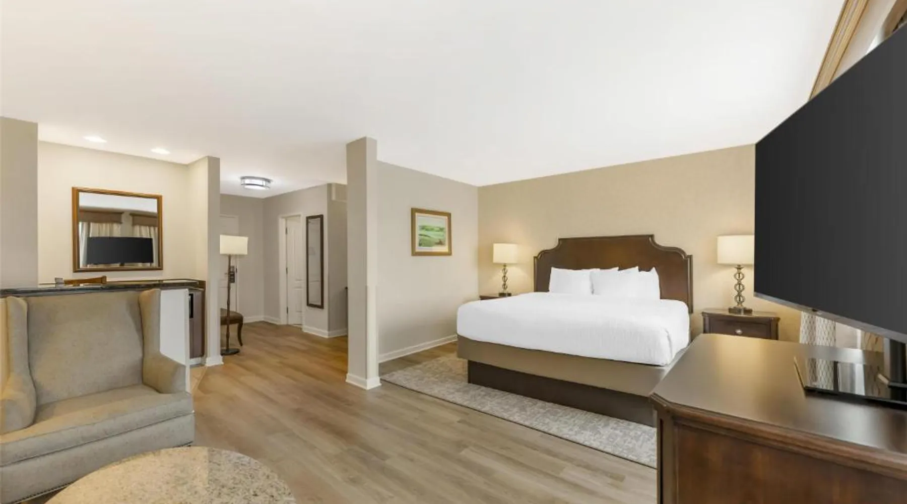This hotel in Penn Yan, New York offers spacious rooms with free Wi-Fi and a cable TV. It features an indoor pool and is just 1.6 miles from Lakeside Country Club. Offering simple décor, all rooms at the Best Western PLUS Vineyard Inn and Suites include a microwave, refrigerator and coffee maker. A work desk is provided in every room. Guests can relax in the hotel’s jacuzzi or enjoy free access to the on-site fitness room. The business center offers a computer with free Wi-fi access. The Vineyard Inn Best Western PLUS offers a free breakfast buffet each morning with locally sourced items. Local winery tours are available through Keuka Lake Wine Trail, just 0.6 miles from the hotel. The historic Oliver House Museum is a 2-minute drive away. The quadruple room features a tea and coffee maker. The unit has 2 beds.