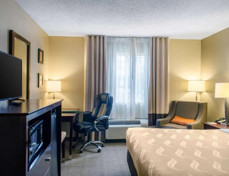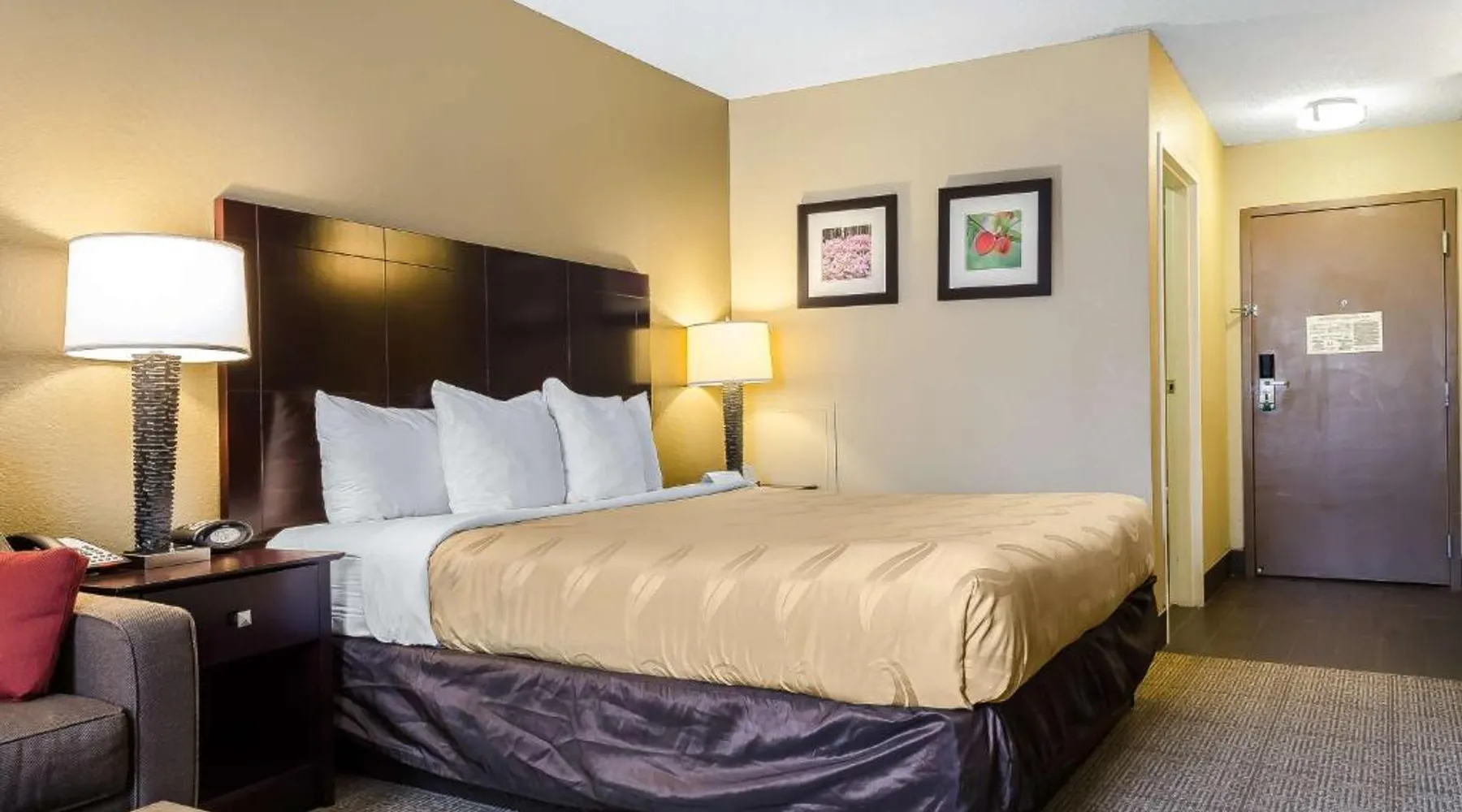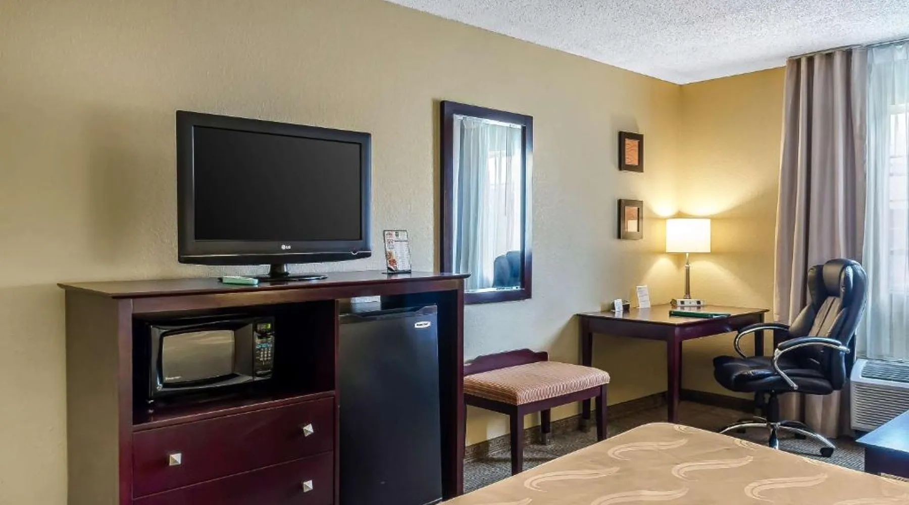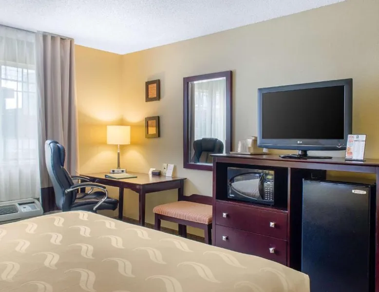 Comfortable Accommodations: Quality Inn Ruston in Ruston offers spacious rooms with air-conditioning, work desks, and free WiFi. Each room includes a tea and coffee maker, hairdryer, refrigerator, microwave, and TV. Facilities and Services: Guests can enjoy a fitness center, lounge, and coffee shop. Additional amenities include a fitness room, business area, picnic area, and barbecue facilities. Free on-site private parking is available. Convenient Location: Located 35 mi from Monroe Regional Airport, the inn is near Joe Aillet Stadium and Thomas Assembly Center, both 3.7 mi away. Ike Hamilton Expo Center is 27 mi from the property. Guest Favorites: Guests appreciate the convenient location, attentive staff, and spacious rooms. The spacious double room offers air conditioning, a tea and coffee maker, heating, as well as a TV with cable channels. The unit has 1 bed.
