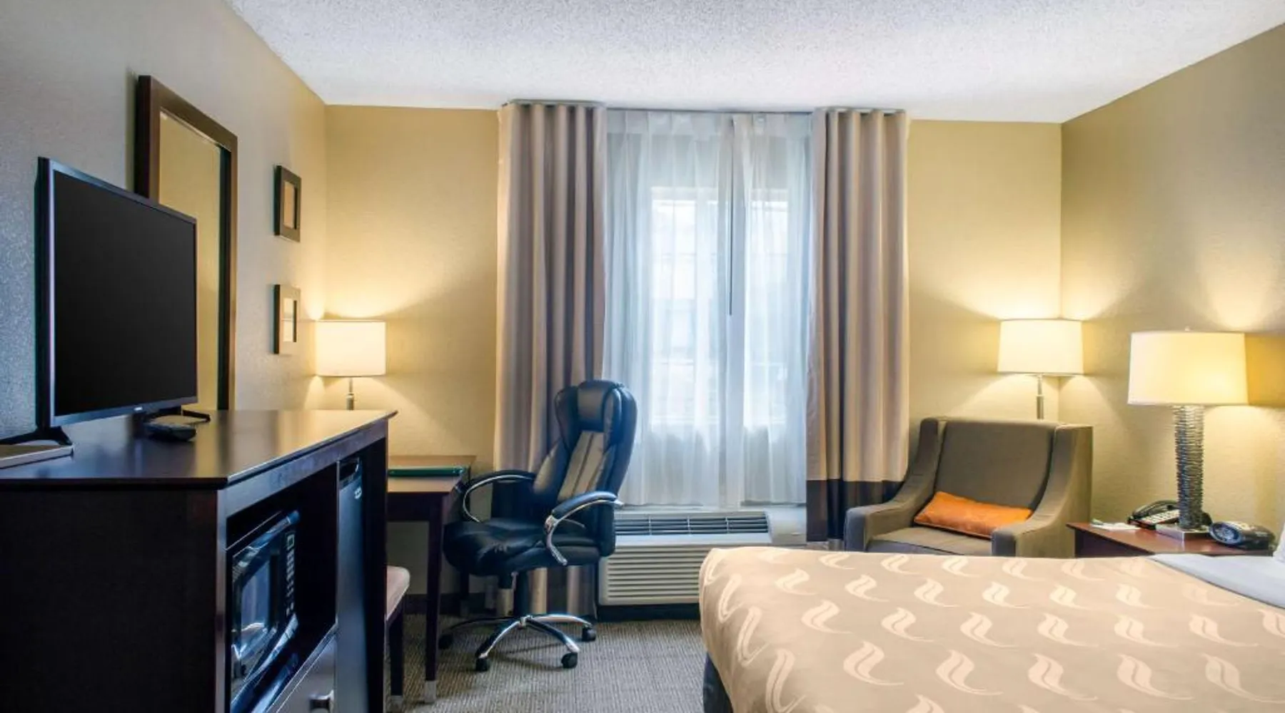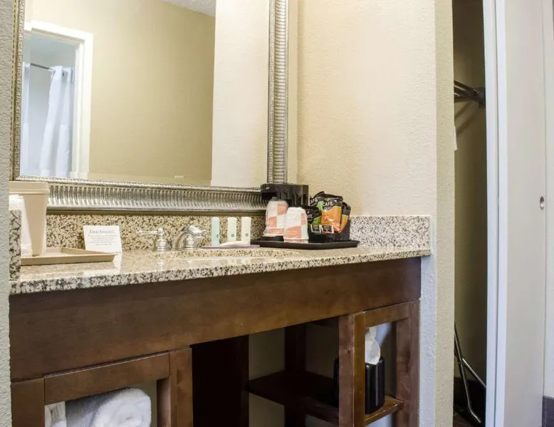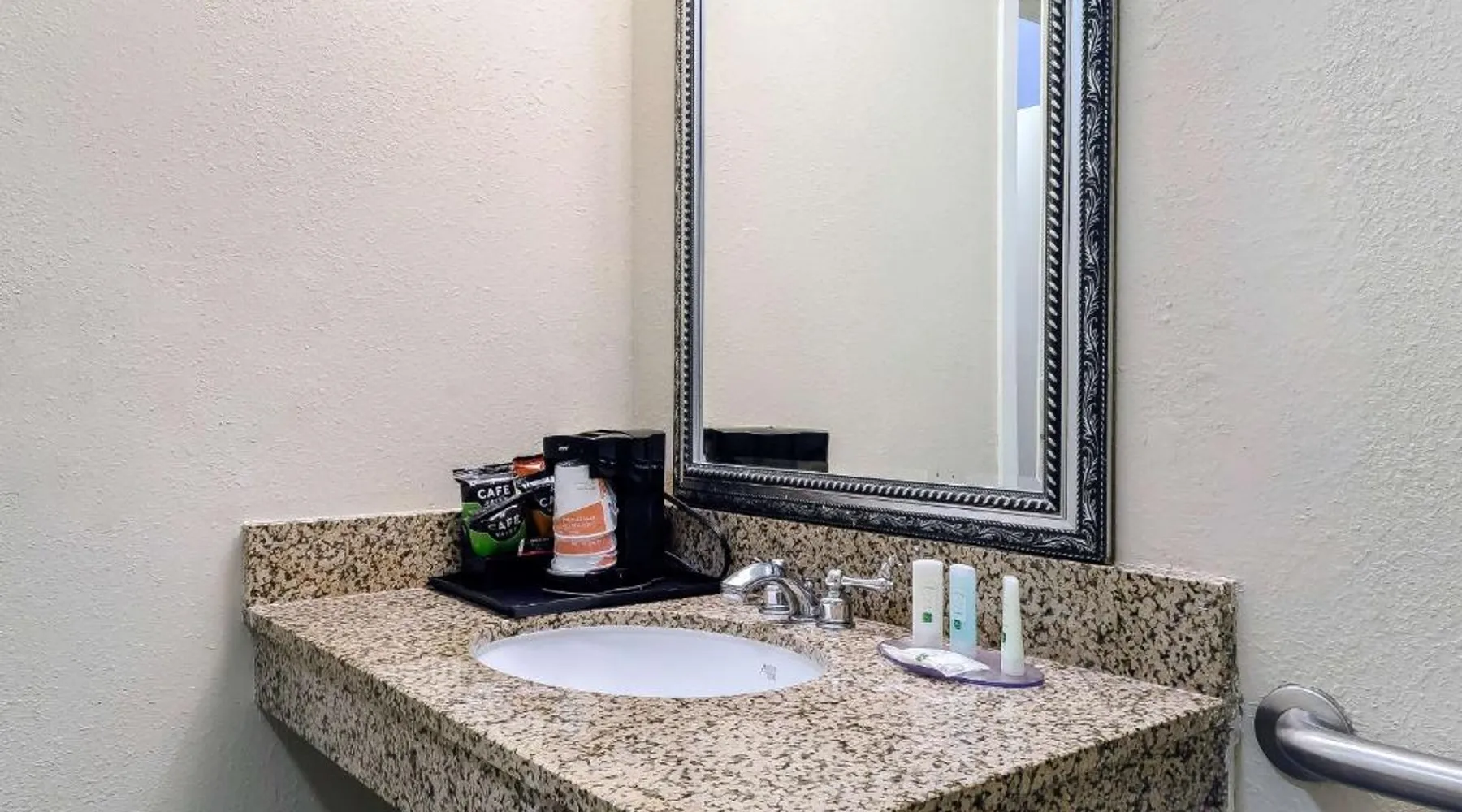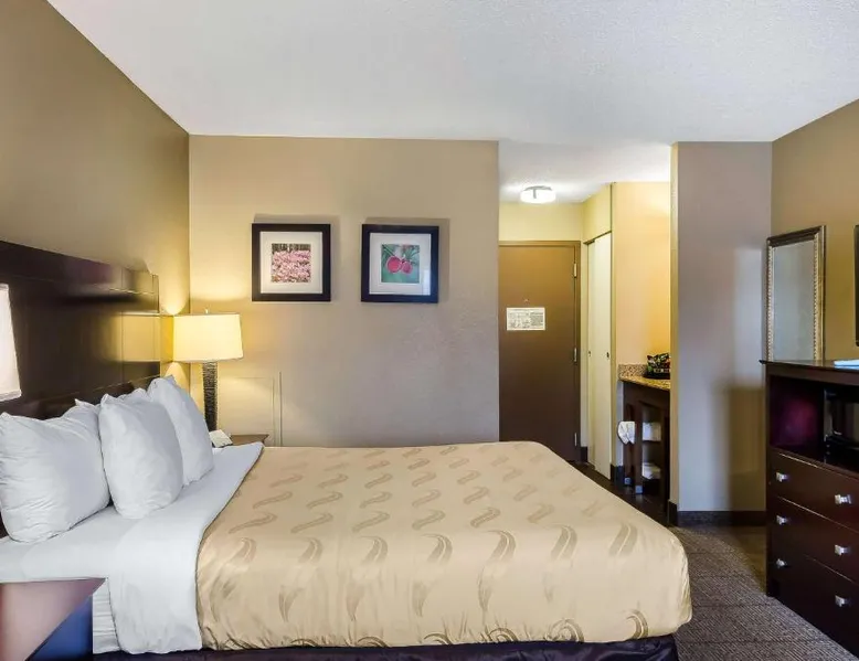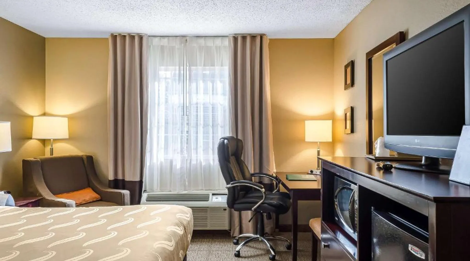 Comfortable Accommodations: Quality Inn Ruston in Ruston offers spacious rooms with air-conditioning, work desks, and free WiFi. Each room includes a tea and coffee maker, hairdryer, refrigerator, microwave, and TV. Facilities and Services: Guests can enjoy a fitness center, lounge, and coffee shop. Additional amenities include a fitness room, business area, picnic area, and barbecue facilities. Free on-site private parking is available. Convenient Location: Located 35 mi from Monroe Regional Airport, the inn is near Joe Aillet Stadium and Thomas Assembly Center, both 3.7 mi away. Ike Hamilton Expo Center is 27 mi from the property. Guest Favorites: Guests appreciate the convenient location, attentive staff, and spacious rooms. The spacious double room offers air conditioning, a tea and coffee maker, heating, as well as a TV with cable channels. The unit has 1 bed.