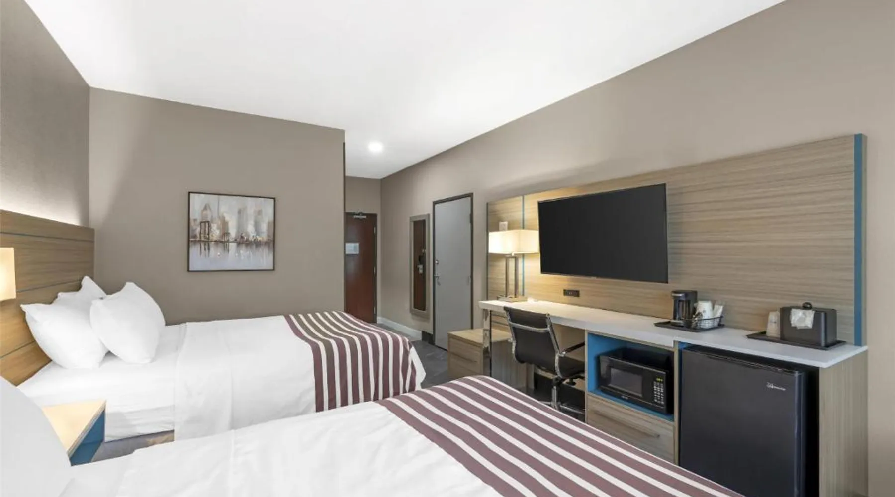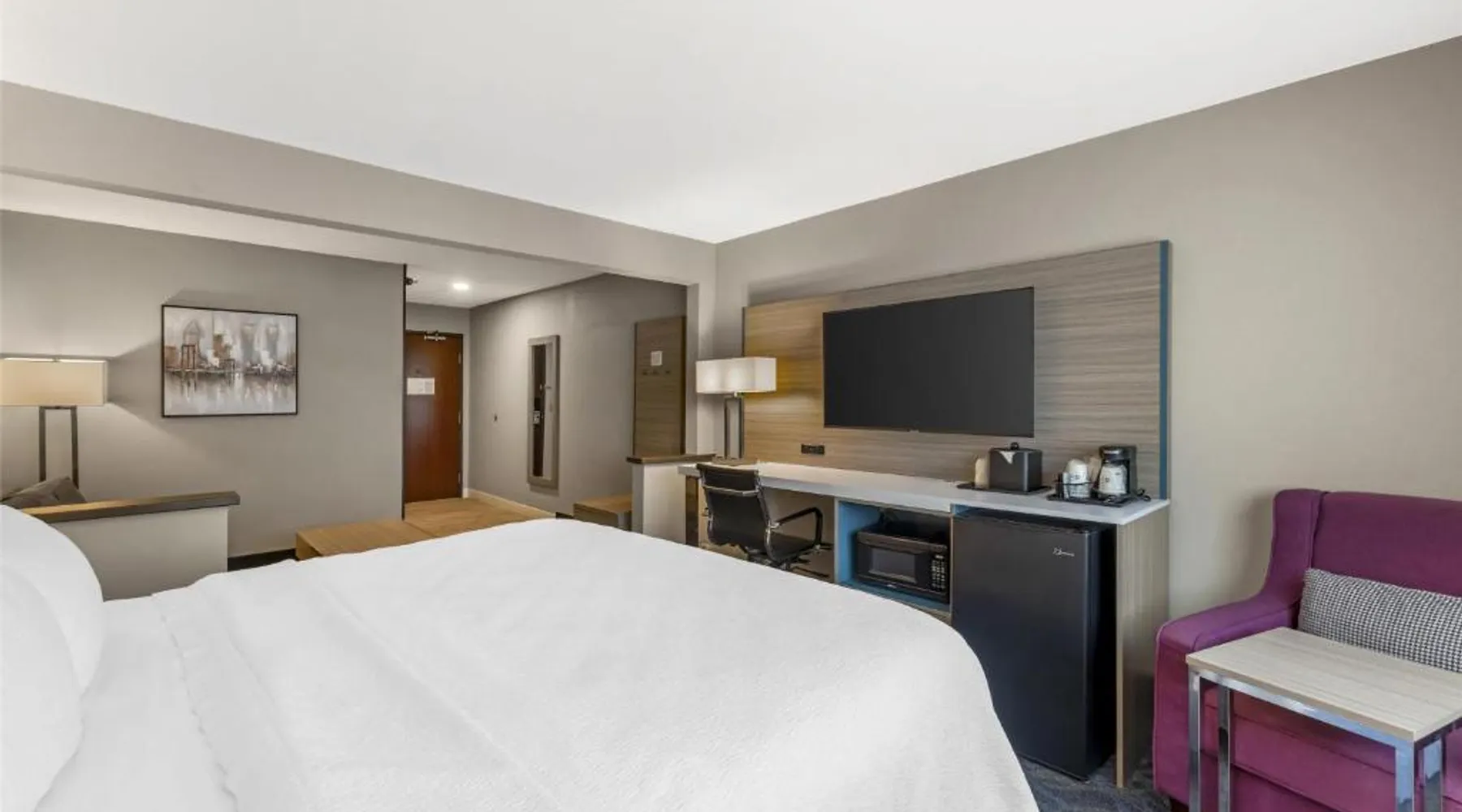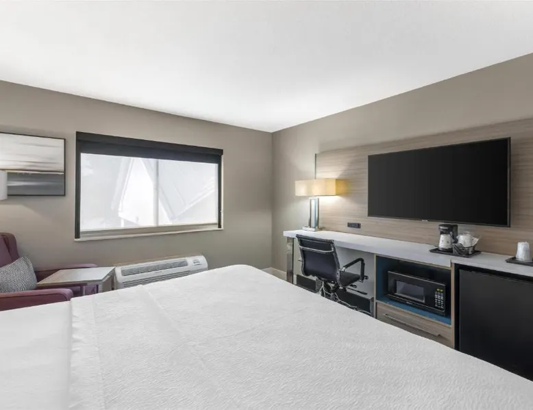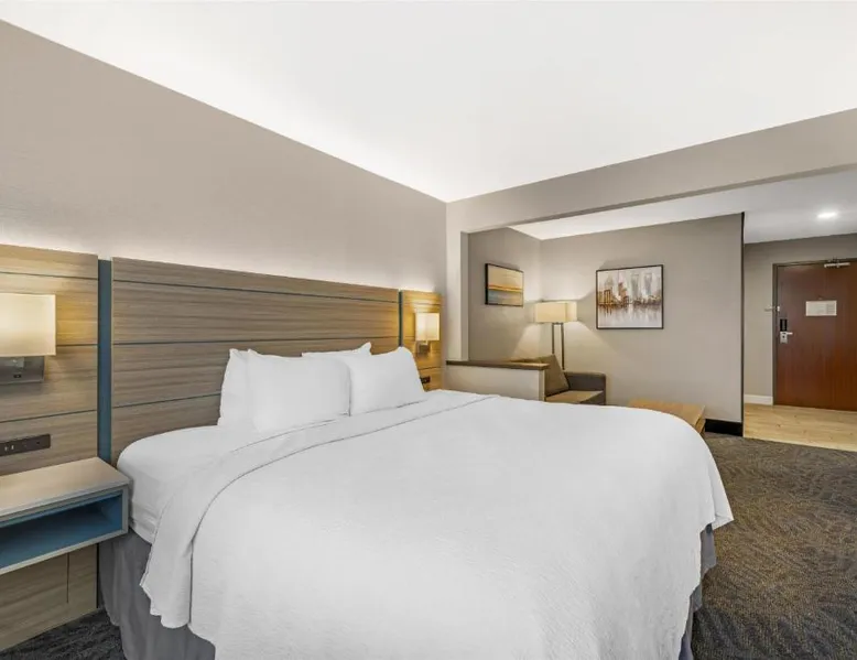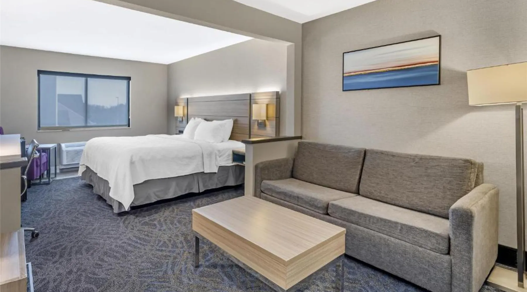Comfortable Accommodations: Rooms feature air-conditioning, private bathrooms, baths, tea and coffee makers, hairdryers, and free toiletries. Additional amenities include work desks, refrigerators, microwaves, and TVs. Leisure Facilities: Guests can enjoy a saltwater swimming pool, indoor pool, fitness center, and free WiFi. The hotel offers a lounge, elevator, 24-hour front desk, minimarket, daily housekeeping, child-friendly buffet, and electric vehicle charging station. Dining Options: A buffet breakfast is served with warm dishes, juice, fresh pastries, cheese, and fruits. Location and Attractions: Located in Independence, the hotel is 33 mi from Kansas City International Airport. Nearby attractions include Kauffman Stadium (8.1 mi), National World War I Museum (14 mi), and Union Station Kansas City (14 mi). Guests appreciate room cleanliness, staff support, and convenient location. This suite has a microwave a small refrigerator.