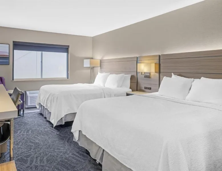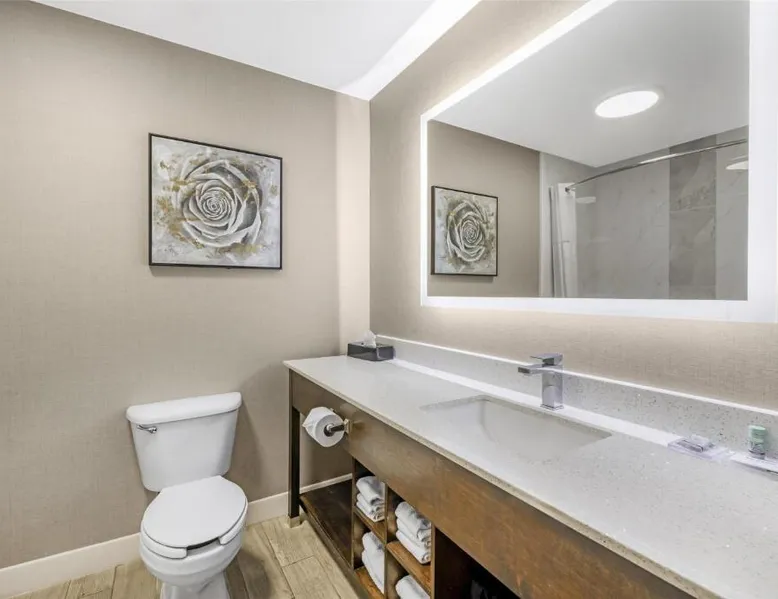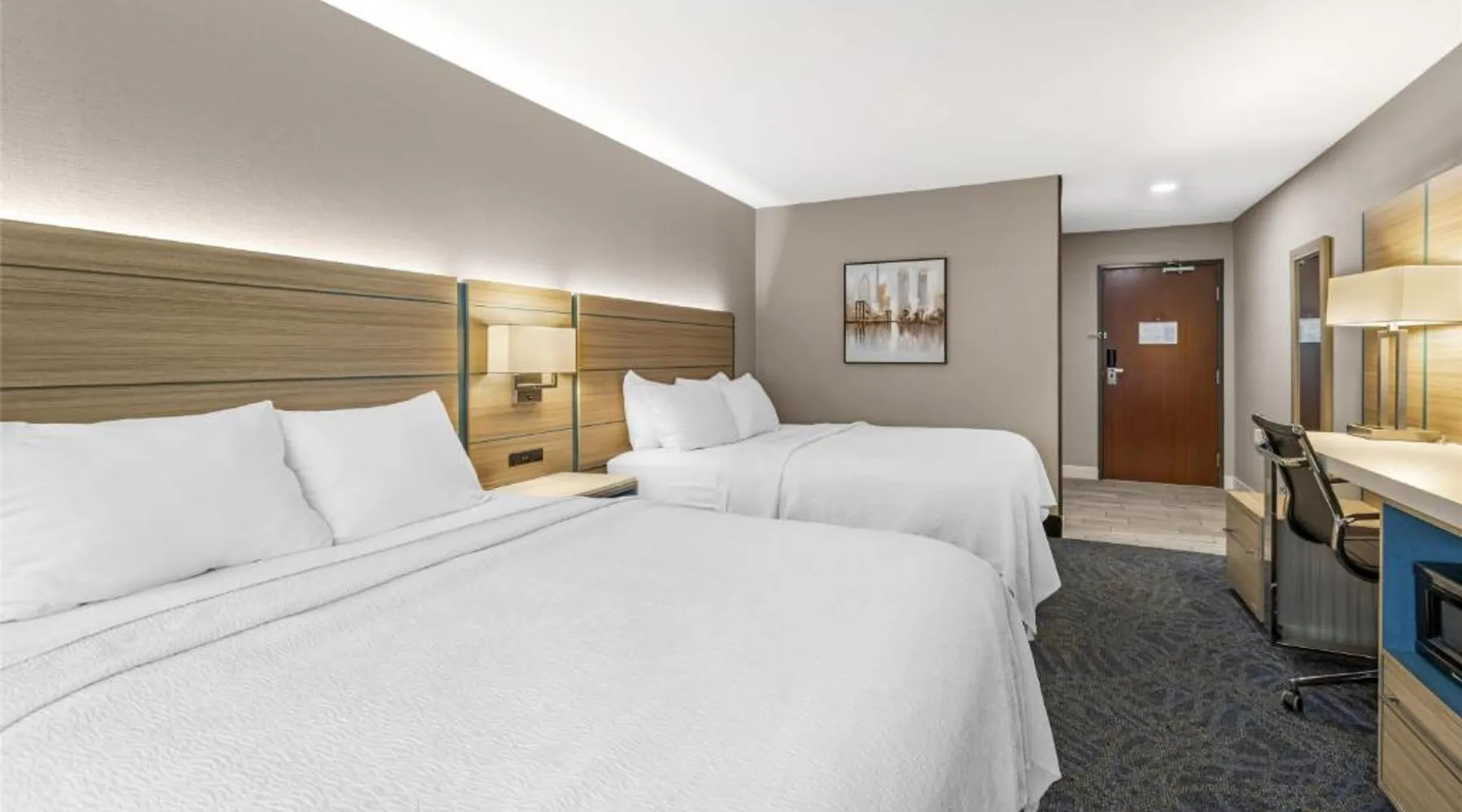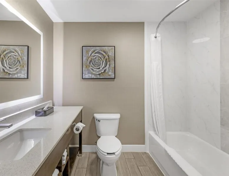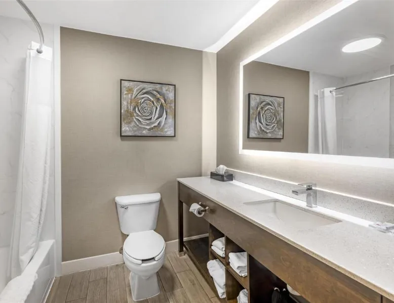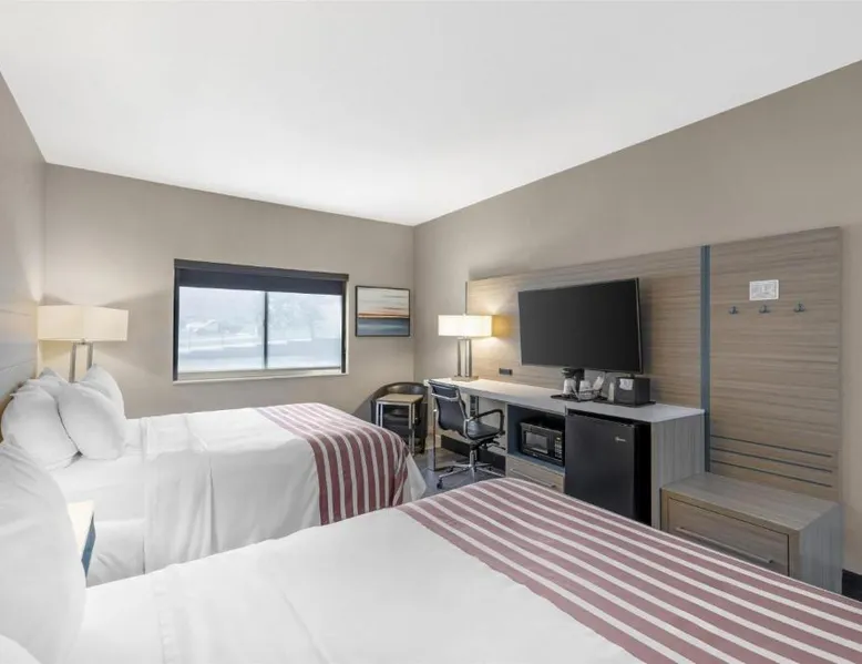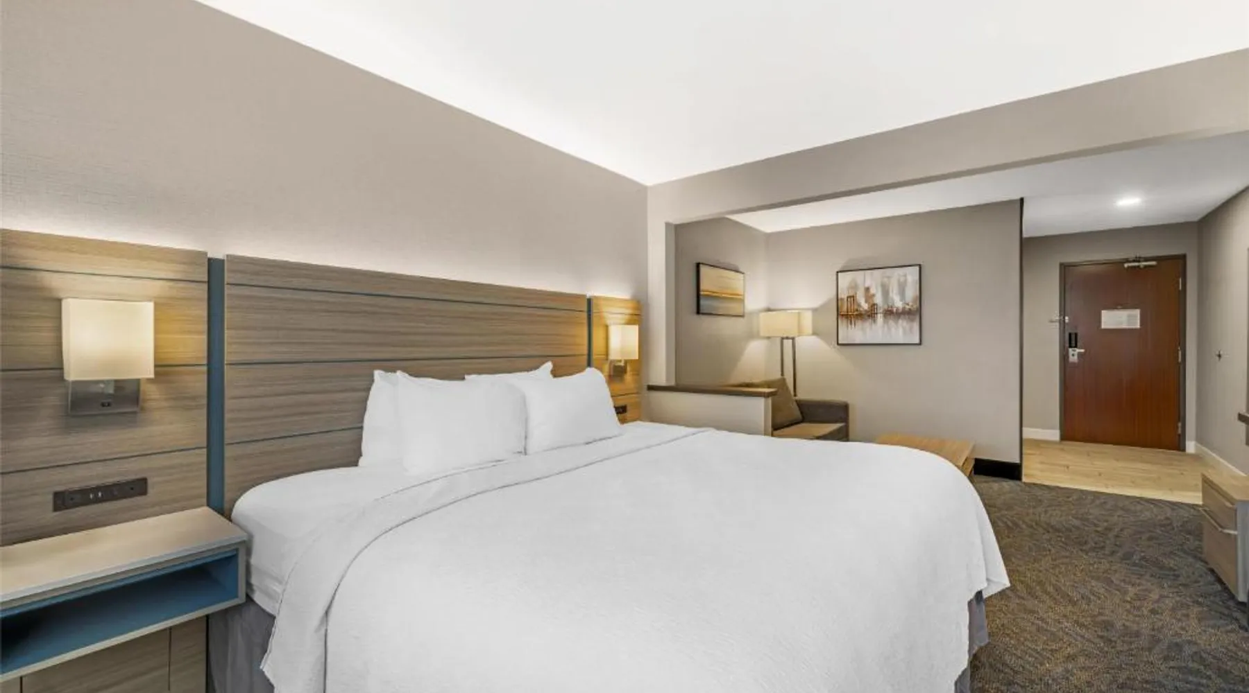 Comfortable Accommodations: Rooms feature air-conditioning, private bathrooms, baths, tea and coffee makers, hairdryers, and free toiletries. Additional amenities include work desks, refrigerators, microwaves, and TVs. Leisure Facilities: Guests can enjoy a saltwater swimming pool, indoor pool, fitness center, and free WiFi. The hotel offers a lounge, elevator, 24-hour front desk, minimarket, daily housekeeping, child-friendly buffet, and electric vehicle charging station. Dining Options: A buffet breakfast is served with warm dishes, juice, fresh pastries, cheese, and fruits. Location and Attractions: Located in Independence, the hotel is 33 mi from Kansas City International Airport. Nearby attractions include Kauffman Stadium (8.1 mi), National World War I Museum (14 mi), and Union Station Kansas City (14 mi). Guests appreciate room cleanliness, staff support, and convenient location. This suite has a microwave a small refrigerator.