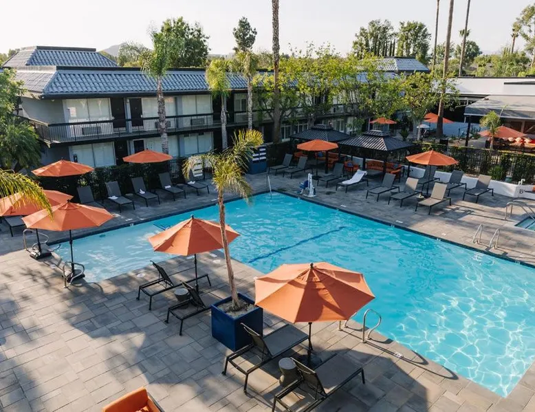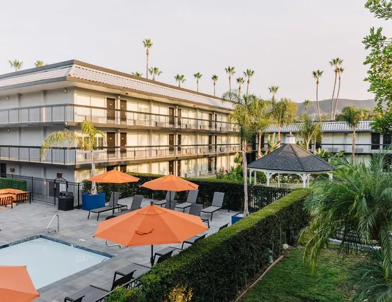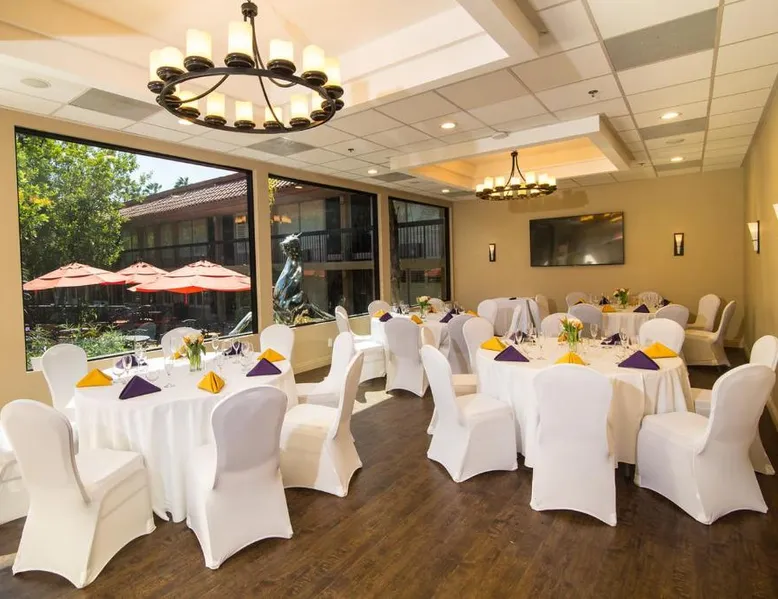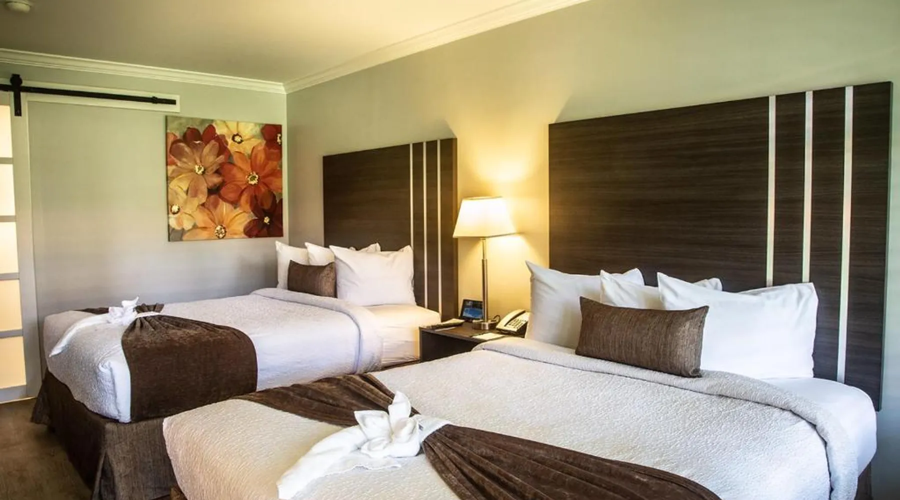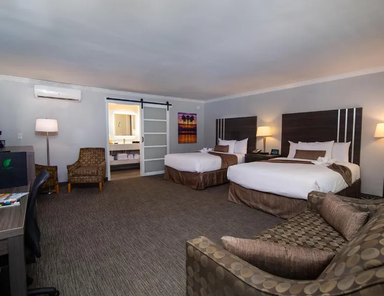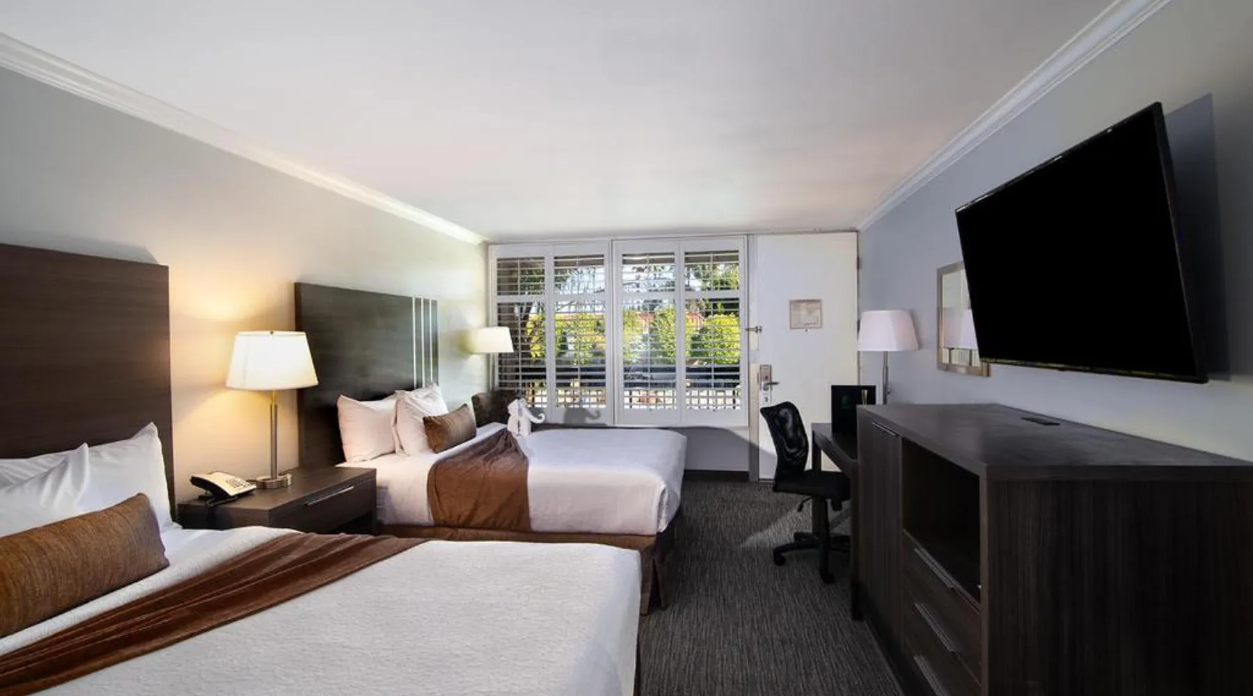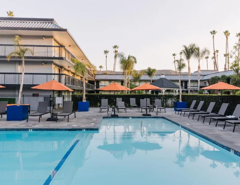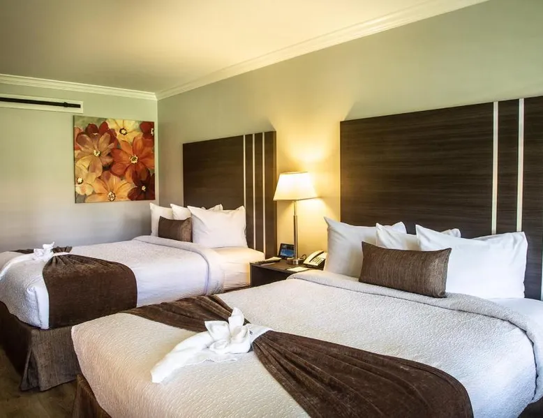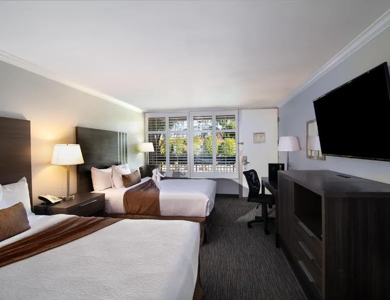 Located just 1.5 miles away from Amgen, this Thousand Oaks hotel includes free Wi-Fi. A hot continental breakfast buffet. A 42-inch HD cable flat-screen TV is featured at Palm Garden Hotel. A microwave, small refrigerator and coffee-making facilities are provided for convenience. Upscale, subtle-couloured linens and neutral décor furnish each guest room. A fitness center and business center are located on site. Enjoy an elevate dining experience at our on-site restaurant, Selvin’s Restaurant + Lounge. The Stagecoach Inn Museum is less than 1 mile away. The Ronald Reagan Library is 11 miles away. Bob Hope International Airport is 45 minutes’ drive away. Free Wi-Fi, a 55-inch HD cable flat-screen TV, microwave, small refrigerator and coffee-making facilities are included in this room.