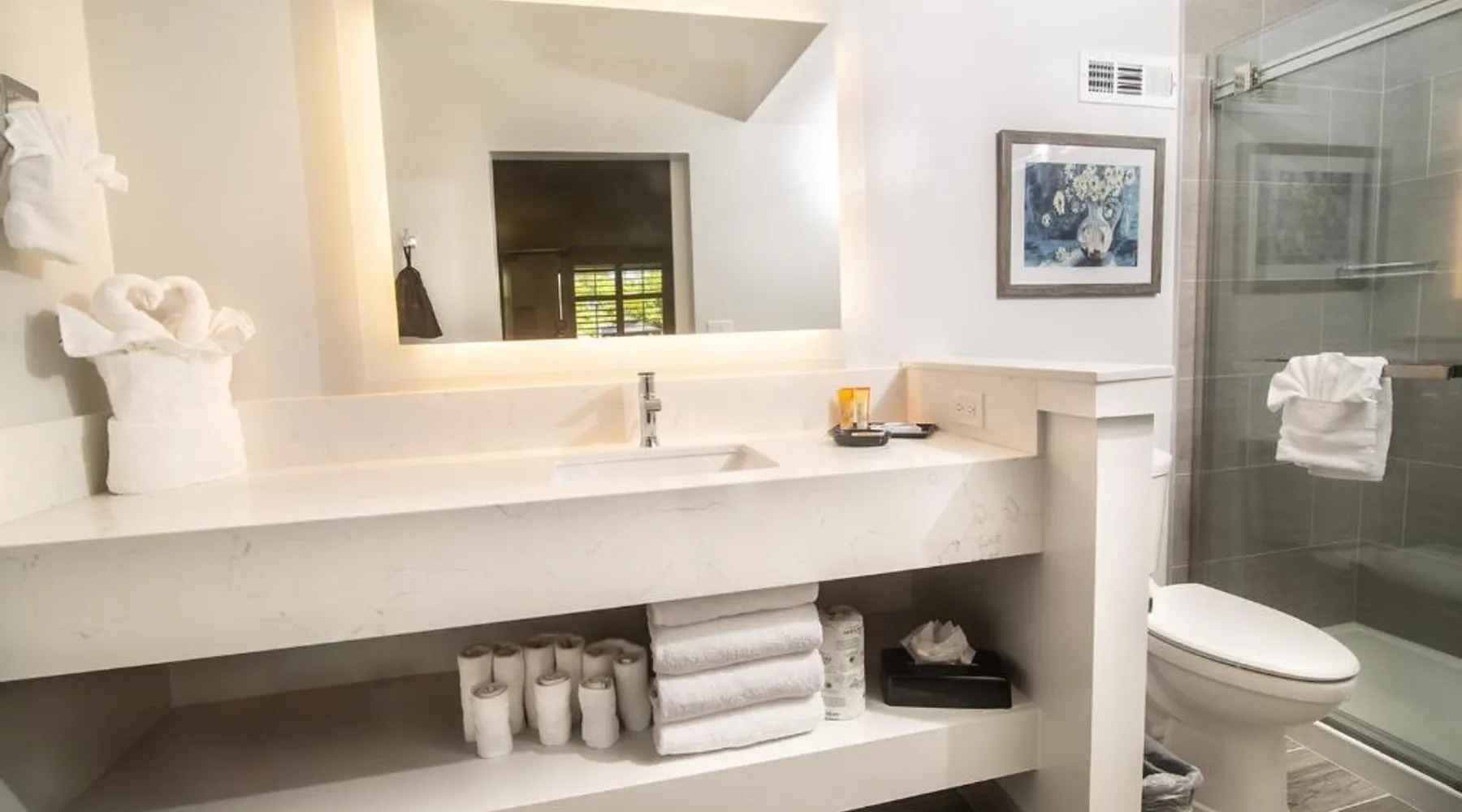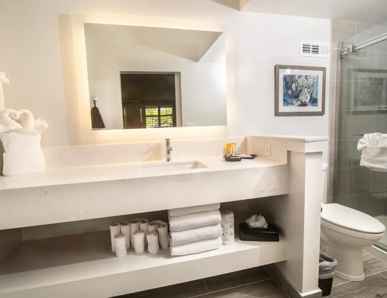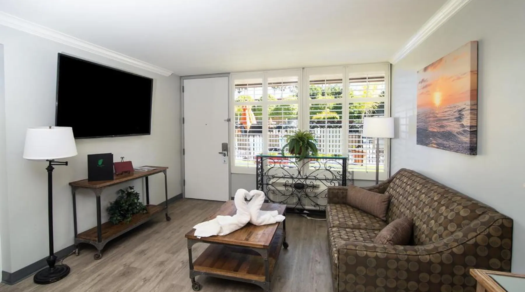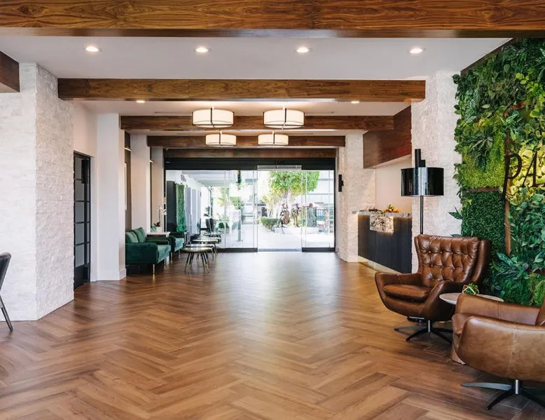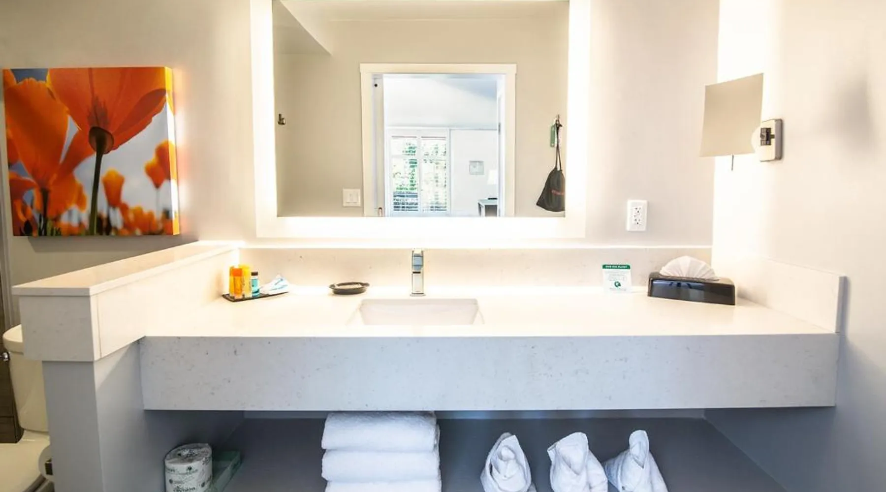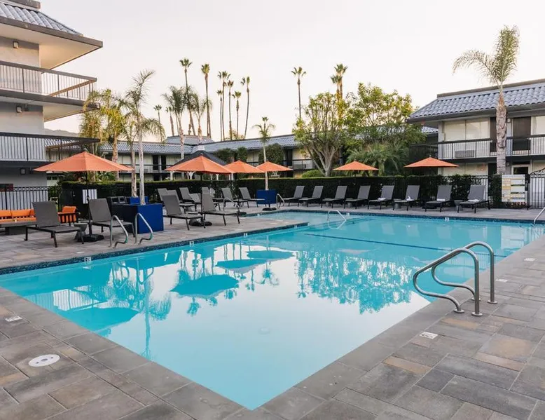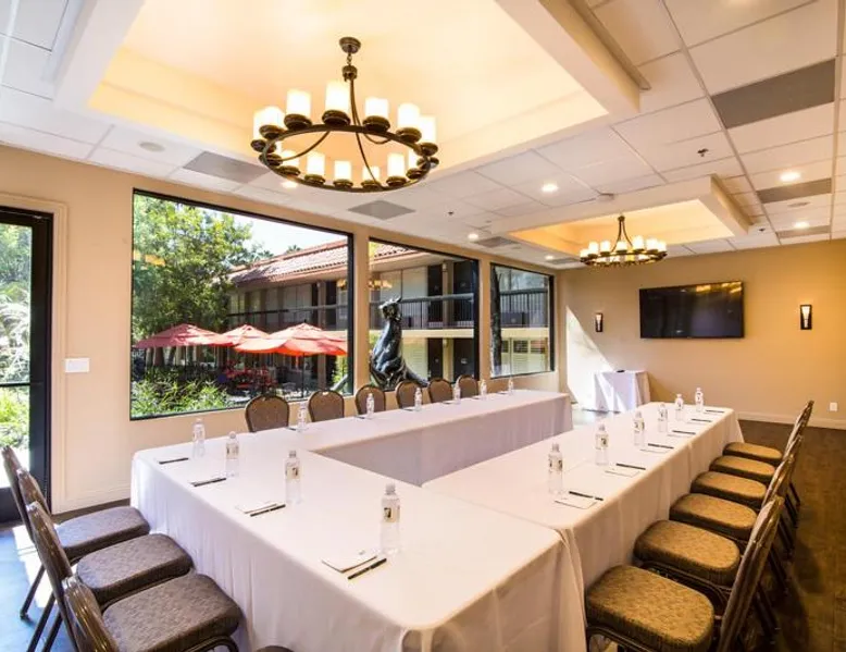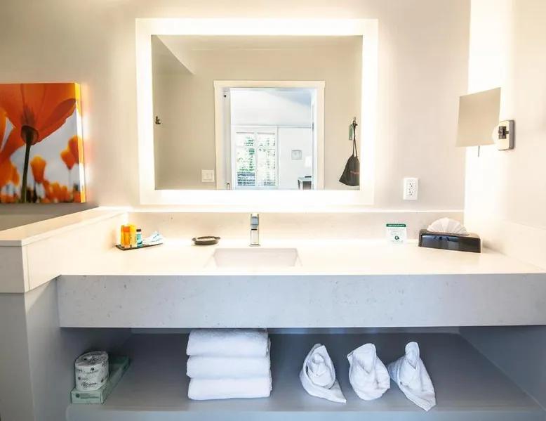 Located just 1.5 miles away from Amgen, this Thousand Oaks hotel includes free Wi-Fi. A hot continental breakfast buffet. A 42-inch HD cable flat-screen TV is featured at Palm Garden Hotel. A microwave, small refrigerator and coffee-making facilities are provided for convenience. Upscale, subtle-couloured linens and neutral décor furnish each guest room. A fitness center and business center are located on site. Enjoy an elevate dining experience at our on-site restaurant, Selvin’s Restaurant + Lounge. The Stagecoach Inn Museum is less than 1 mile away. The Ronald Reagan Library is 11 miles away. Bob Hope International Airport is 45 minutes’ drive away. Free Wi-Fi, a 55-inch HD cable flat-screen TV, microwave, small refrigerator and coffee-making facilities are included in this room.