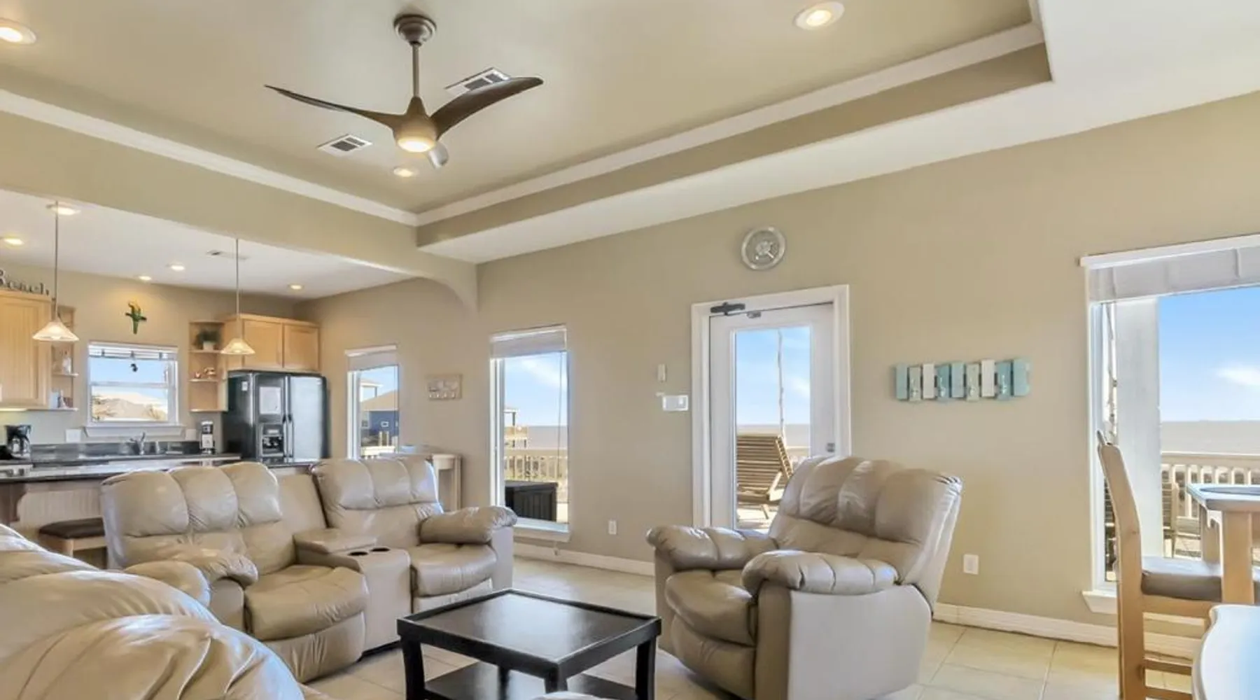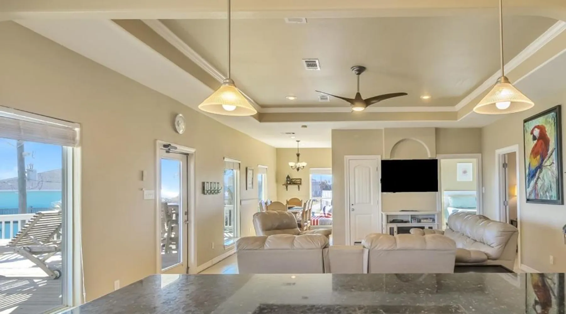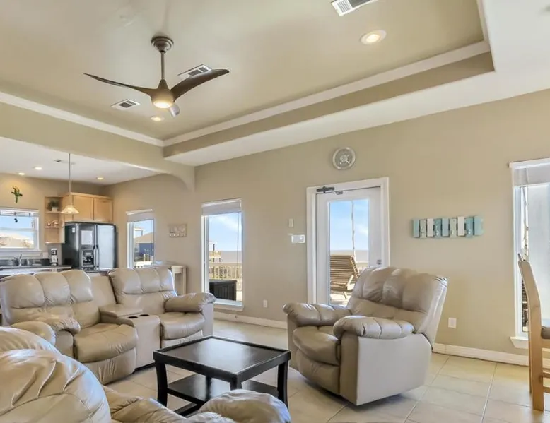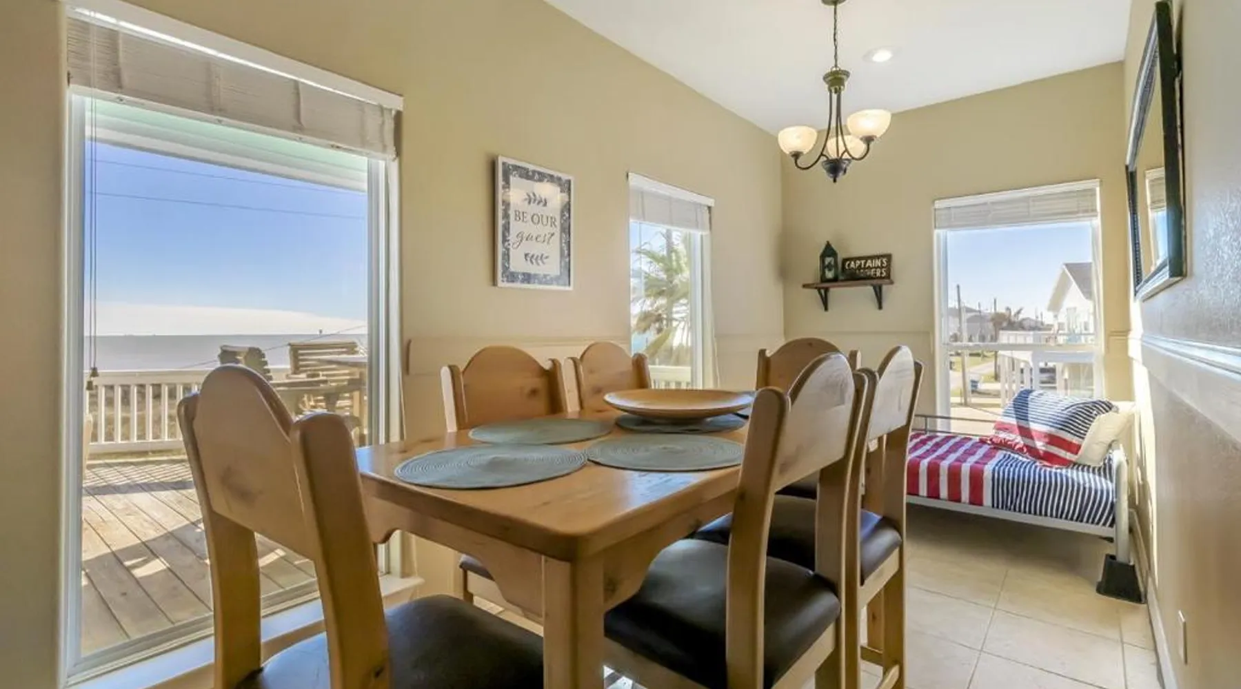 Beachfront Location: Parrot Head Home in Crystal Beach offers direct beachfront access and stunning sea views. Guests can relax on the sandy shores and enjoy the salty air. Modern Amenities: The holiday home features free WiFi, air-conditioning, and a fitness room. Additional amenities include a washing machine, fully equipped kitchen, barbecue, and streaming services. Comfortable Accommodations: With three bedrooms and two bathrooms, the property provides ample space for a comfortable stay. The kitchen is equipped with a refrigerator, microwave, dishwasher, toaster, and tea and coffee maker. Convenient Location: Located 57 mi from William P. Hobby Airport, Parrot Head Home is a few steps from Crystal Beach. Nearby attractions include Galveston Island and the Strand. The air-conditioned holiday home features 3 bedrooms, 2 bathrooms with a shower and a kitchen. The well-fitted kitchen has a refrigerator, a dishwasher, kitchenware and a microwave. The holiday home offers a TV with streaming services, a washing machine, a tea and coffee maker, a barbecue as well as sea views. The unit offers 5 beds.