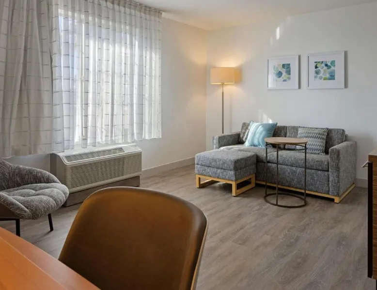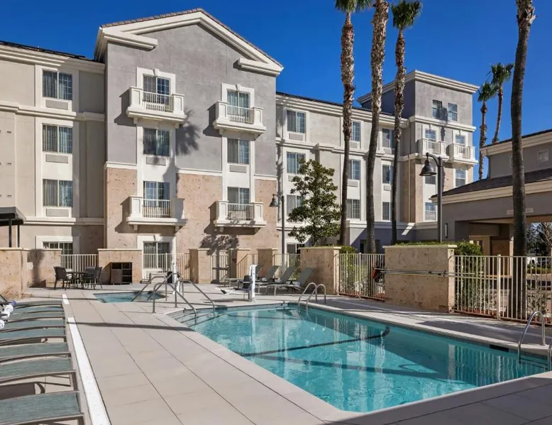 Comfortable Accommodations: TownePlace Suites by Marriott Ontario Airport in Rancho Cucamonga offers spacious rooms with air-conditioning, kitchenettes, and private bathrooms. Each room includes a work desk, sofa bed, and free WiFi. Exceptional Facilities: Guests can enjoy a fitness center, year-round outdoor swimming pool, and free bicycles. Additional amenities include a hot tub, 24-hour front desk, minimarket, outdoor seating area, and barbecue facilities. Delicious Breakfast: A variety of breakfast options are available, including continental, American, buffet, and gluten-free. Breakfast includes warm dishes, fresh pastries, fruits, and juice. Convenient Location: Located 2.5 mi from LA/Ontario International Airport and 1.2 mi from Ontario Mills, the hotel is near attractions such as Auto Club Speedway (6.2 mi) and Azusa Pacific University (24 mi). Guests appreciate the room comfort. Featuring a kitchenette, this one-bedroom suite provides a flat-screen cable TV, free Wi-Fi, a seating area and free toiletries.