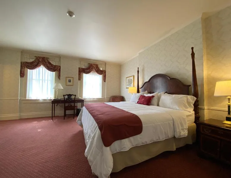 Historic Charm: General Morgan Inn in Greeneville offers a 4-star experience within a historic building. Guests enjoy a fitness center, sun terrace, and lush garden. Comfortable Accommodations: Rooms feature air-conditioning, private bathrooms, and modern amenities. Additional facilities include a restaurant, bar, and free WiFi. Dining Experience: The on-site restaurant serves American cuisine with vegetarian, gluten-free, and dairy-free options. Live music and a coffee shop enhance the dining experience. Local Attractions: Nearby attractions include Hands On! Discovery Center (27 mi) and George L. Carter Railroad Museum (30 mi). Guests can enjoy fishing and hiking activities. This air-conditioned single room is consisted of of a flat-screen TV with cable channels, a private bathroom as well as a terrace.